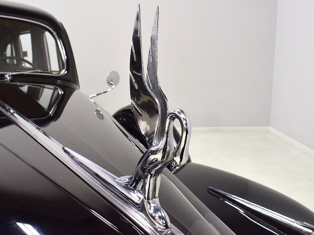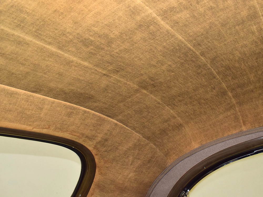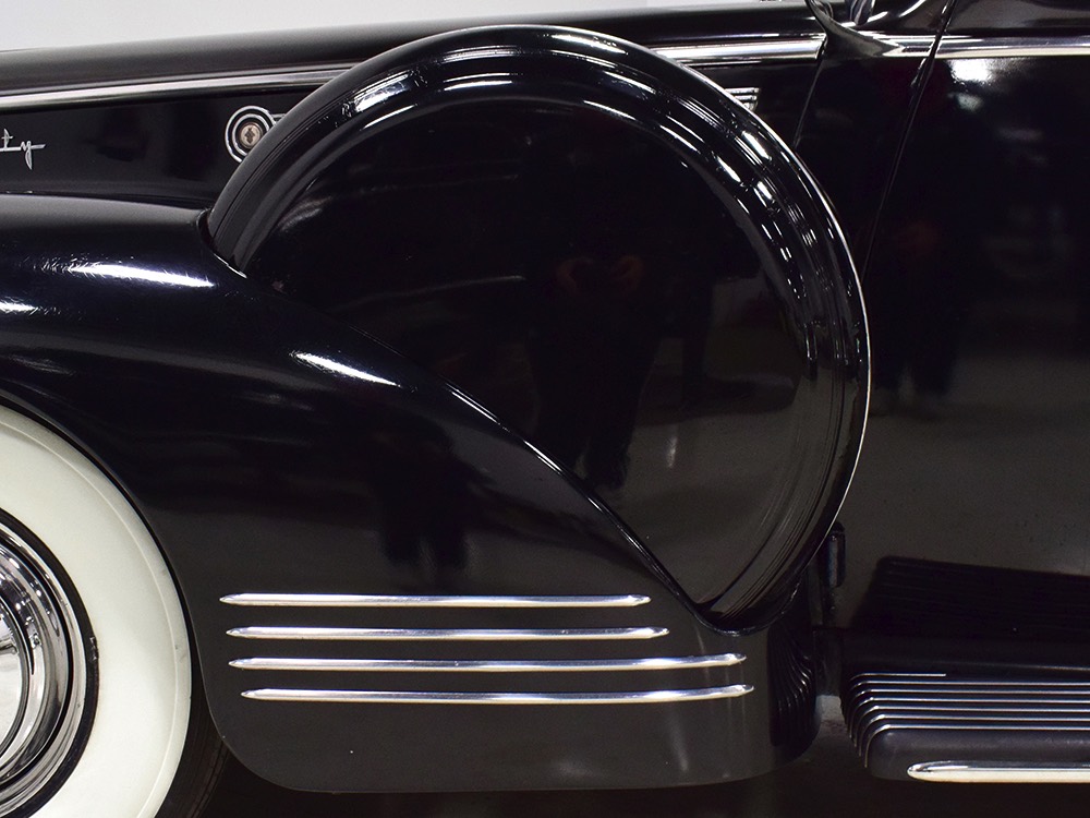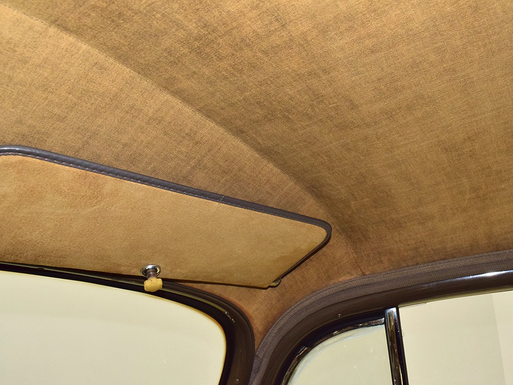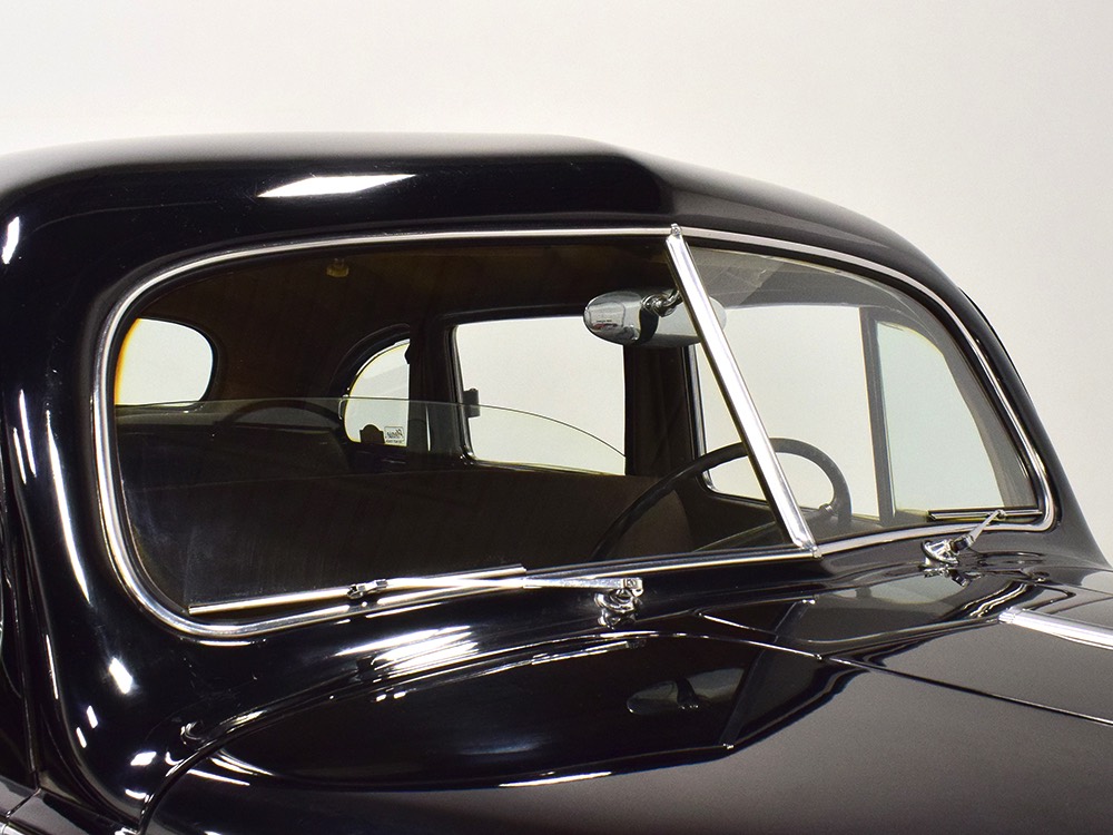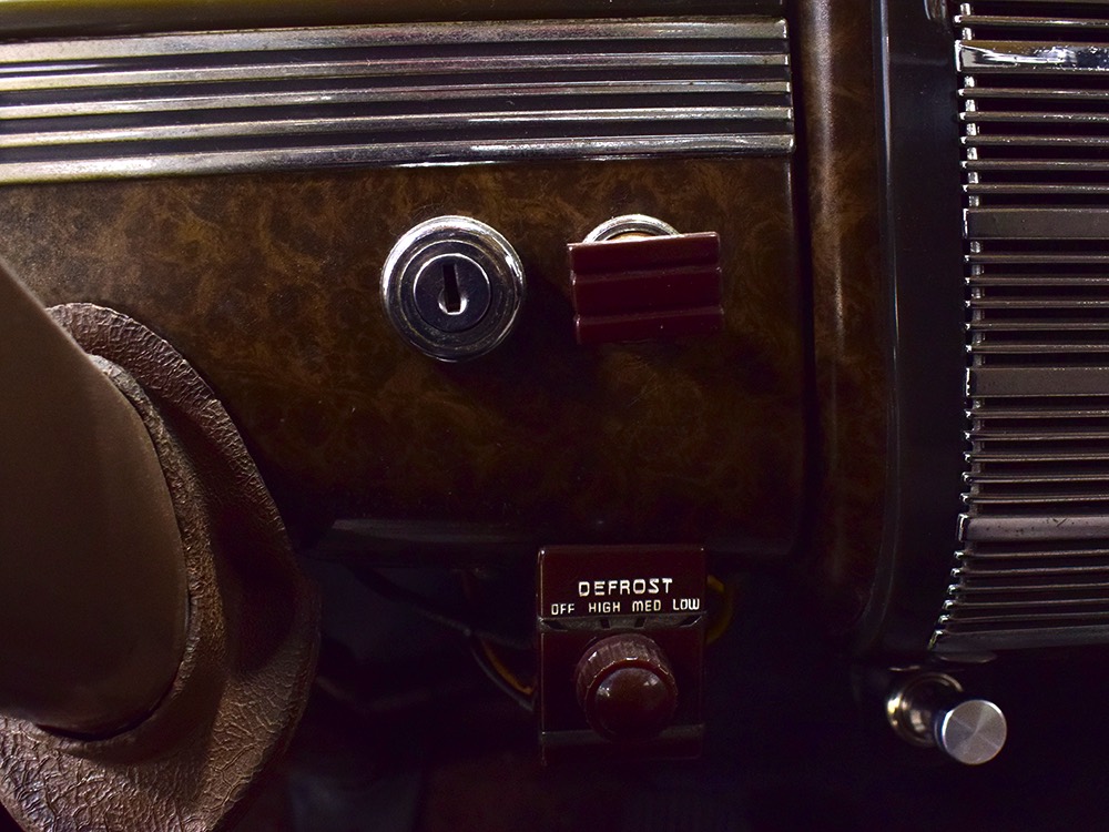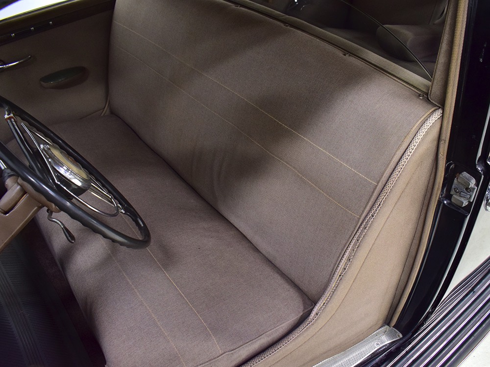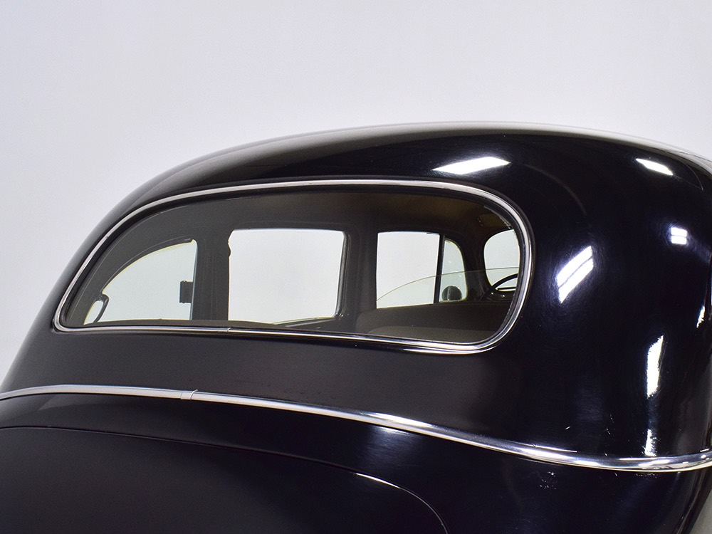 The glossy black lacquer paint shows why Packards were special, and even after nearly 80 years it shines up beautifully. Yes, of course there are signs of age, including some minor checking and some chips in the finish, most notably on the sidemount covers, but nothing that requires attention or detracts from the presentation. Original paint is special for a variety of reasons, not the least of which is the fact that there is no bad news hiding underneath—original paint means original steel and no botched bodywork for a new owner to manage. The quality of the finish is testament to the car’s care, which was surely impeccable while in funeral home service, and thereafter it was treated as a special car, used only on weekends during nice weather. This car has been loved and it shows. It looks a bit nicer in photos than it does in person, simply because the camera can’t capture the minor crazing and micro-blisters, but even in person is presents beautifully. Again, people who understand survivors will find it lovely while those who insist on shiny perfection will wonder about the cost of a paint job. It is my personal and professional opinion that painting this car would be a crime.