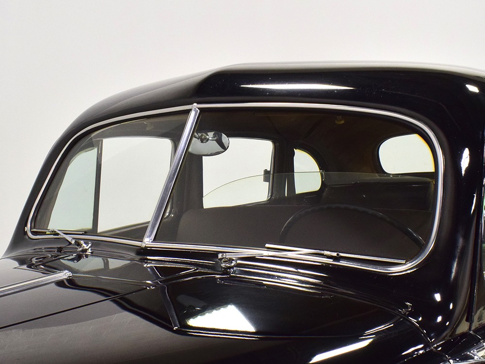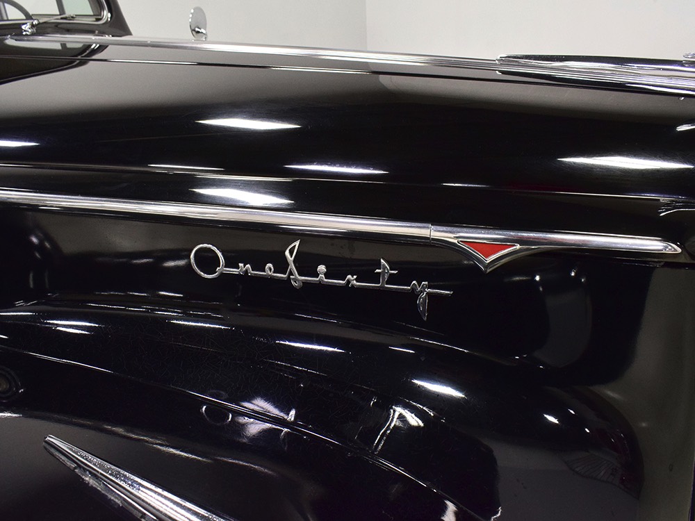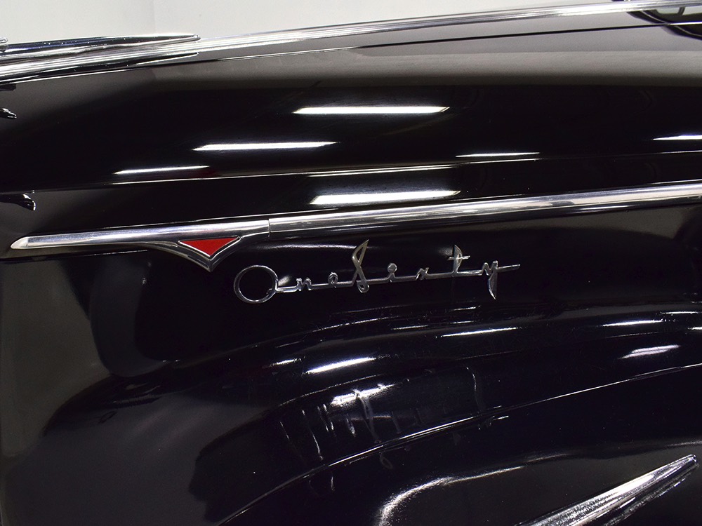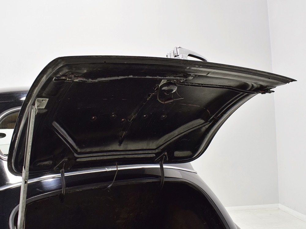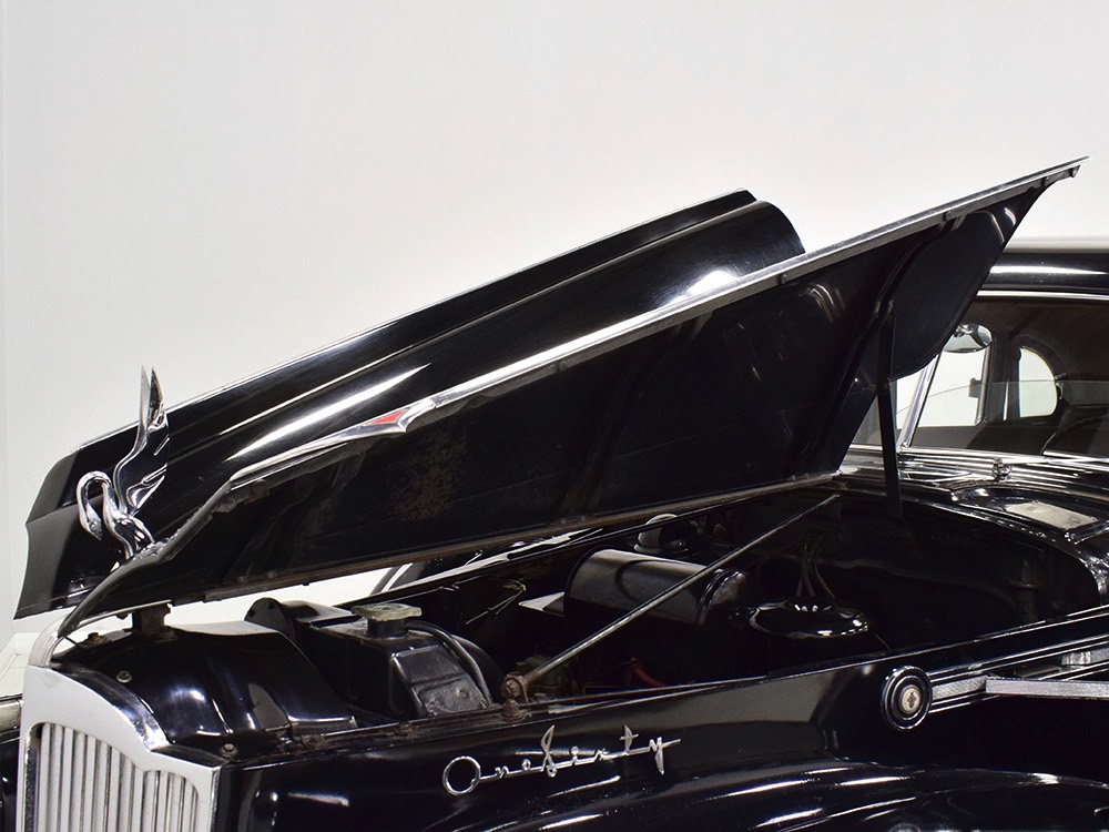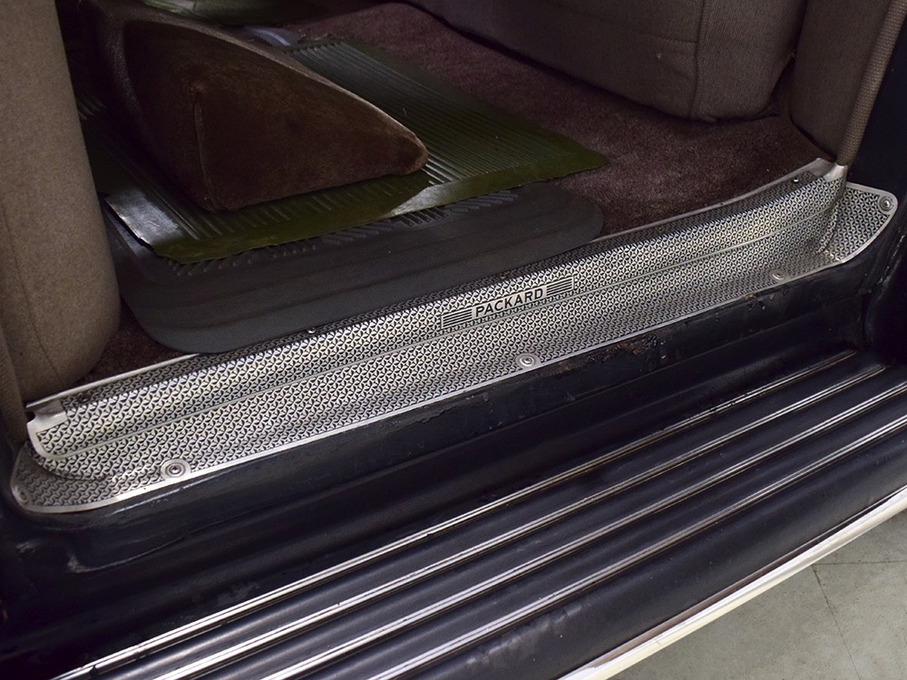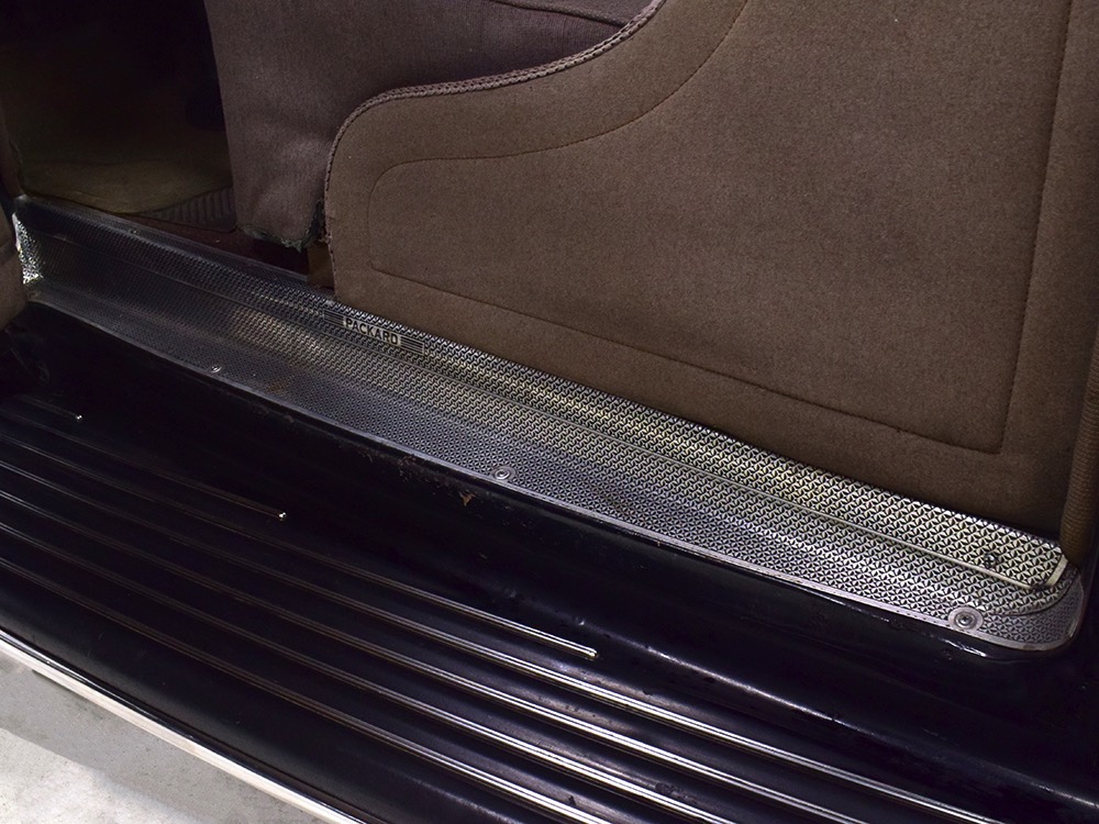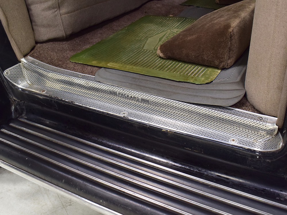 It’s worth mentioning that the front and rear bumpers were re-chromed in the ‘80s and a friend familiar with the car says that the “One Sixty” script emblems on either side of the hood were installed at that time (he knows this because his father supplied the emblems). It’s likely that the funeral home ordered the car without emblems, but they are correctly installed today. The remaining chrome and stainless trim is in excellent original condition, including the tall Packard grille which features fully operational thermostatically-controlled shutters. There is very, very minor pitting on some of the cast details such as the hood ornament, vent window frames, and fender lights, but again, nothing that will require restoration or refinishing.