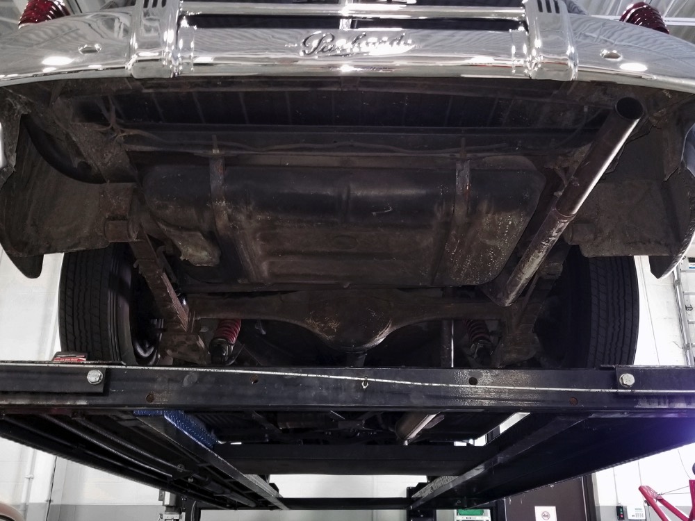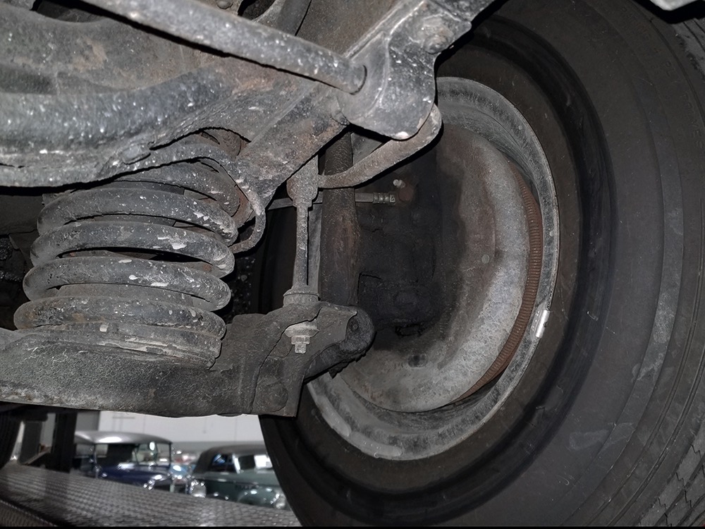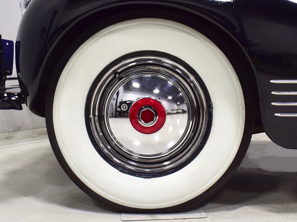 The chassis is likewise unrestored and I'm flat-out astounded by how beautifully this car rides, ignoring bumps and gliding over broken pavement without a wiggle or a rattle, just the way good original cars always do. The rear suspension enjoys tube shocks (a real innovation for 1942) with aftermarket helper springs, which appears to be the lone modification beyond the aforementioned electric fuel pump that was professionally installed. Braking is confident, steering is very low effort, even at low speeds, and the recent exhaust system has a nice 8-cylinder grumble that is by no means objectionable. Yes, there’s some evidence of seepage around the moving parts, but this car is not a chronic leaker and it has obviously been kept out of the truly foul weather as there’s zero rot, just some surface scale on the bare metal parts. If perfection is what you need, this isn’t your car, but there really is something special about the way a low-mileage original car goes down the road, especially a luxury car like this. This is a car for drivers! The handsome hubcaps are bereft of markings, which is correct for 1942, and it sits on correct 7.00-16 wide whitewall tires that are still in very good condition.