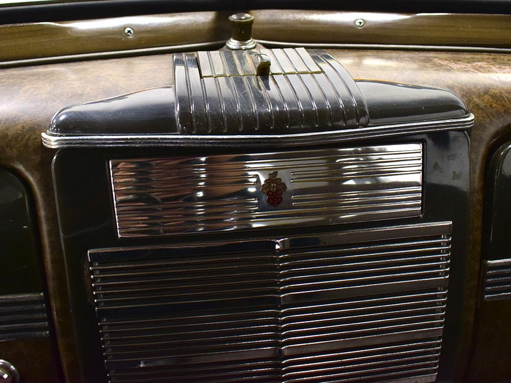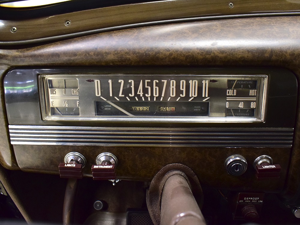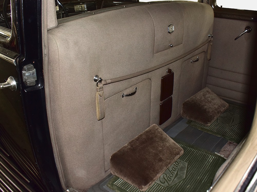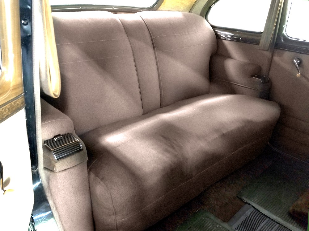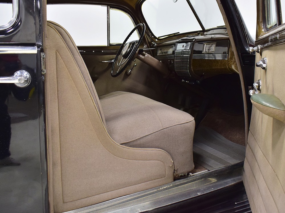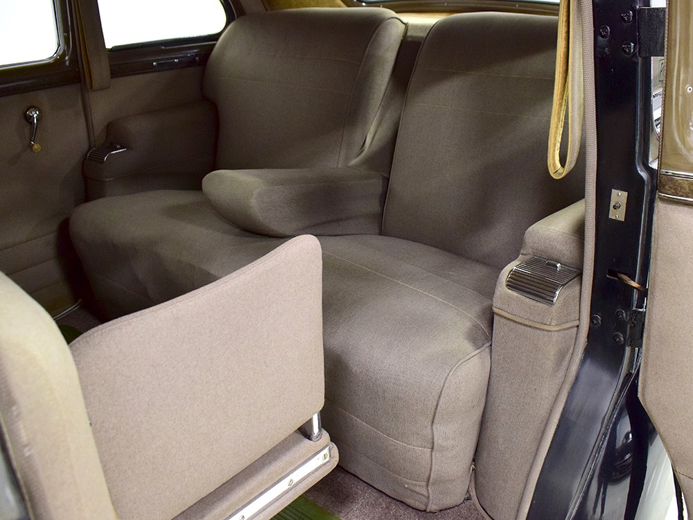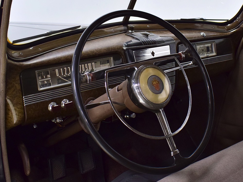 The car remains in almost entirely original condition and shows just over 38,000 original miles (it has an original mileage title and club records indicate that it had 33,000 miles in the early 1990s). It’s an unusual car for a variety of reasons: it’s a 1942 Packard, with some estimates putting production in the hundreds. Two, it is a Packard 160 on the 138-inch chassis, which was usually reserved for the 180. Three, it is equipped with a divider window like a formal sedan, but does not have the formal sedan’s padded roof. Four, there’s a single jump seat in back, sometimes referred to as an “assistant’s seat,” making it a six-passenger model. Finally, there are snaps on top of the front seat back, suggesting either a factory seat cover, or—more likely—a snap-on privacy curtain for the divider window, which makes sense given its funeral home origin.