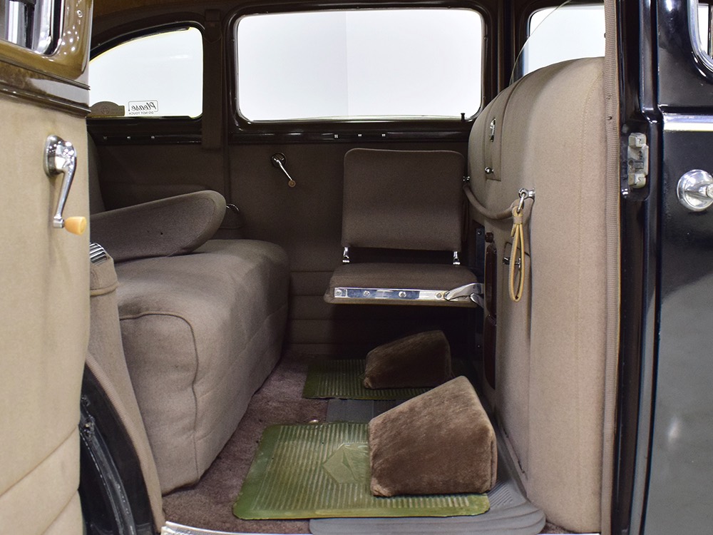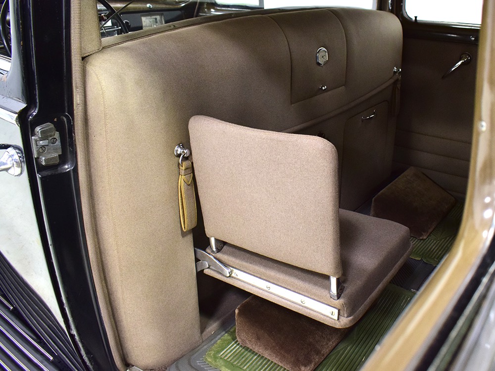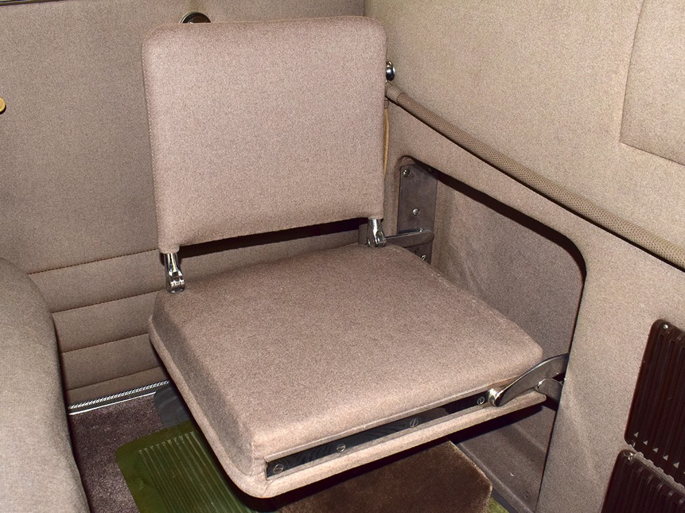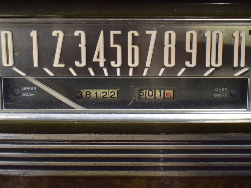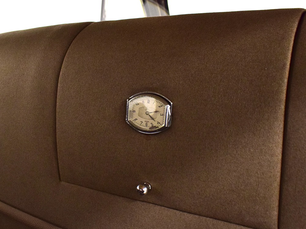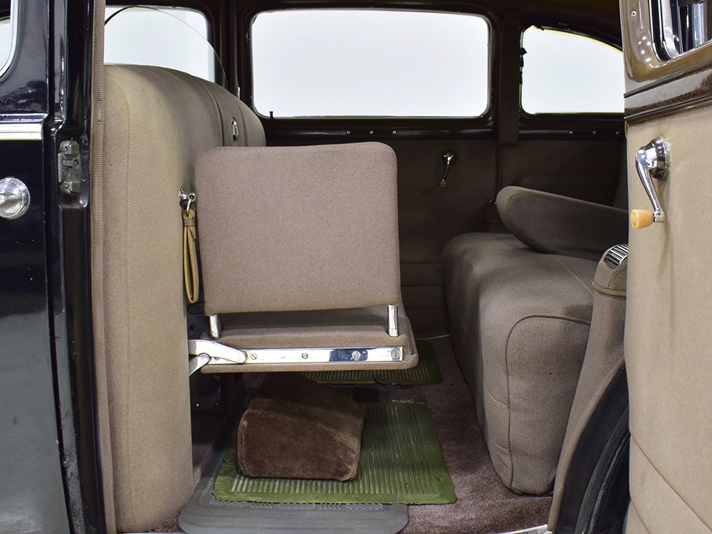 The car remains in almost entirely original condition and shows just over 38,000 original miles (it has an original mileage title and club records indicate that it had 33,000 miles in the early 1990s). It’s an unusual car for a variety of reasons: it’s a 1942 Packard, with some estimates putting production in the hundreds. Two, it is a Packard 160 on the 138-inch chassis, which was usually reserved for the 180. Three, it is equipped with a divider window like a formal sedan, but does not have the formal sedan’s padded roof. Four, there’s a single jump seat in back, sometimes referred to as an “assistant’s seat,” making it a six-passenger model. Finally, there are snaps on top of the front seat back, suggesting either a factory seat cover, or—more likely—a snap-on privacy curtain for the divider window, which makes sense given its funeral home origin.