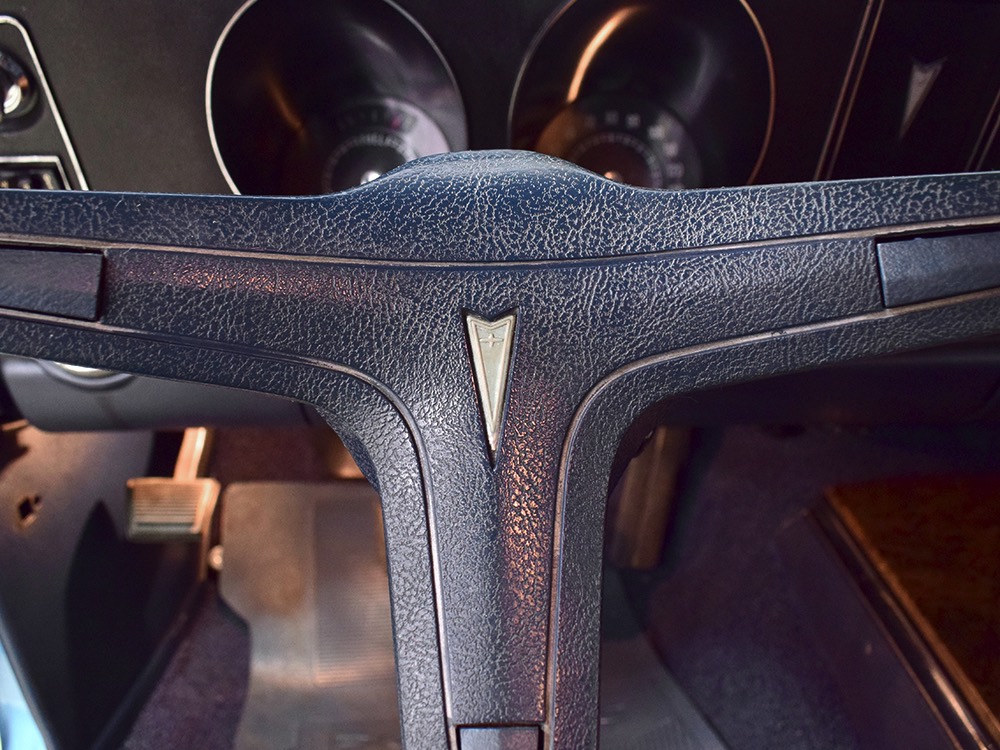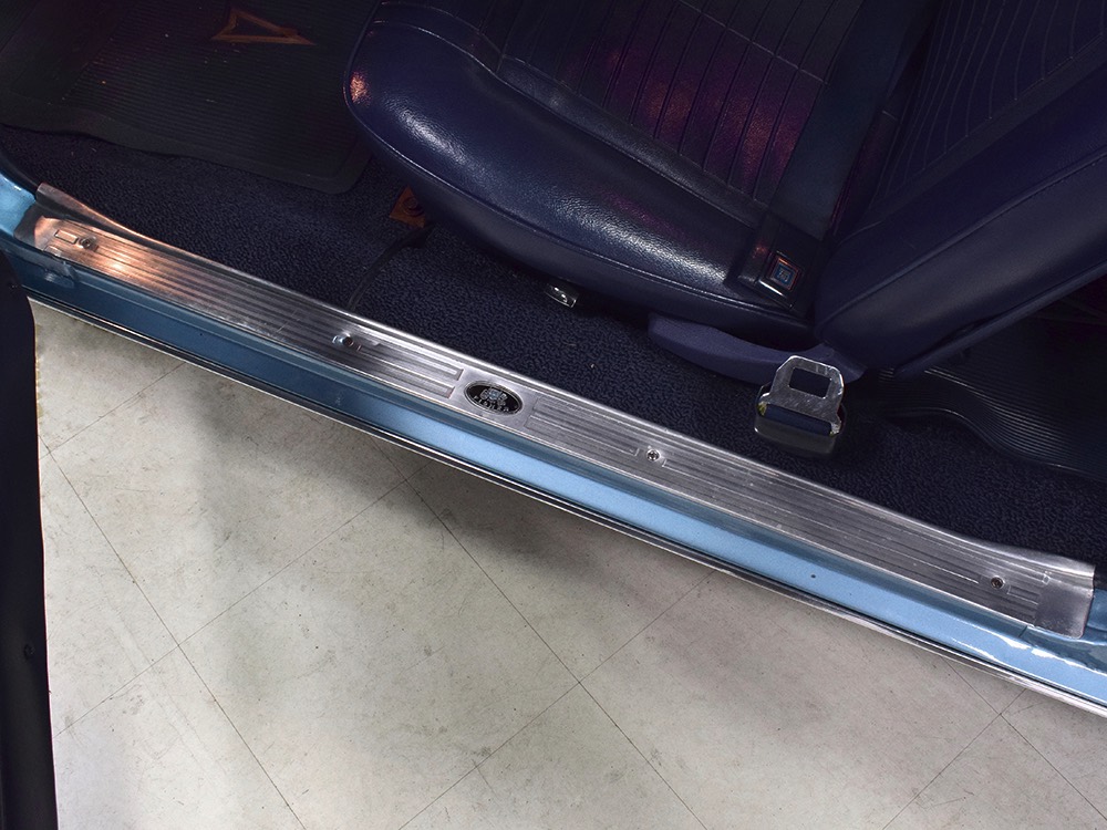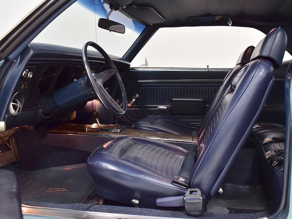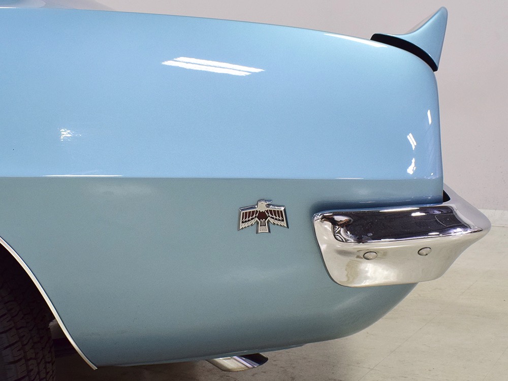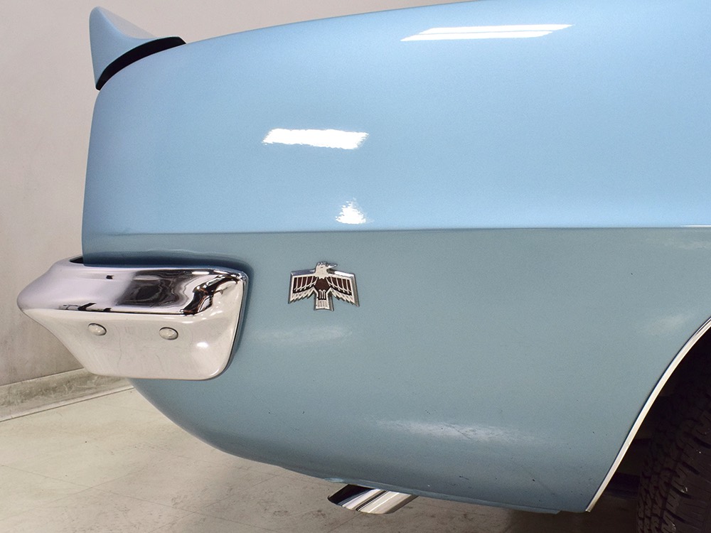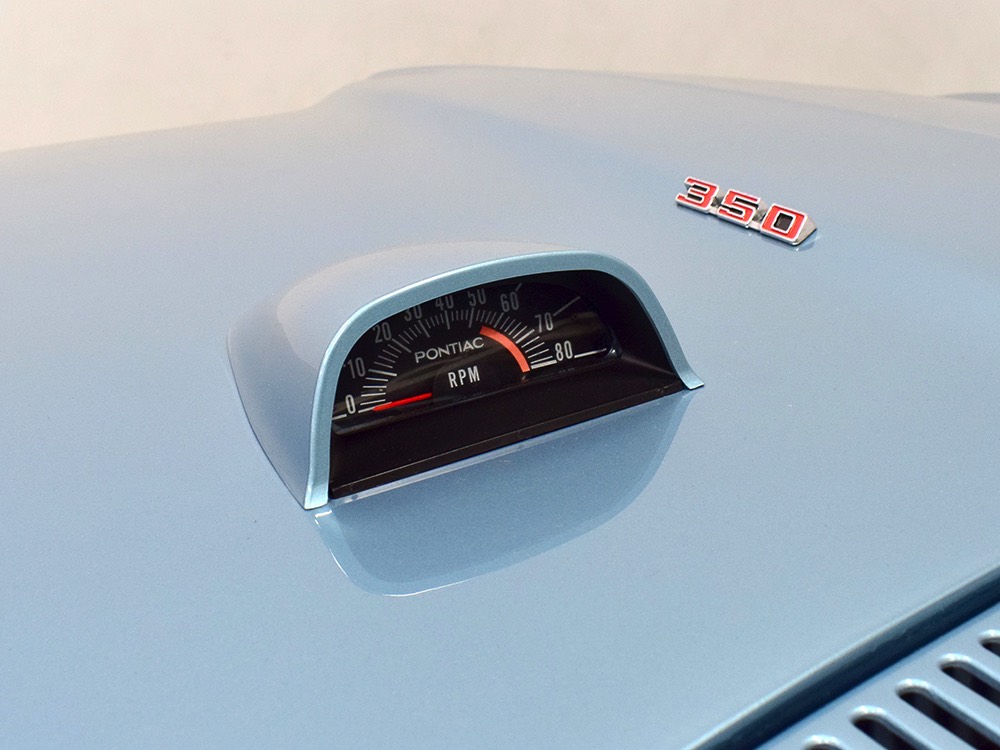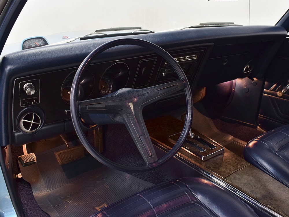 Having spent almost the entirety of its life in California and showing just over 37,000 original miles, this is one clean ‘Bird. According to the Protect-O-Plate, it was delivered new in North Hollywood and remained on the west coast until the mid-2000s, so the sheetmetal is remarkably clean. It was treated to a bare-metal repaint in its original code 53 Warwick Blue a few years ago and looks fantastic today. There’s not a ripple or wave on the body, no signs of previous accident damage, and certainly no rust repairs. The creases trailing from the fender openings are razor-sharp and panel gaps are excellent. The clean Firebird shape looks particularly good in the icy blue paint and simple additions like the decklid spoiler and small grills behind the front wheels make it look aggressive without the need for stripes or other flashy add-ons. Chrome is excellent, including the unique bumper/grille assembly up front, and the detailing on these cars bely their reasonable price: check out the delicate Firebird rear side marker lights, the ‘350’ emblems on the hood, and the cross-hair lenses on the front marker lights. There’s a lot to like here.