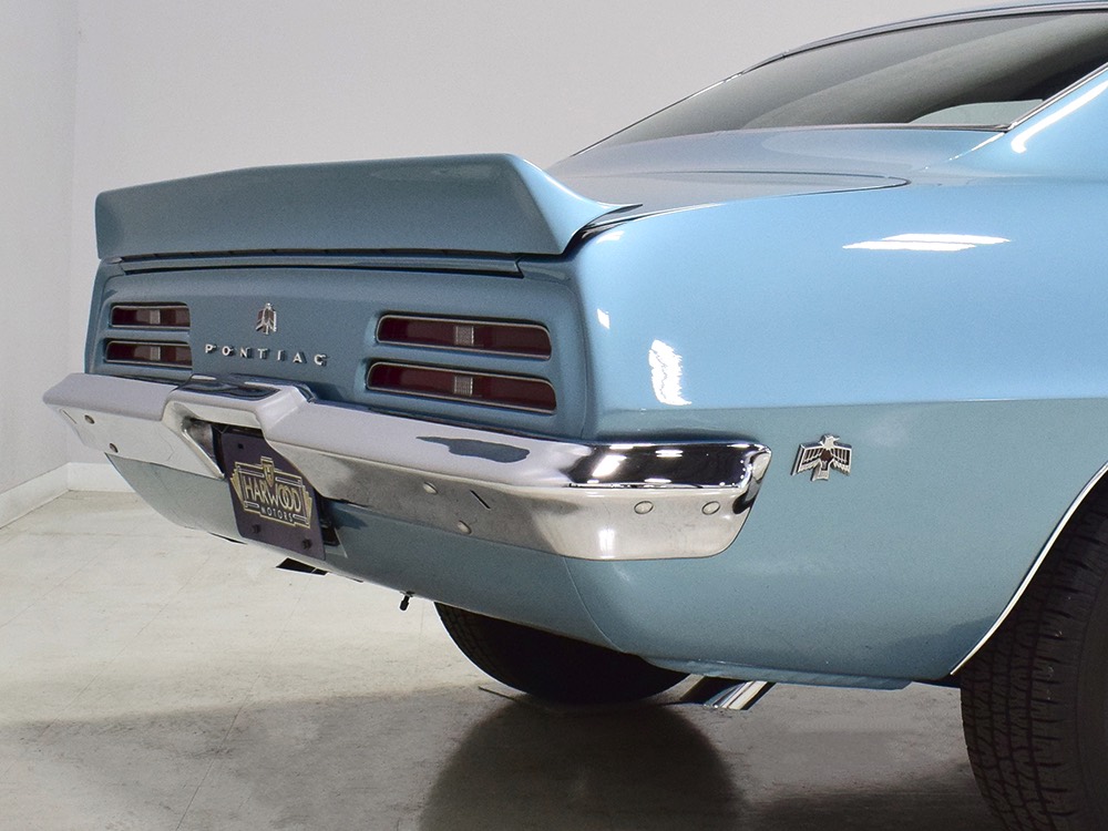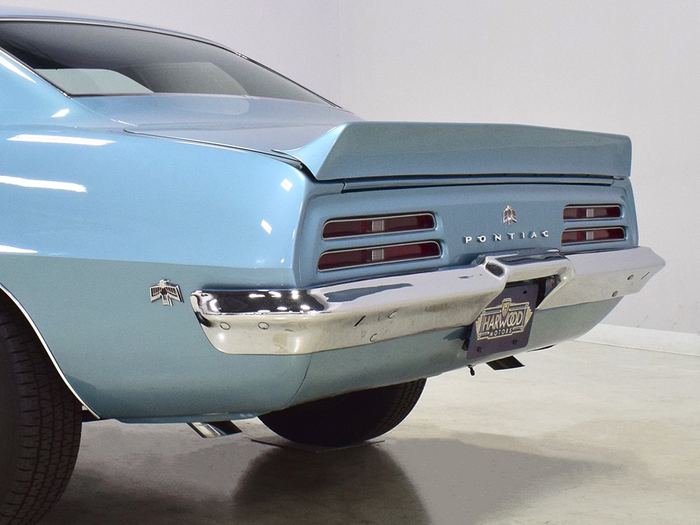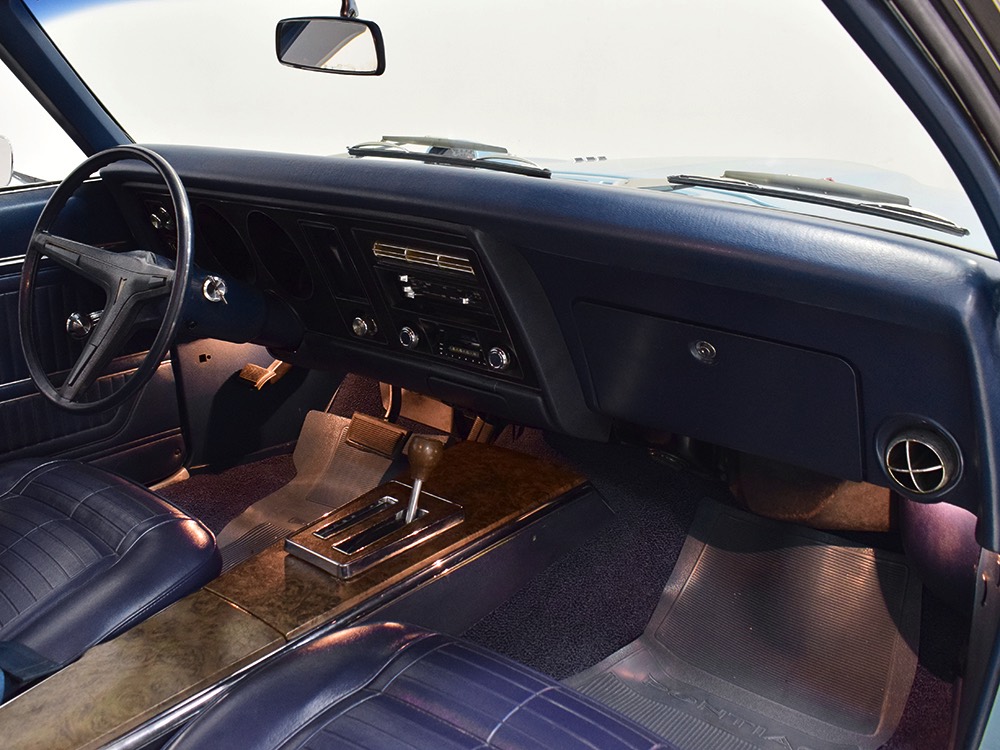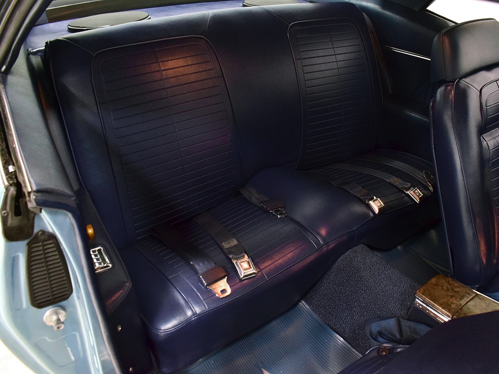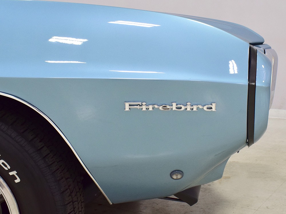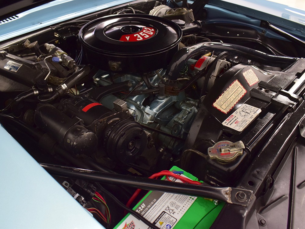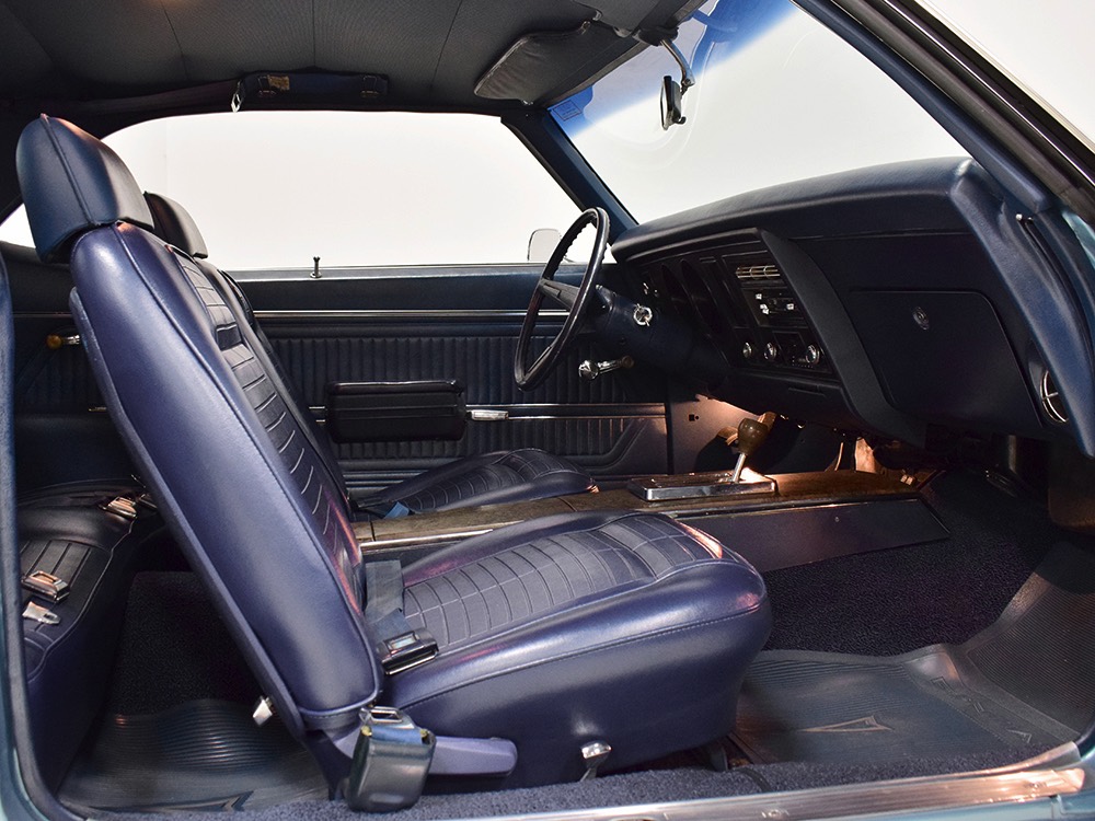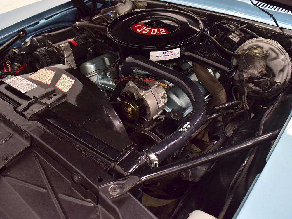 Having spent almost the entirety of its life in California and showing just over 37,000 original miles, this is one clean ‘Bird. According to the Protect-O-Plate, it was delivered new in North Hollywood and remained on the west coast until the mid-2000s, so the sheetmetal is remarkably clean. It was treated to a bare-metal repaint in its original code 53 Warwick Blue a few years ago and looks fantastic today. There’s not a ripple or wave on the body, no signs of previous accident damage, and certainly no rust repairs. The creases trailing from the fender openings are razor-sharp and panel gaps are excellent. The clean Firebird shape looks particularly good in the icy blue paint and simple additions like the decklid spoiler and small grills behind the front wheels make it look aggressive without the need for stripes or other flashy add-ons. Chrome is excellent, including the unique bumper/grille assembly up front, and the detailing on these cars bely their reasonable price: check out the delicate Firebird rear side marker lights, the ‘350’ emblems on the hood, and the cross-hair lenses on the front marker lights. There’s a lot to like here.