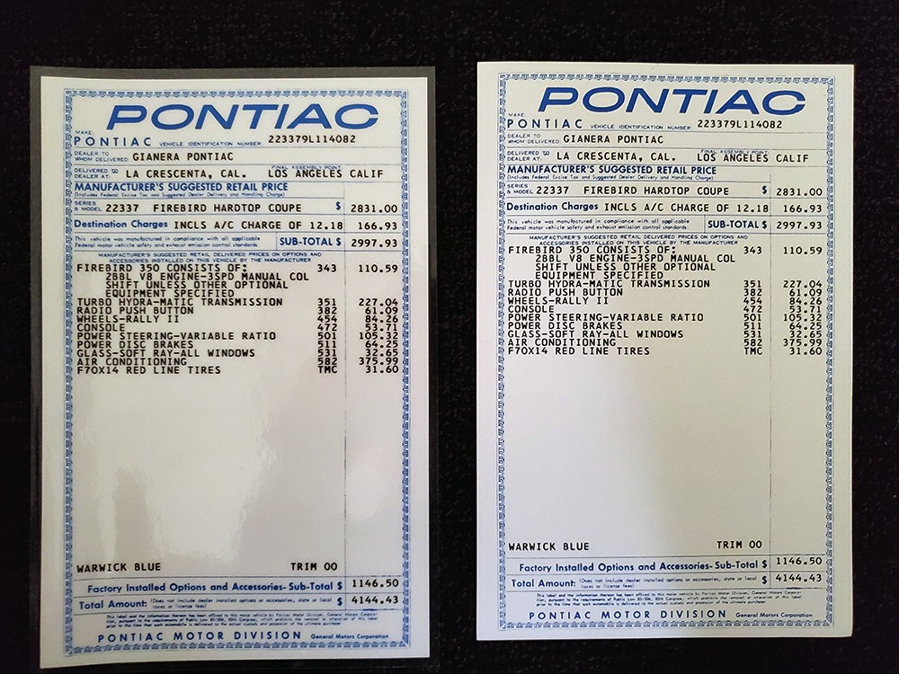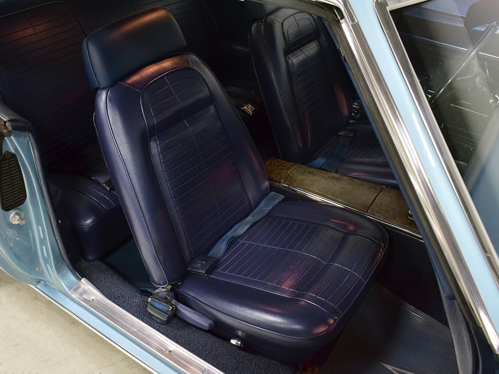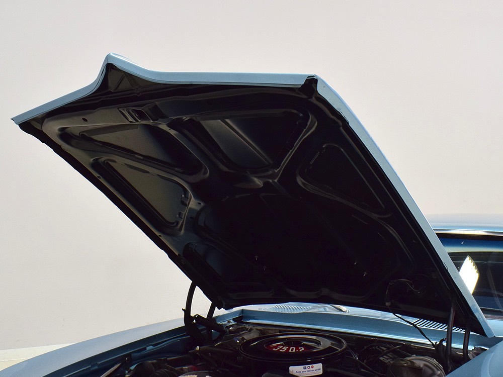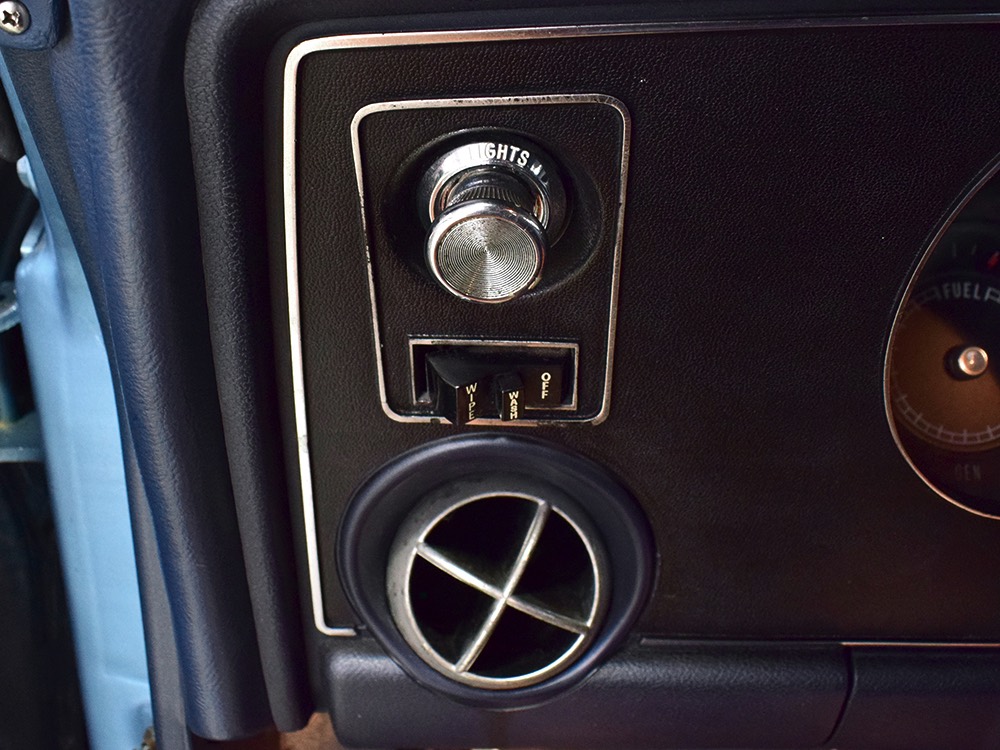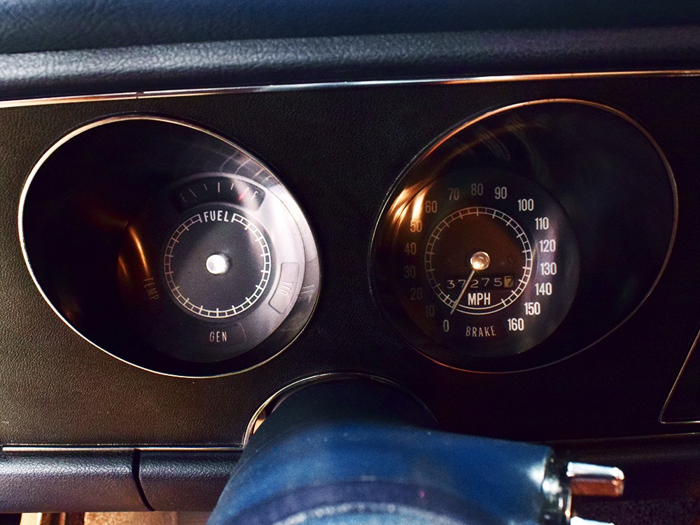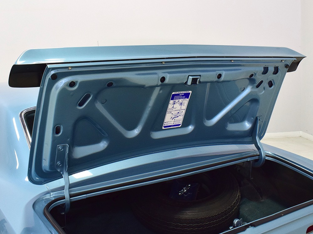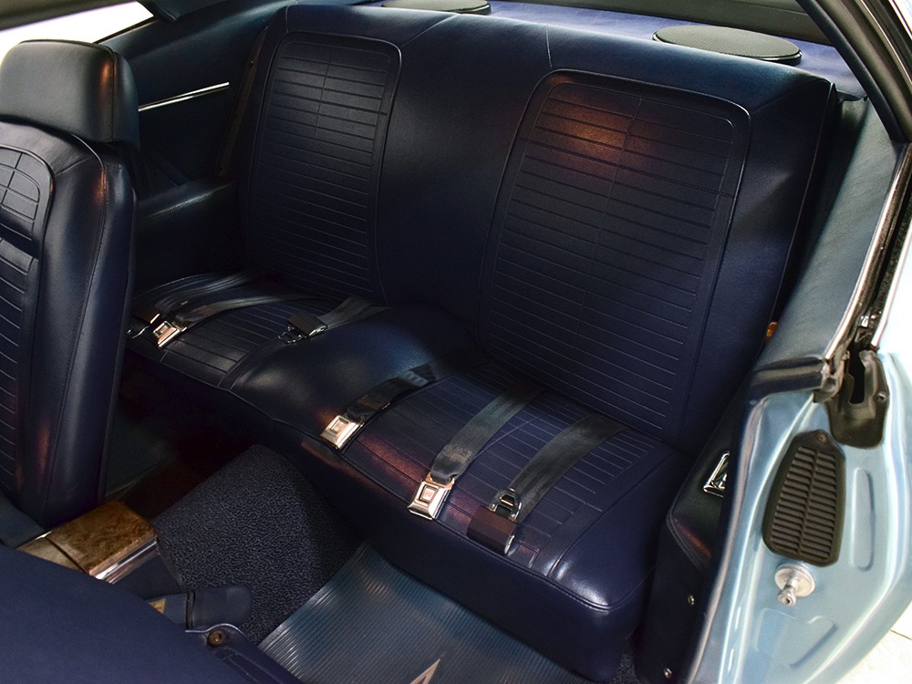 Having spent almost the entirety of its life in California and showing just over 37,000 original miles, this is one clean ‘Bird. According to the Protect-O-Plate, it was delivered new in North Hollywood and remained on the west coast until the mid-2000s, so the sheetmetal is remarkably clean. It was treated to a bare-metal repaint in its original code 53 Warwick Blue a few years ago and looks fantastic today. There’s not a ripple or wave on the body, no signs of previous accident damage, and certainly no rust repairs. The creases trailing from the fender openings are razor-sharp and panel gaps are excellent. The clean Firebird shape looks particularly good in the icy blue paint and simple additions like the decklid spoiler and small grills behind the front wheels make it look aggressive without the need for stripes or other flashy add-ons. Chrome is excellent, including the unique bumper/grille assembly up front, and the detailing on these cars bely their reasonable price: check out the delicate Firebird rear side marker lights, the ‘350’ emblems on the hood, and the cross-hair lenses on the front marker lights. There’s a lot to like here.
