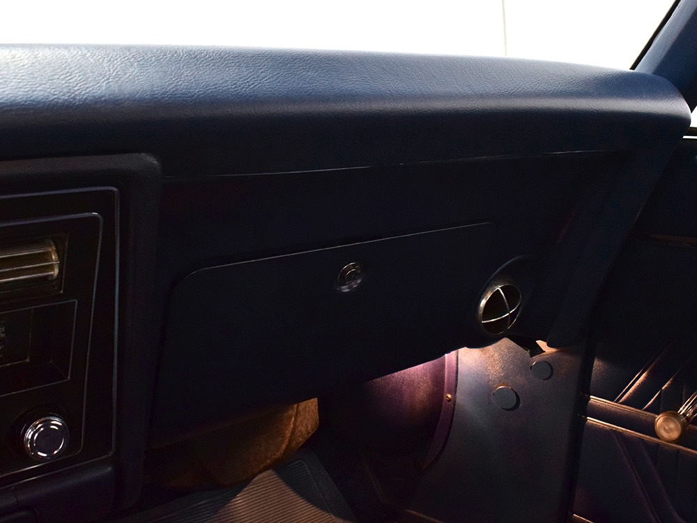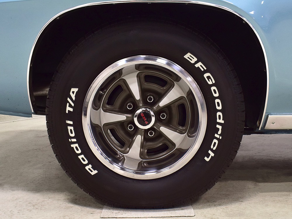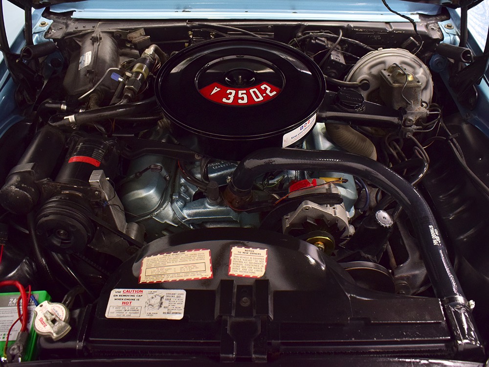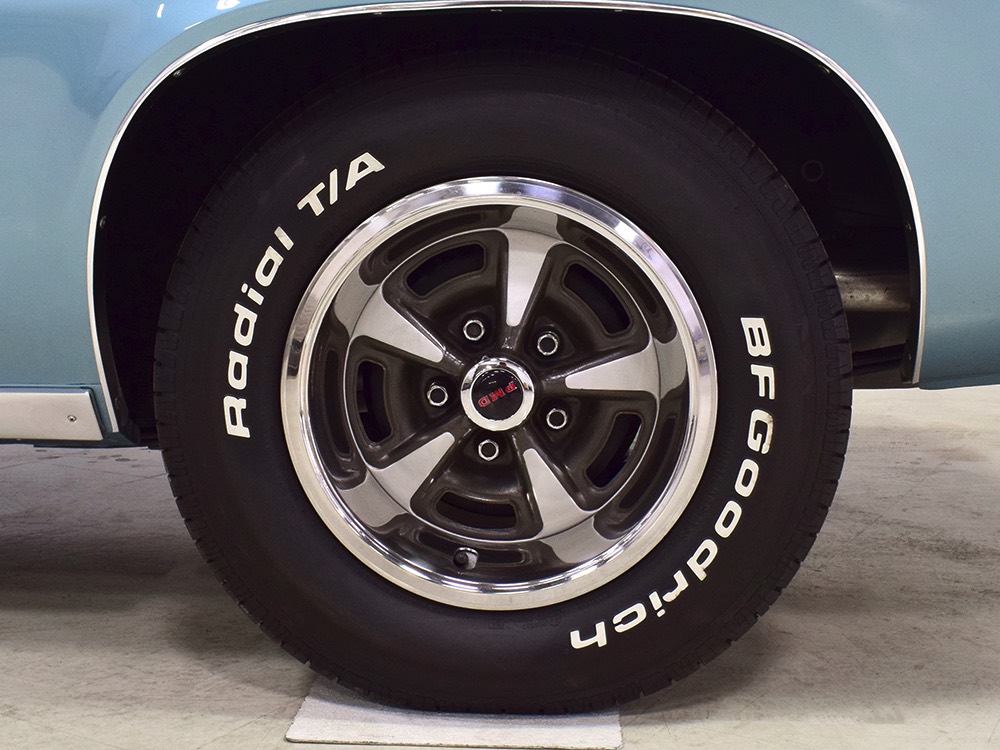 Underneath you’ll see why California cars are just better. Check out those spotless original floors, rockers, and trunk pan! You’ll also note that the 350 cubic inch V8 with A/C included a TH400 3-speed automatic, GM’s best autobox and virtually indestructible when paired with a small block. Shifts are crisp and it makes that awesome quiet whine in first gear that is unique to the transmission. Out back, the 10-bolt rear end is full of 2.93 gears, making this a first-rate highway cruiser. There are new shocks at all four corners and a new gas tank out back, so mechanically this car is ready to rock. Factory Rally II wheels are fitted with 215/70/14 BFGoodrich T/A radials that still have a lot of life left in them.