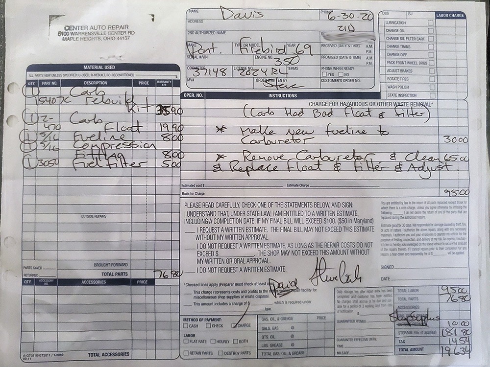 Power comes from the original, numbers-matching 350 cubic inch V8 topped by a 2-barrel carburetor. Now before you scoff, remember that Pontiac’s 350 was known for torque and this stout small block cranks out 265 horsepower and a rather stout 355 pounds of torque. Don’t underestimate this engine. It is a correctly coded XB block and a partial VIN is visible on the stamping pad next to the timing chain. It has never been rebuilt, not with just 37,275 miles on it, and it runs superbly. The carb has been recently rebuilt and we have service records dating back more than 30 years so you know it has always been treated well. It fires easily and has a great muscle car rumble through a recent dual exhaust system with chrome tips. Someone spent some time detailing it as well, as it wears correct Pontiac Turquoise paint, some reproduction decals, and correctly stamped coolant hoses. Power steering and power front disc brakes are part of the package, making this Firebird extremely easy to live with and still a lot of fun to drive.