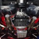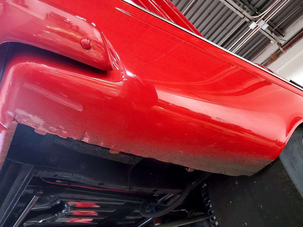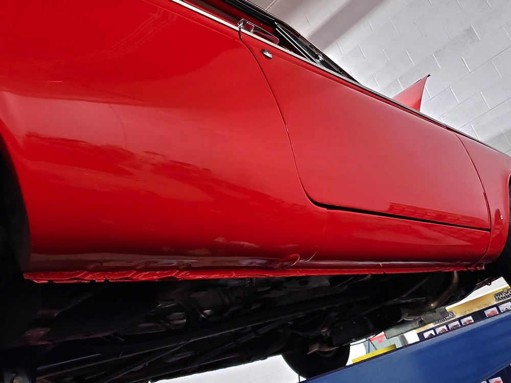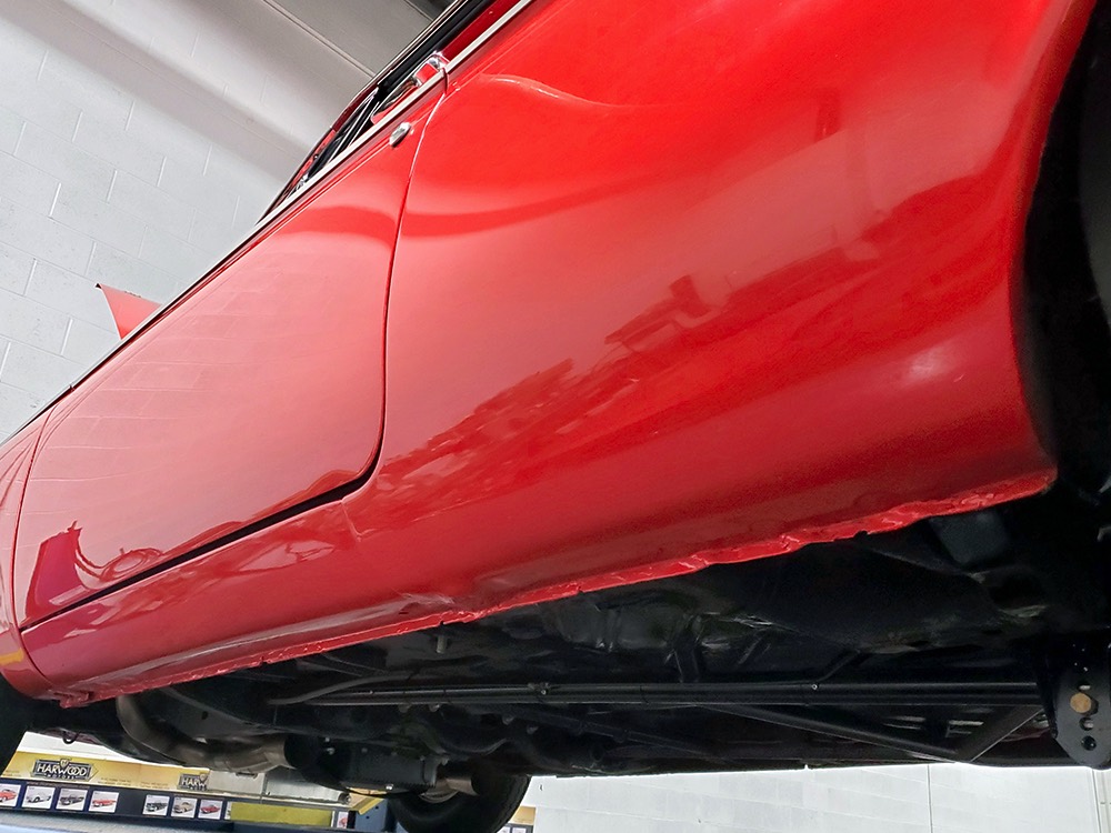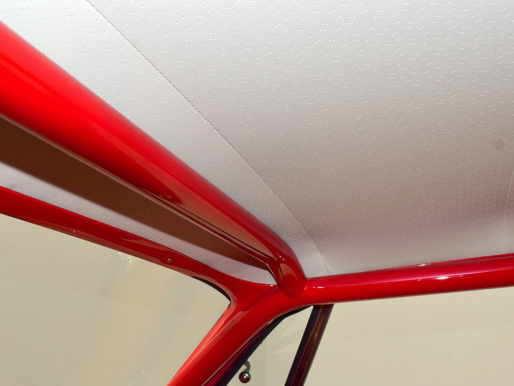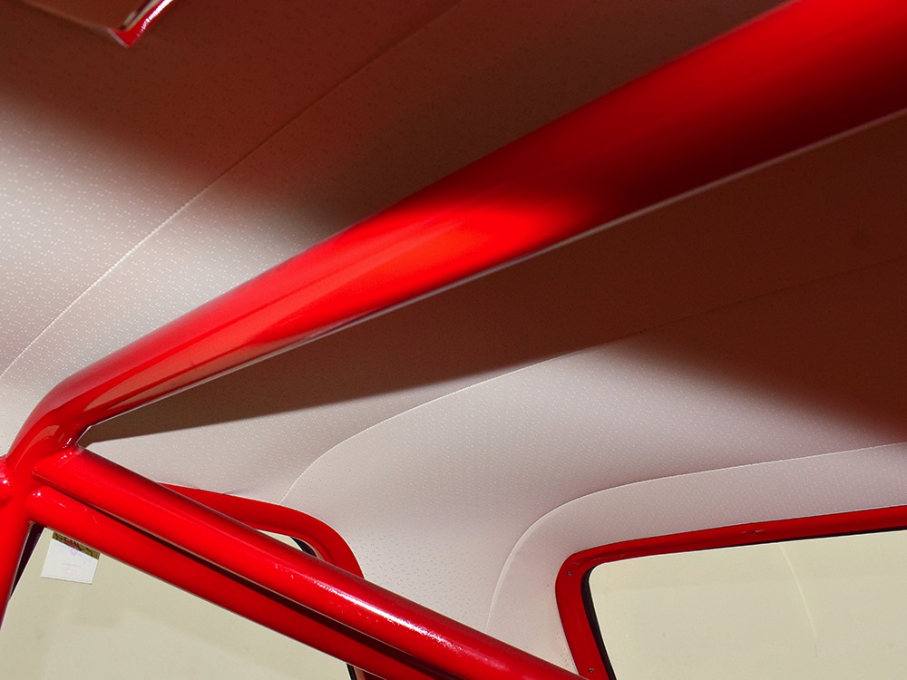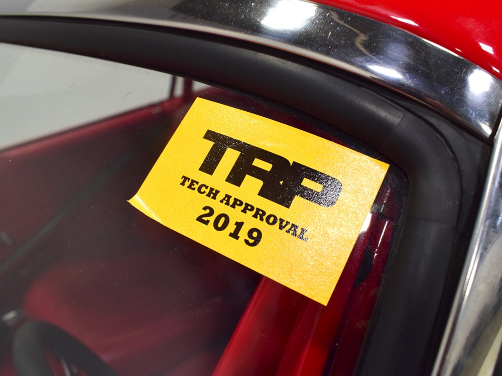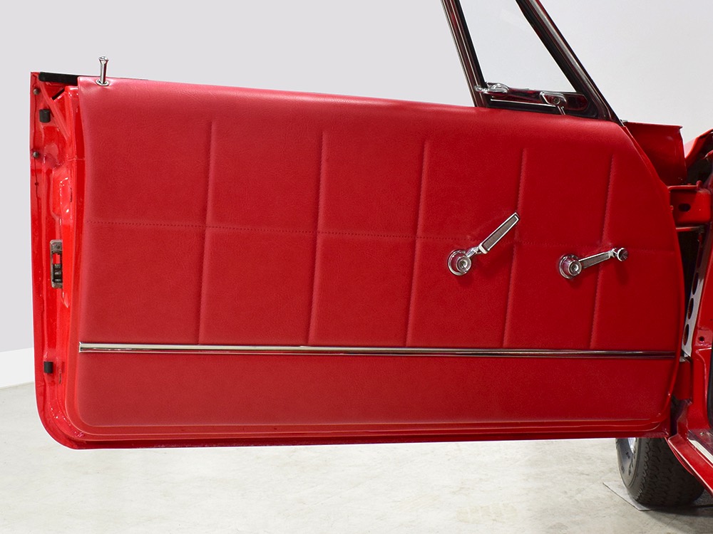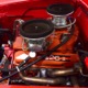 A few years ago, the vintage race car received a spectacular rotisserie restoration to its current condition—it’s quite a bit better than new in just about every way. Because it spent much of its life on the track, it shows just 32,560 original miles and it has never been wrecked or rusty so it’s still carrying all its original sheetmetal. Of course, some of that sheetmetal has been skillfully modified, including the quarters which now house some large-by-huge meats, but none of the changes jump out at you as radical (well, not in terms of the sheetmetal, anyway). During the restoration, all the various bumps and bruises that it might have suffered during its life on the track were expertly exorcised from the bodywork and it presents now as a show-quality car that’s simply stunning from any angle. It’s wearing PP1 Vermillion paint, just as it did in 1963, although there was never a factory paint job that glowed like this one. It remains all steel, including the hood wearing Super Stock scoops that force-feed the those two big Holley carbs underneath. The Polara styling in 1963 can’t quite be called beautiful, but it is certainly purposeful and I think I like that better—this is what we call an “industrial strength” Mopar. A simple strip of stainless side trim highlights the simple hardtop bodywork, along with bright window surrounds and the beautifully restored grille up front. Both front and rear bumpers have been painted to match, but the look works on this car and doesn’t stand out as non-authentic. And while this car wore graphics and sponsor decals almost its entire life, the only flash it carries today are “The Buckeye Brute” script on the hood scoop.