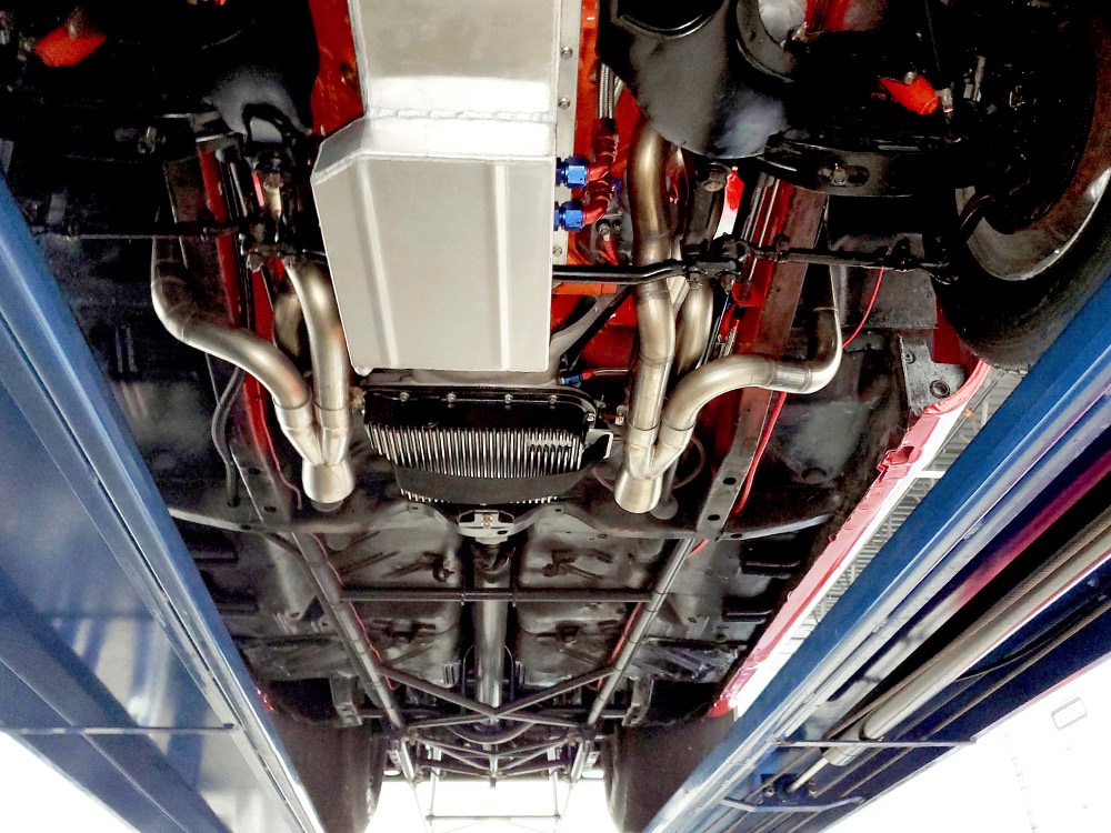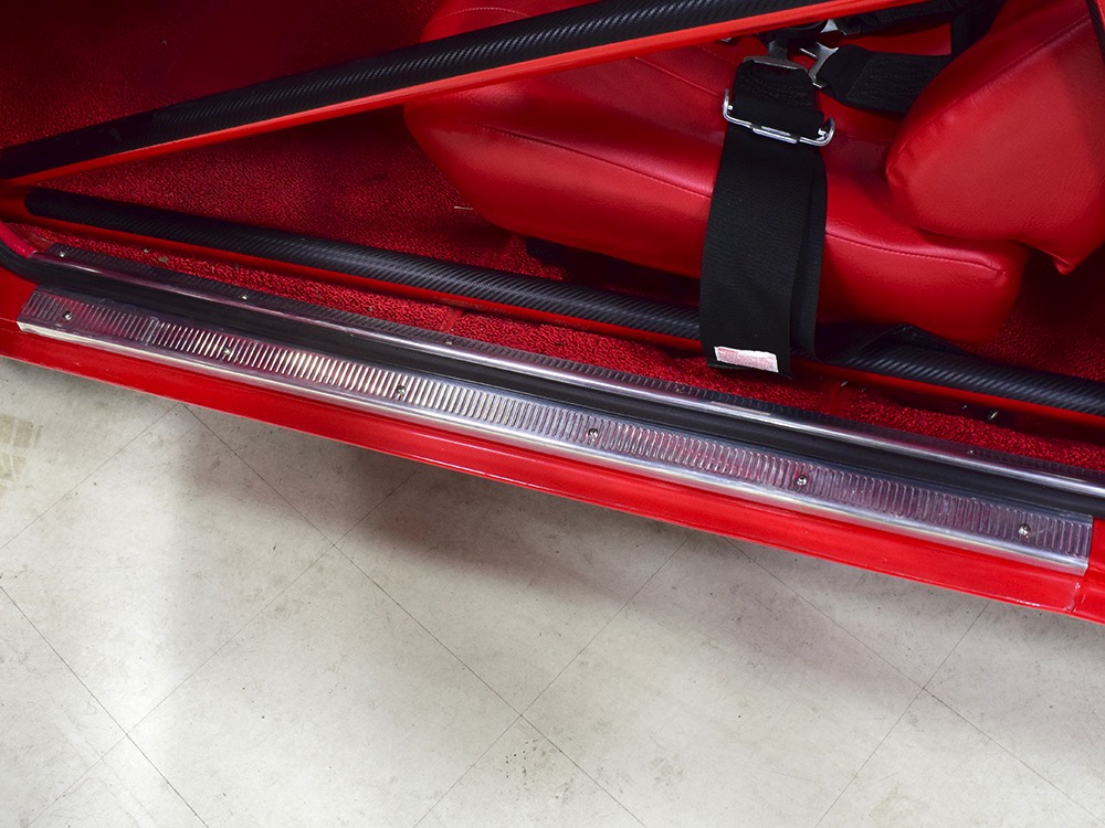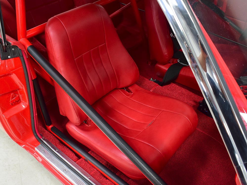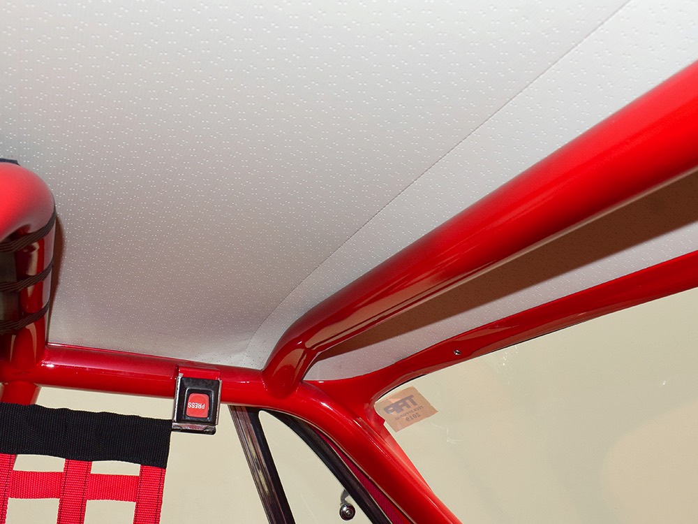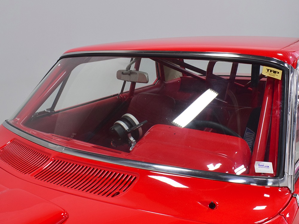 For much of its racing life, this Polara carried a 383 cubic inch V8. That seems kind of anachronous in a car built for combat with a 426 cubic inch powerplant by the factory, but it meant that the original Max Wedge motor was never blown up. When restoration time came, it was rebuilt and dropped back between the fenders, just as it should be. And make no mistake, this isn’t some tame version of a ‘60s performance car, it’s NASTY. 13:1 compression, a seriously big cam, forged internals, electronic ignition, and those two big Demon double pumpers on top of the factory intake. This ain’t no cruise night special, although it was built with streetability in mind. It starts easily, idles reasonably well, and is properly dialed-in so it runs like, well, like a full-tilt race car should. Those gorgeous stainless headers wrap into the fenders and there is no exhaust system, so it sounds like the end of the world when it cackles to life—yeah, if you want this to be a street car, you’ll probably need to add an exhaust system. It’s beautifully detailed to replicate most of the factory look, including the bright orange engine enamel, reproduction “Super Stock II” valve cover decals, and even a proper 26-inch radiator up front, not some aluminum piece. Of course, it does have an electric water pump and fan, a big transmission cooler, and the various bits required if you’re going to put it safely on the track. It’s nevertheless impressive as hell to pull the pins and lift that hood.