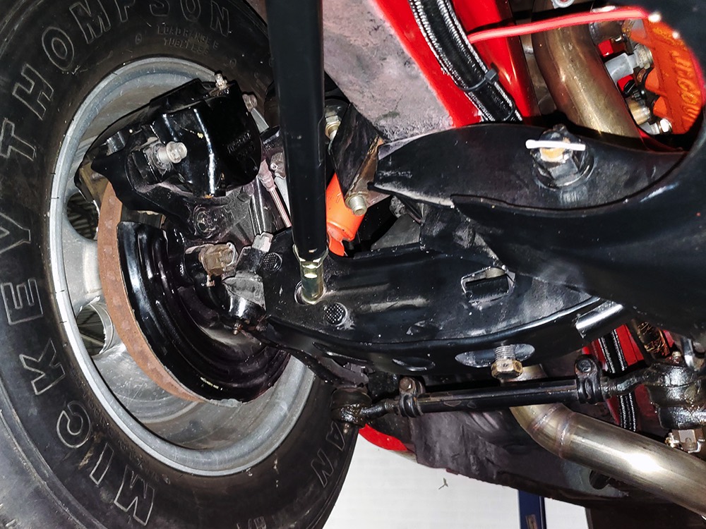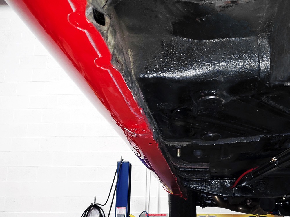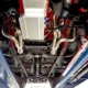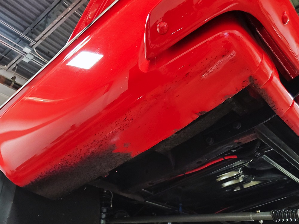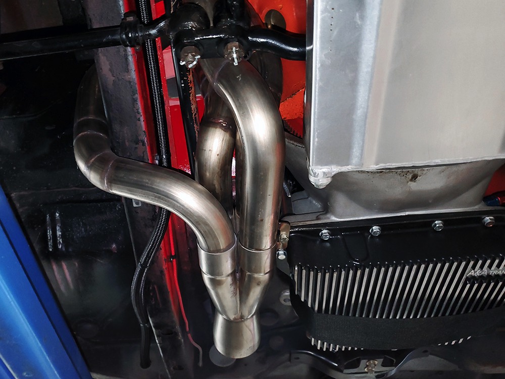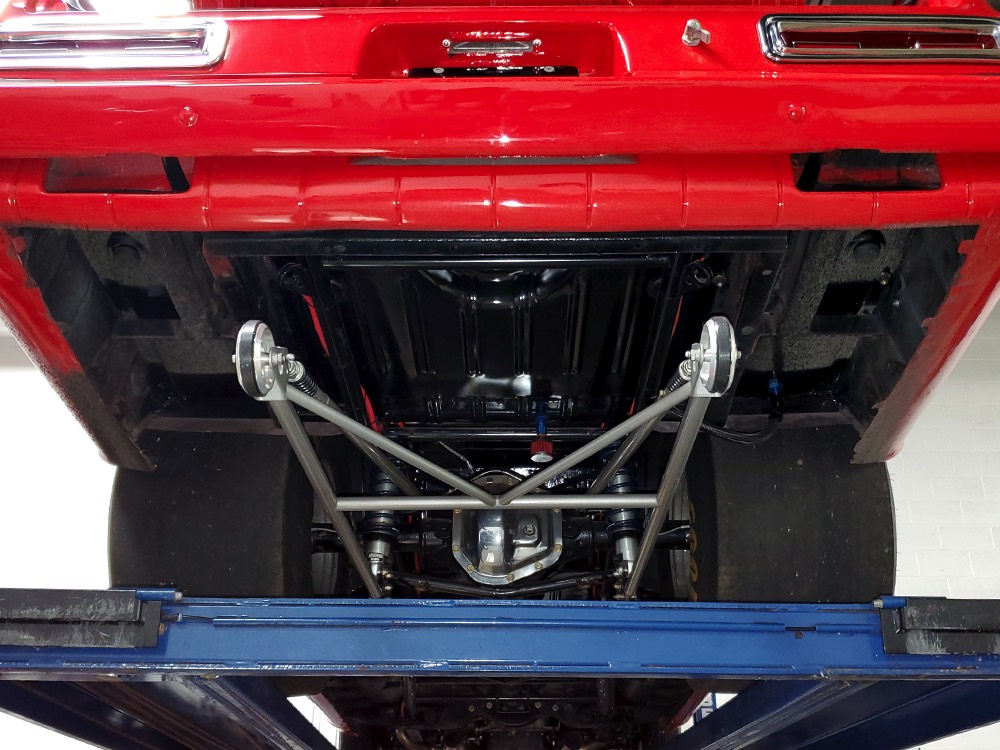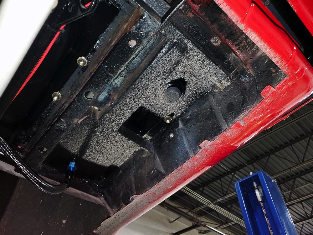 The chassis was heavily fortified to work on the track, including a full back-half conversion and a mini frame connecting the front and rear subframes (remember the Polara was a unit-body car). The front suspension remains stock, including the torsion bars, and given how fast this sucker is, you’ll be glad to see disc brakes at all four corners. Steering is manual, but if your first worry is whether your wife can handle it, it’s probably not the right car for you. The 3-speed TorqueFlite automatic transmission features a high-stall torque converter and a reverse manual valve body (race car, remember), as well as a deeper pan and a blow-proof strap. Shockingly, the rockers are original and you can still see the factory spot welds running front to rear, and even most of the floors are untouched. The rear axle is a heavily modified and reinforced Dana 60 packed with 4.56 gears on a locker, custom axles, and hanging on a trick 5-link setup with adjustable coil-over shocks. Oh, and a set of wheelie bars, and I’m guessing you’ll be glad to have them sooner or later. And just so you don’t think this car is a poser, we left the rubber on the quarters and trunk floor. 15-inch Weld wheels are a traditional look and carry 28x7.50-15 Mickey Thompson rubber up front and 32x14.50-15 Goodyear meats at the business end.