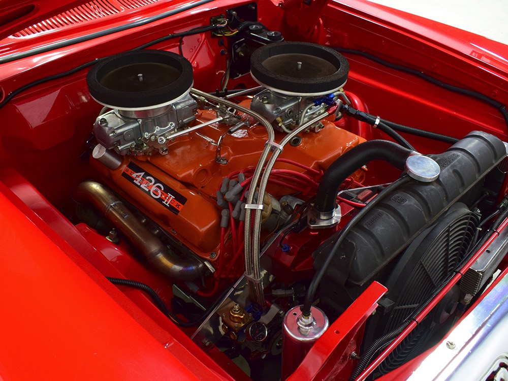 Chrysler seems to be the first company to figure out that factory-built performance cars were something the world needed. Before the early ‘60s, there were plenty of fast cars, but they were usually warmed-over production jobs. No, there were very few factory-built cars designed for speed first and foremost. Then some clever guys at Chrysler decided to take their biggest engine—a 413 cubic inch V8 from the biggest Imperials—and stuff it in a smaller, lighter car for the express purpose of generating speed. THAT was quick thinking. That 413 led to the 413 ‘Wedge’ which described the modified combustion chamber designed to make more power (along with a lot of compression, big valves, and a REALLY big cam). In 1963, they punched it out to 426 cubic inches, which not-so-coincidentally right next to the NHRA’s 427.2 cubic inch limit. Dual carbs on a cross-ram intake made these engines instantly identifiable and with GM stepping out of the racing game, the Mopars were dominant.