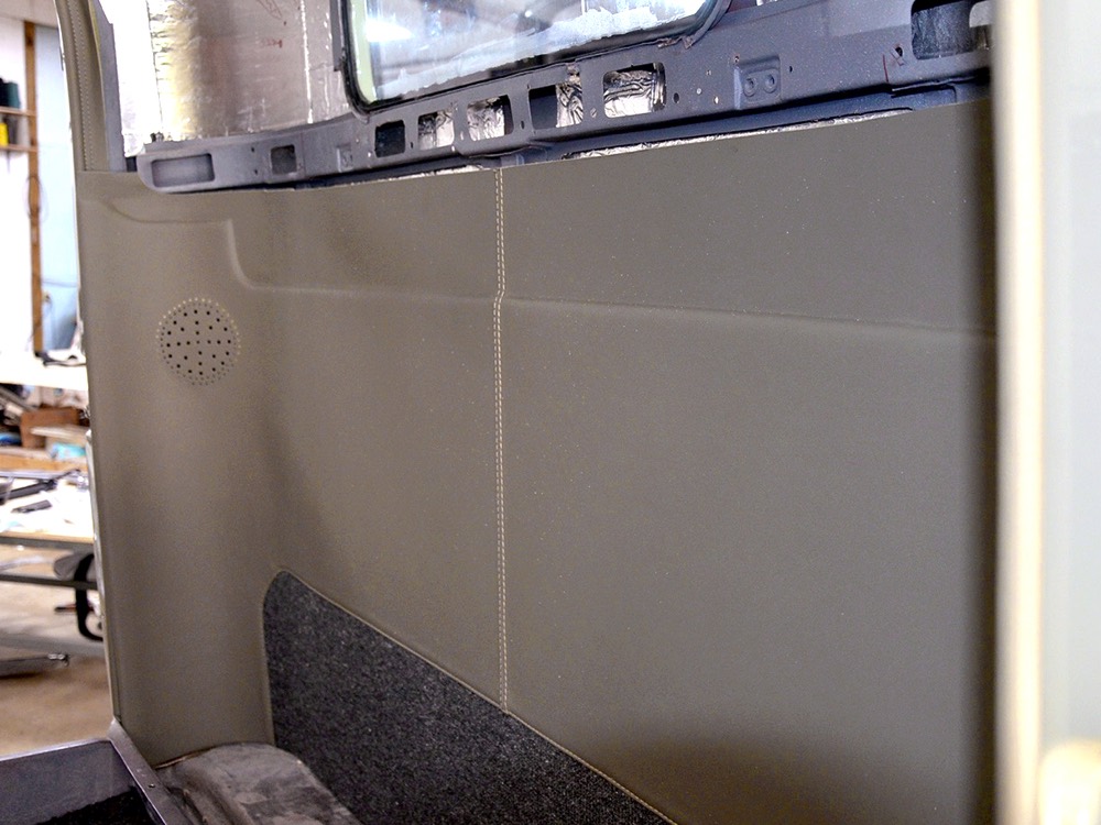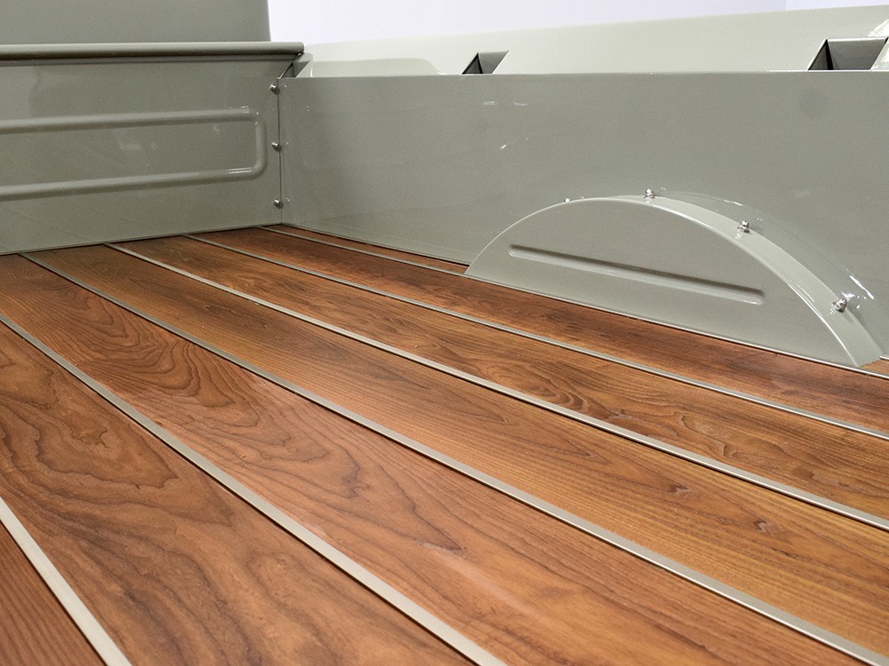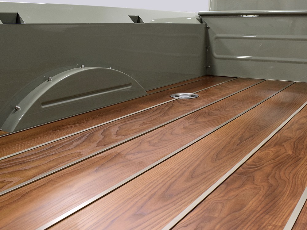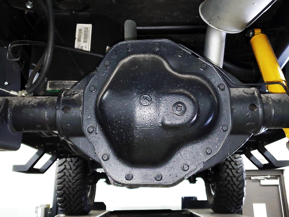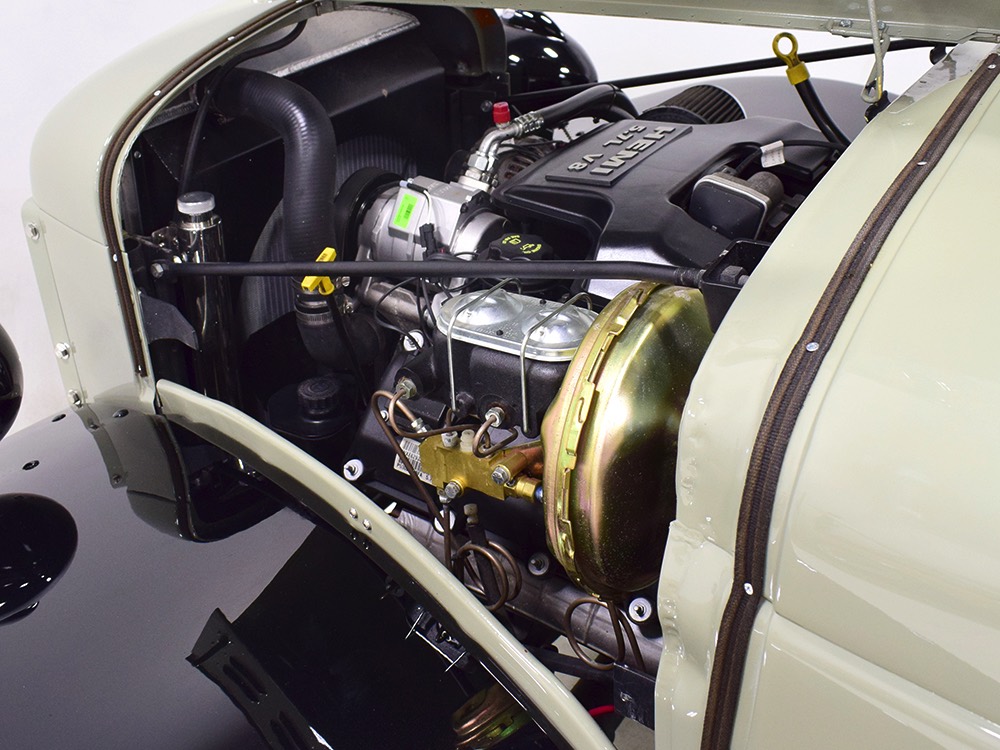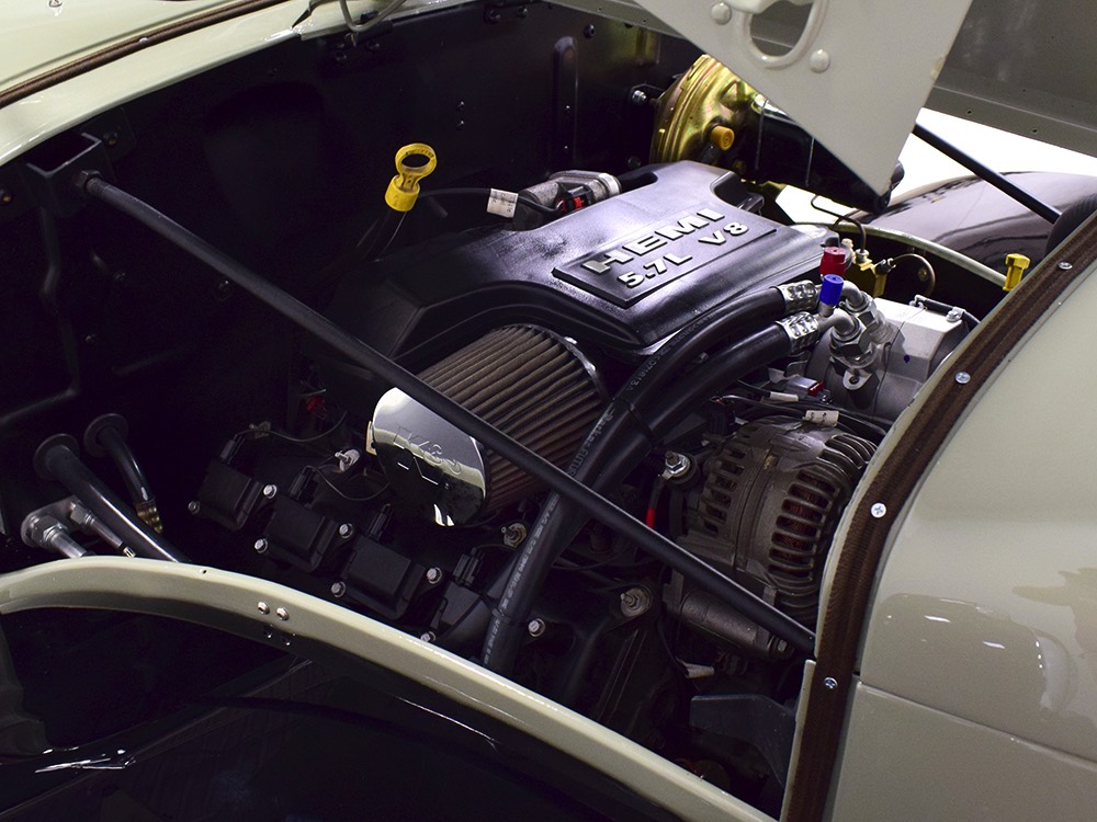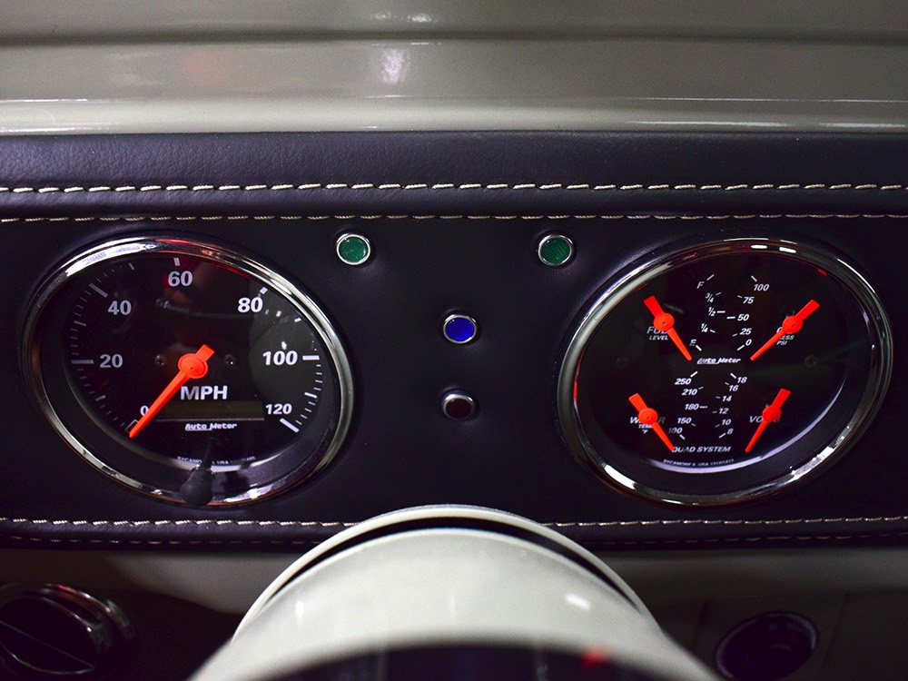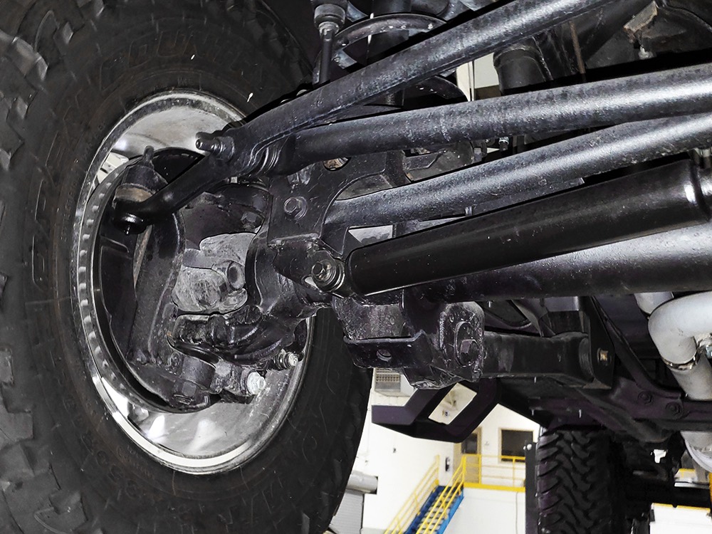 The chassis was extensively modified but the goal was to keep it as OEM as possible. So while it was shortened and reinforced, it retains the original suspension, brakes, steering, axles, and other hardware. In fact, the factory-fresh mission even extended to sourcing a gas tank from a regular cab Ram and modifying the original exhaust system to accommodate the shorter wheelbase. Impressive! The 545RFE automatic overdrive transmission is the same one that serves so reliably in the heavy-duty 3500 Rams and with a deep overdrive gear, it makes this Power Wagon an effortless highway cruiser. Front and rear axles are stock Ram 3500 as well, an AAM 9.25-inch Chrysler unit up front and a monstrous 10.5-inch AAM Chrysler axle in back, all fitted with 4.10 gears. In between there’s an NV271D transfer case with shift-on-the-fly capabilities (you’ll note this truck does without the pesky manual locking front hubs) and factory driveshafts that were custom shortened to work on the shorter wheelbase. With factory shocks, springs, and bushings, ride quality is exceptional for a Power Wagon yet it’ll still haul stuff like a 1-ton pickup (although the bed is just so beautiful, its hauling days are probably over). Steering is light and effortless and even with the giant 37x13.50-18 off-road tires, it tracks beautifully on the highway. Even the factory Class IV receiver hitch made the conversion intact, so this truck can pull far more trailer than its ancestors.