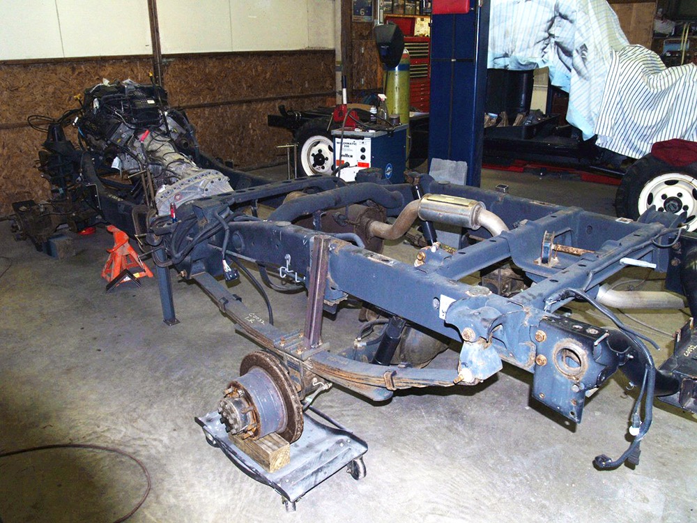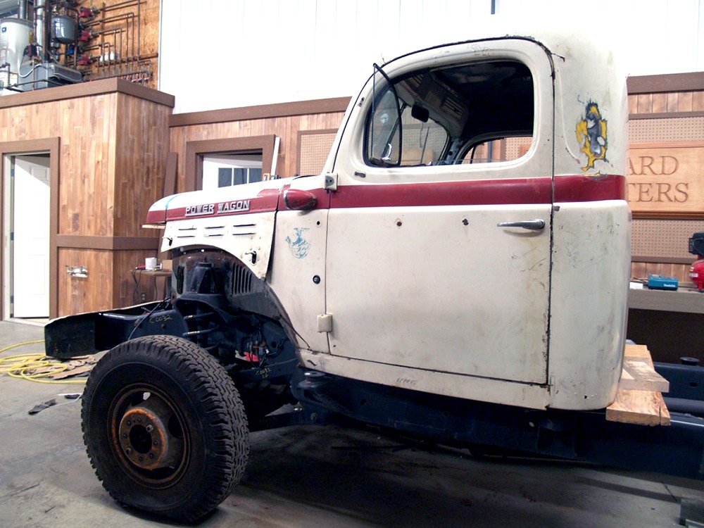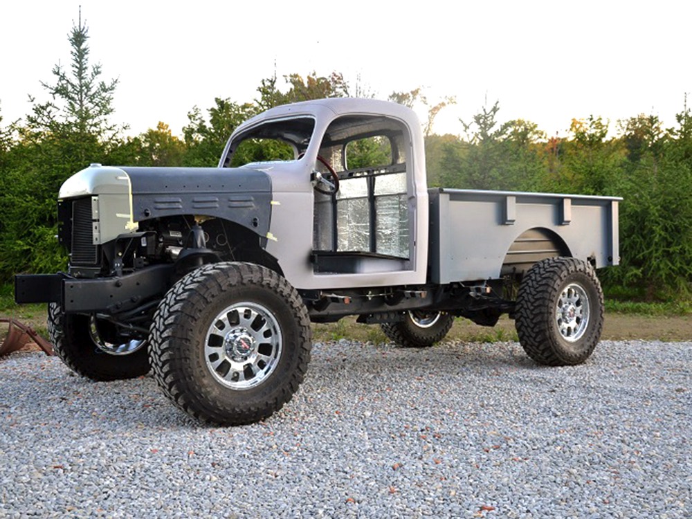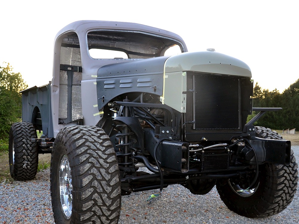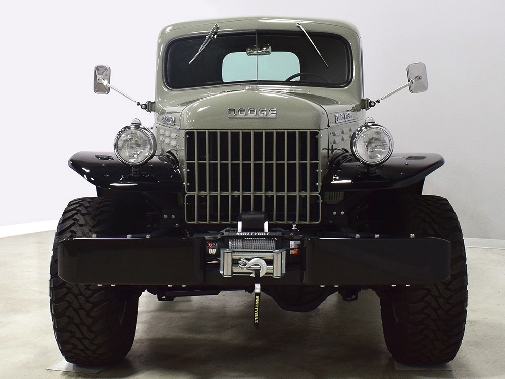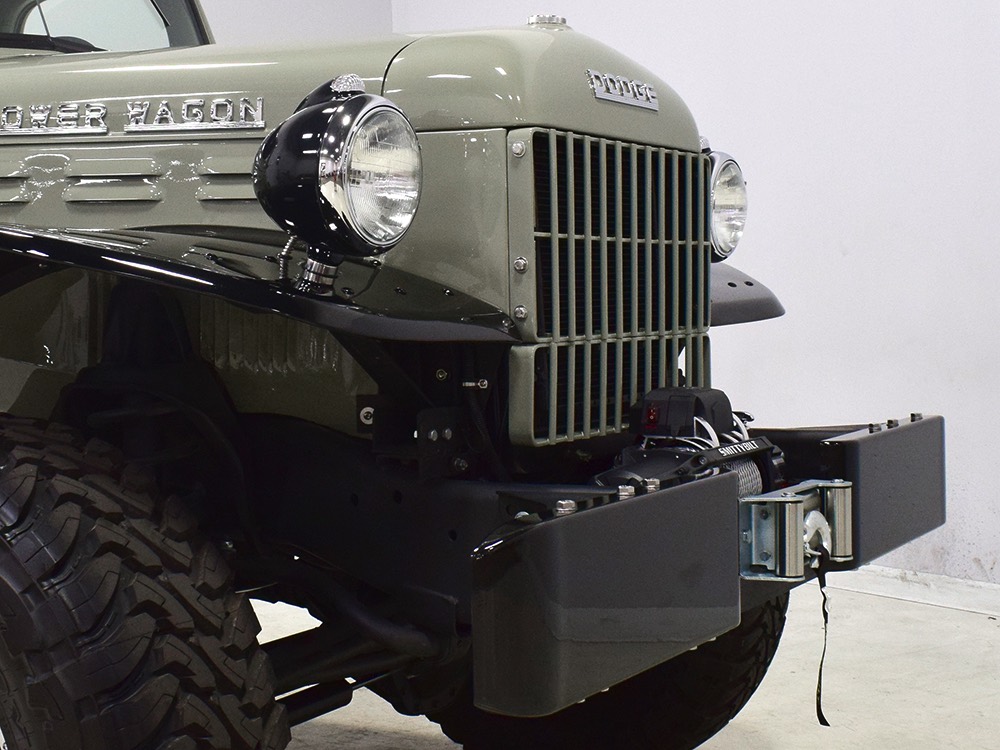 Hard to know where this one started, with the chassis or the truck. A low-mileage 2007 Dodge Ram 3500 extended cab chassis looked too good to pass up, and it seemed like a natural to park it under a Power Wagon. A super-clean 1958 Power Wagon was sourced from a naval base out west where it served as a fire truck for decades and was then just parked in the 1970s, so there was no rust and no body issues beyond a ding in the cab behind the driver’s door. It also included the grille, hood, and front fenders, which were also in first-rate condition. The cab came off the frame and the mock-ups started, beginning with sectioning the 160-inch late-model chassis down to a Power Wagon-sized 126 inches. They had to trim the front frame rails to get the proportions right (nailed it!) and create new heavy-duty bracketry to support the Power Wagon front fenders above the Ram’s original front suspension. In back, an all-new bed, rear fenders, and running boards from Tisdale Coachworks were refinished and slightly modified to give the truck better proportions (the bed is about two inches taller than stock). All the Power Wagon body panels were stripped to bare steel and finished to show standards before being covered in light Sage Green paint that is just gorgeous in person—the subtle color contrasts brilliantly with the in-your-face Power Wagon attitude. Familiar Power Wagon front bumpers were reinstalled along with a heavy-duty Smittybilt electric winch. Please note how neatly it all fits together with everything in the right position—that’s not easy to do and there are some downright awful-looking Power Wagon conversions using late-model chassis because guys have a hard time getting this part right. The thing just looks right.