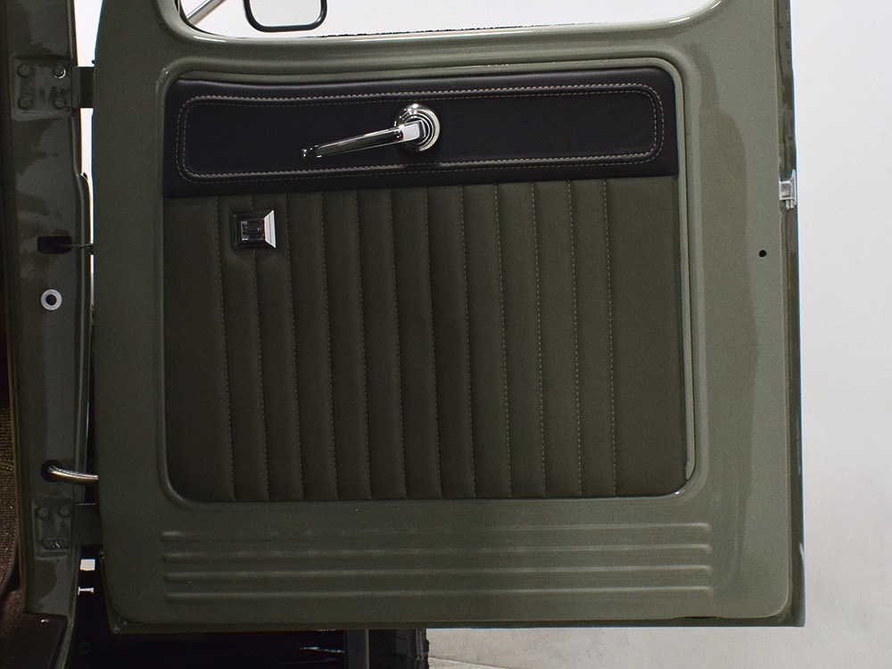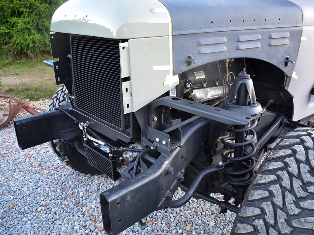 The truly wondrous thing about this Power Wagon is that it’s a modern truck. It isn’t an old truck with improved capabilities, it’s a late-model Dodge Ram. Power comes from a fuel-injected 5.7 liter HEMI V8 with factory engine management, distributorless ignition system, and all those other technical things that make modern vehicles so effortless to drive. It fits neatly in the Power Wagon’s engine bay and wears all its original accessories, so you get power steering and 4-wheel power disc brakes, in addition to the aforementioned A/C. There’s a giant custom radiator up front cooled by a heavy-duty fan with a modern clutch so it’s efficient, too. The goal was to make it look like a factory-built piece, so all the OEM markings, decals, fasteners were retained wherever possible. The only notable deviation from stock is the power brake booster and master cylinder, but the system feels so natural you’ll never notice. Turn the key and it starts instantly and idles perfectly, every time, thanks to the miracle of fuel injection. In fact, after driving so many diesel-powered Power Wagons, the soft start on this one is quite refreshing.
