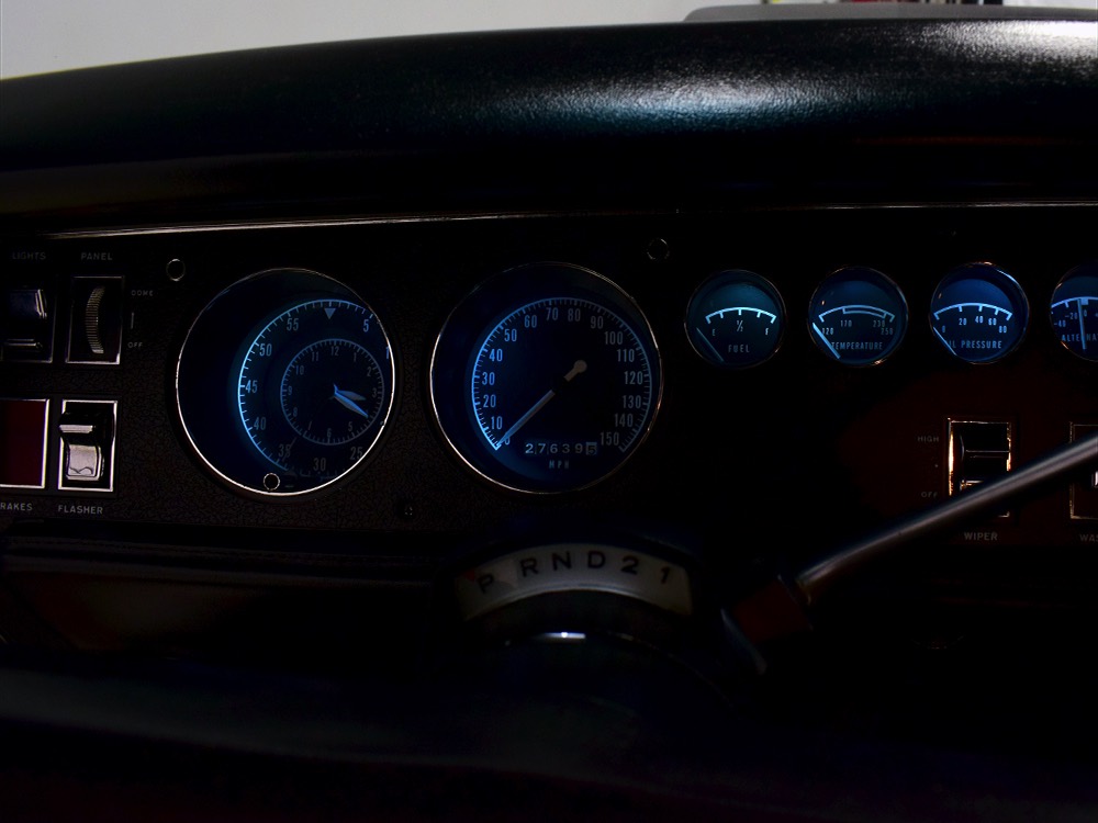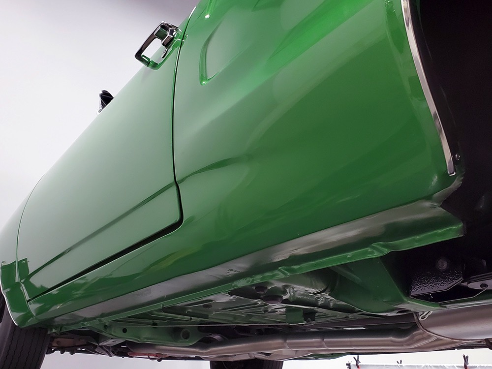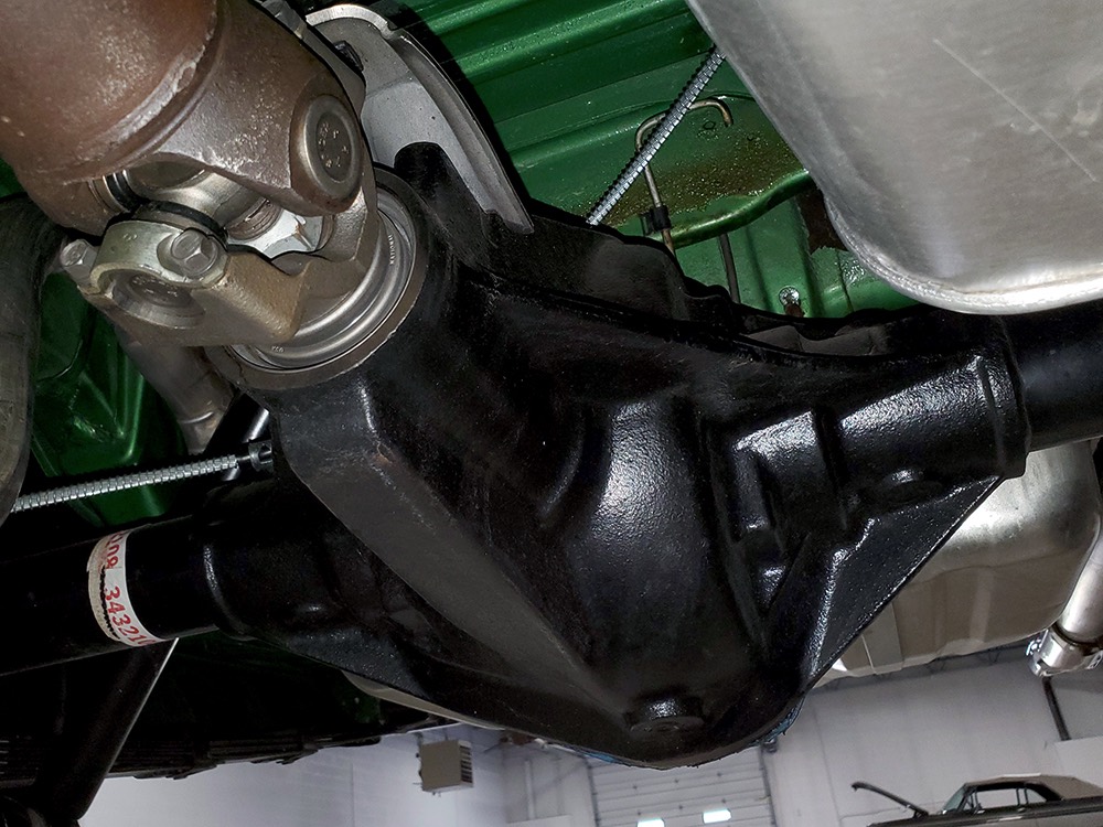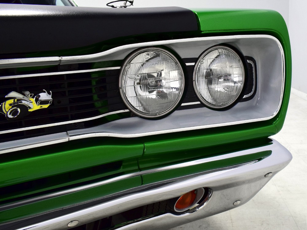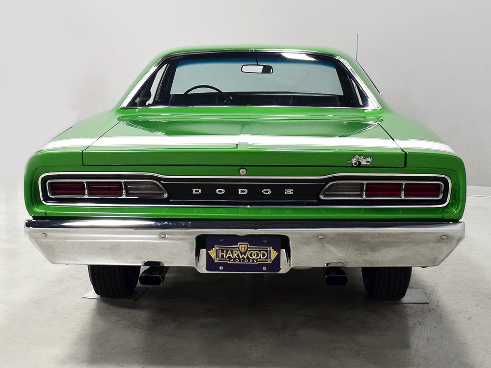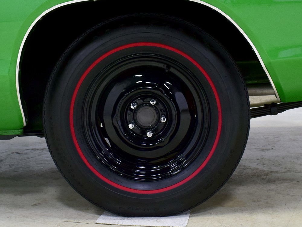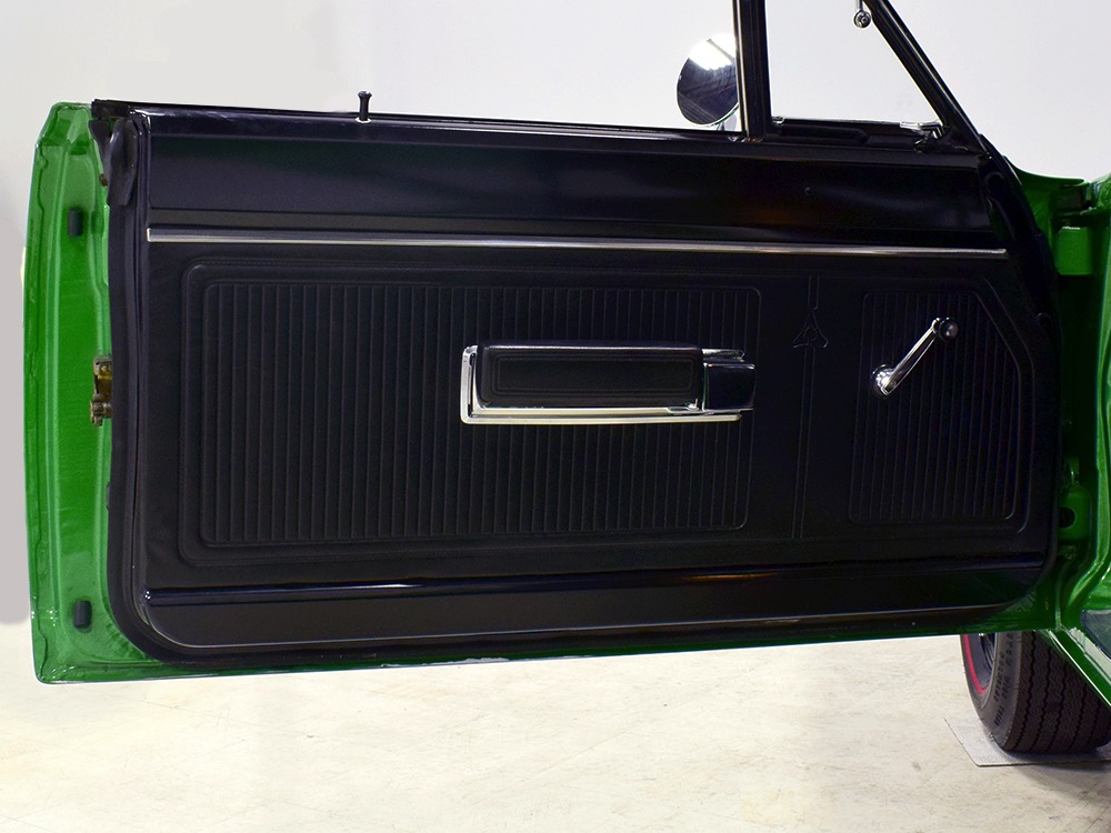 Now check out that undercarriage—this car’s racing days are long behind it, but the floors have never been cut or patched, the rockers still show original spotwelds, and the suspension is highly detailed. Manual drum brakes with the drums painted red were the only choice on the A12s, so don’t complain about the lack of discs—that’s how they came, period. The TorqueFlite 3-speed automatic transmission shifts crisply and is always ready to serve up a quick downshift, and a Dana 60 with 4.10 gears and a Sure Grip limited slip was likewise standard equipment. This one has a set of more mild 3.54 gears that make it a much better street car yet still entertainingly fast. A reproduction exhaust system sounds suitably muscular and offers correct chrome tips under the rear bumper. And again, all the factory markings and decals have been accurately reproduced here. Yes, there are a few signs of use (the restoration is a few years old) but good sheetmetal and attention to detail show through. Correct H-code steel wheels (unique to the A12s) are fitted with chrome lug nuts as original plus a set of G70-15 Goodyear redline tires so it looks very much as it would have in 1969.