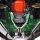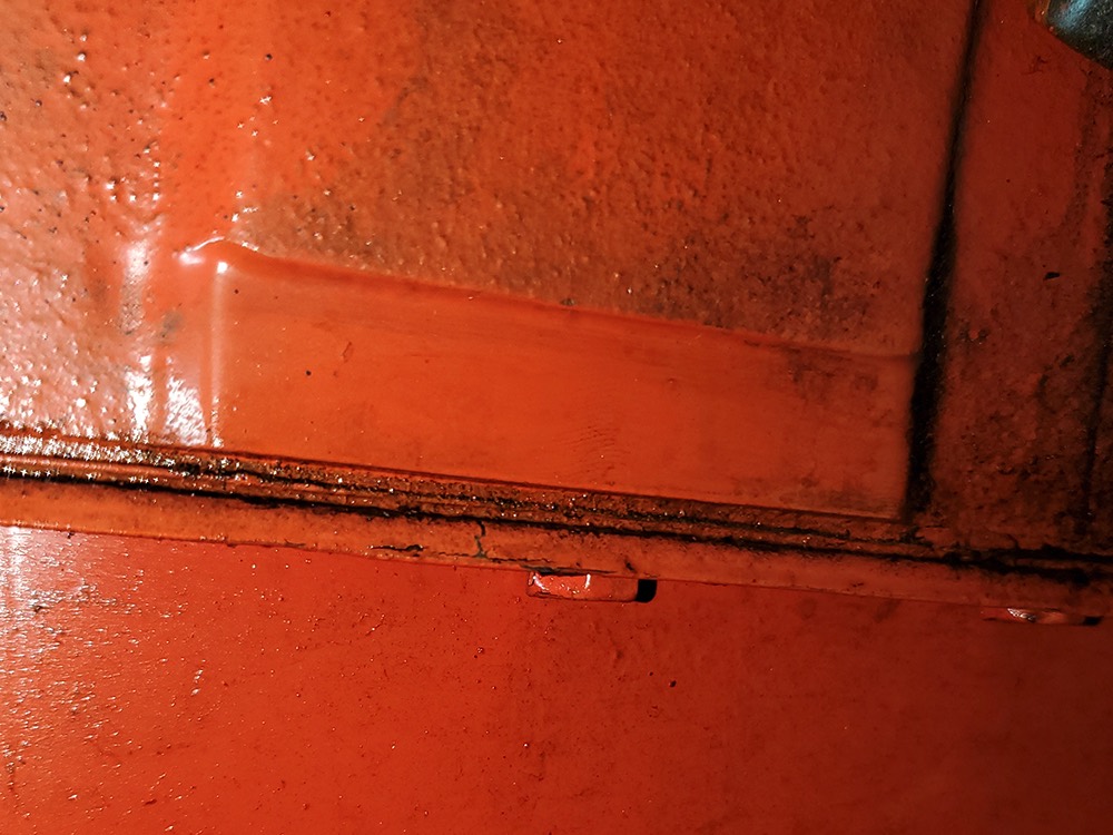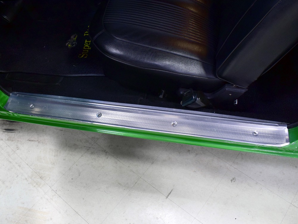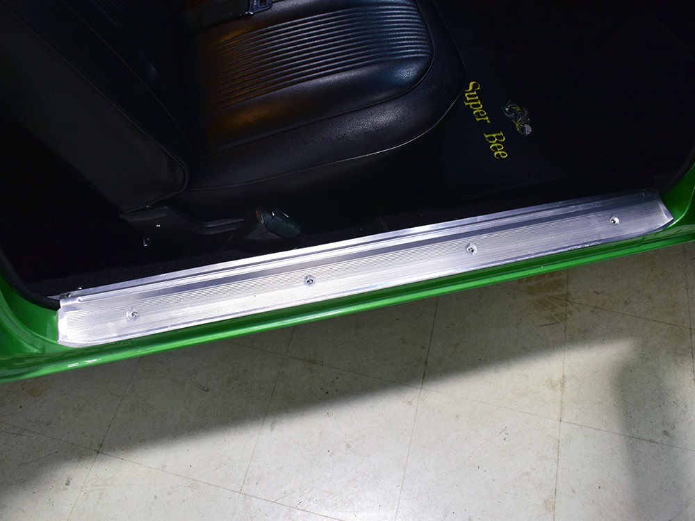 The only engine available with the A12 option package was the 440 cubic inch “Six Pack” V8, rated at 390 horsepower. Guys who knew fast cars in 1969 understood that the 440+6 was every bit a match for the mighty Hemi on the street, particularly in the lightweight Super Bee, and it had the advantage of being both bulletproof reliable and cheap to maintain. This is a warranty replacement block (which most of them are, given how these cars were used) and has been rebuilt to stock specs and highly detailed for show. The Six Pack air cleaner dominates and the surround that seals it to the unique A12 lift-off hood is a little crude, but this was a race car so nobody really cared. Hemi Orange paint really pops against the green engine bay and the little stuff is correct: hose clamps, clips, and markings were all accurately reproduced to give this car a factory look. The radiator is freshly re-cored, carburetors have been rebuilt so it starts easily and idles well, and for something designed to race, it’s surprisingly docile. Stock exhaust manifolds actually flow almost as well as headers without the headaches, so they left them in place. Going down the road, it’s easy to drive and remains very well behaved thanks to expert tuning by a guy who knows these cars inside and out.