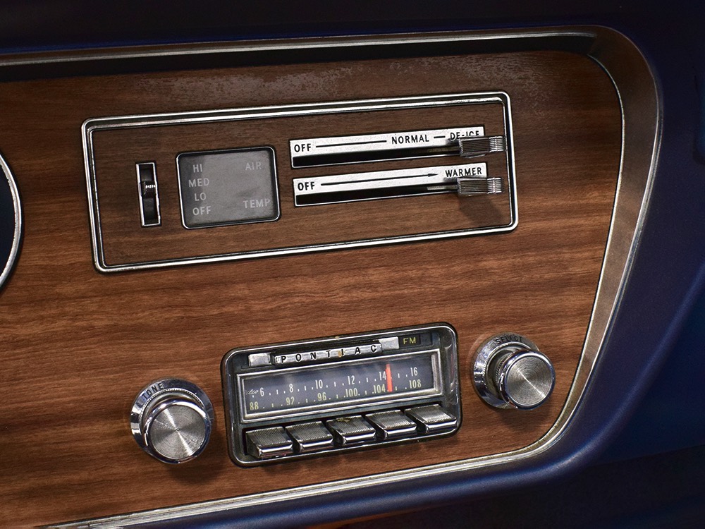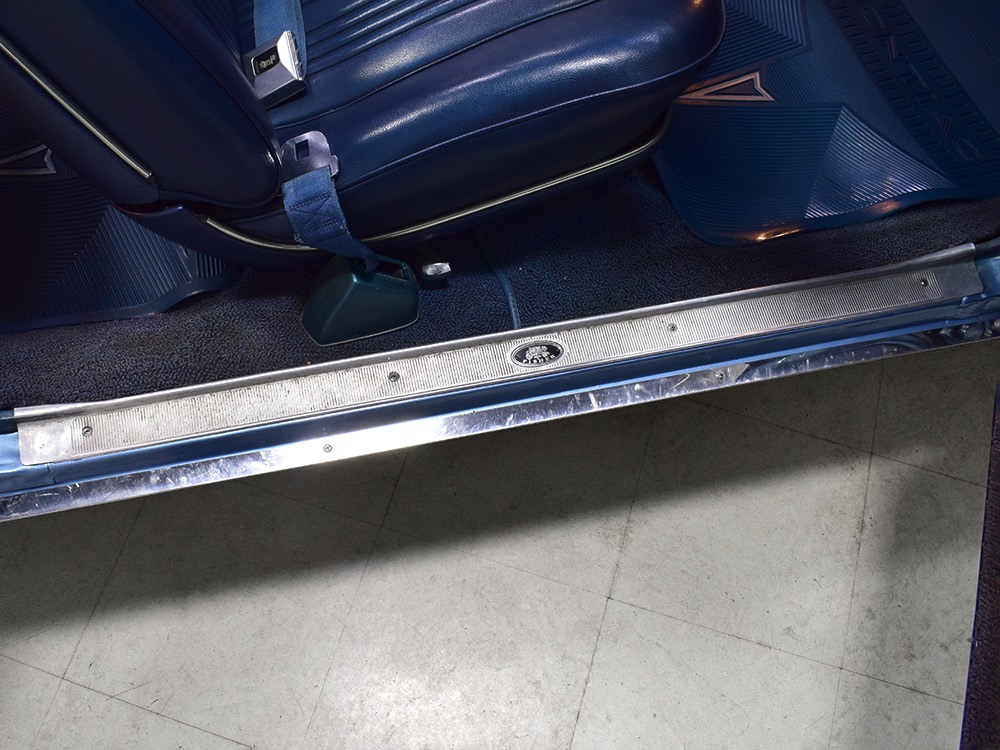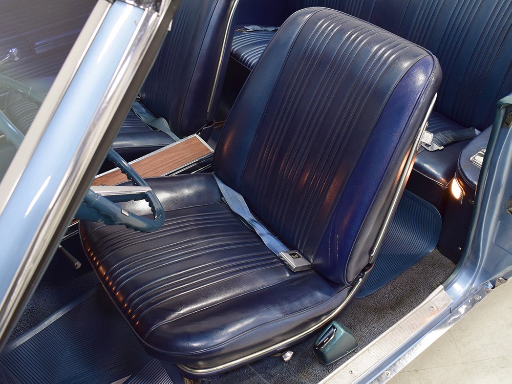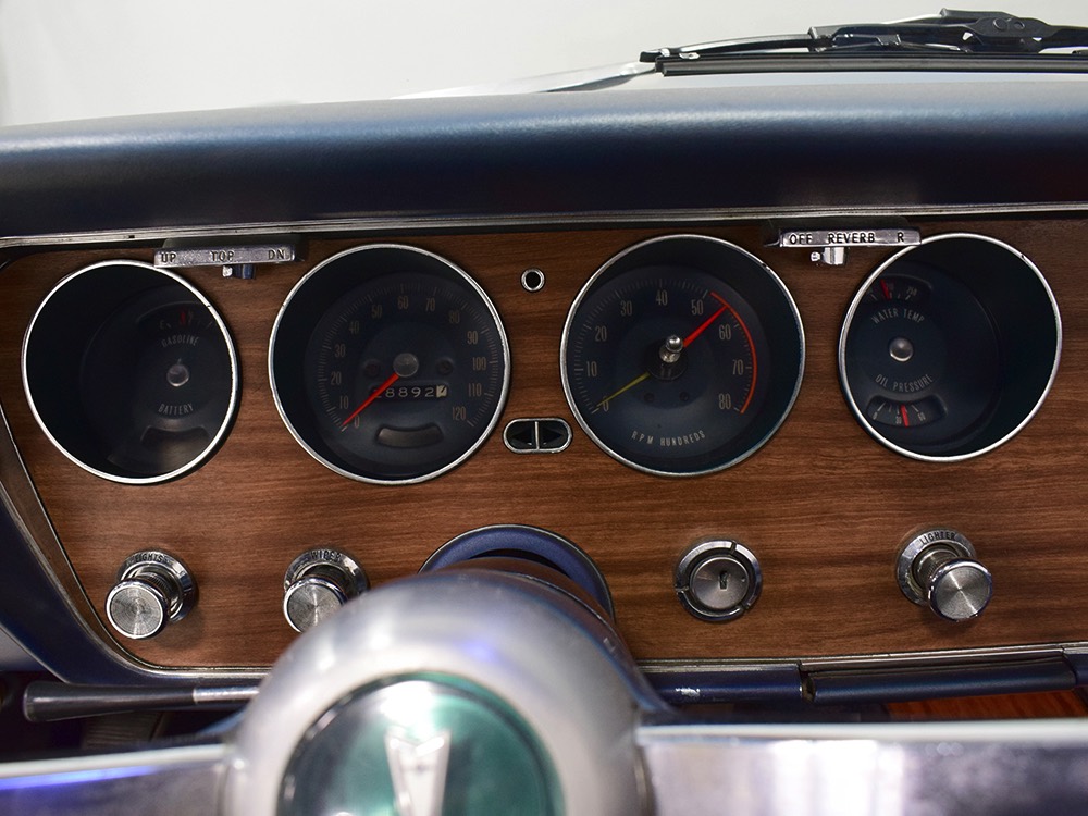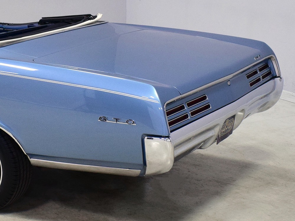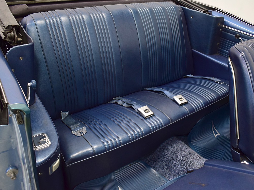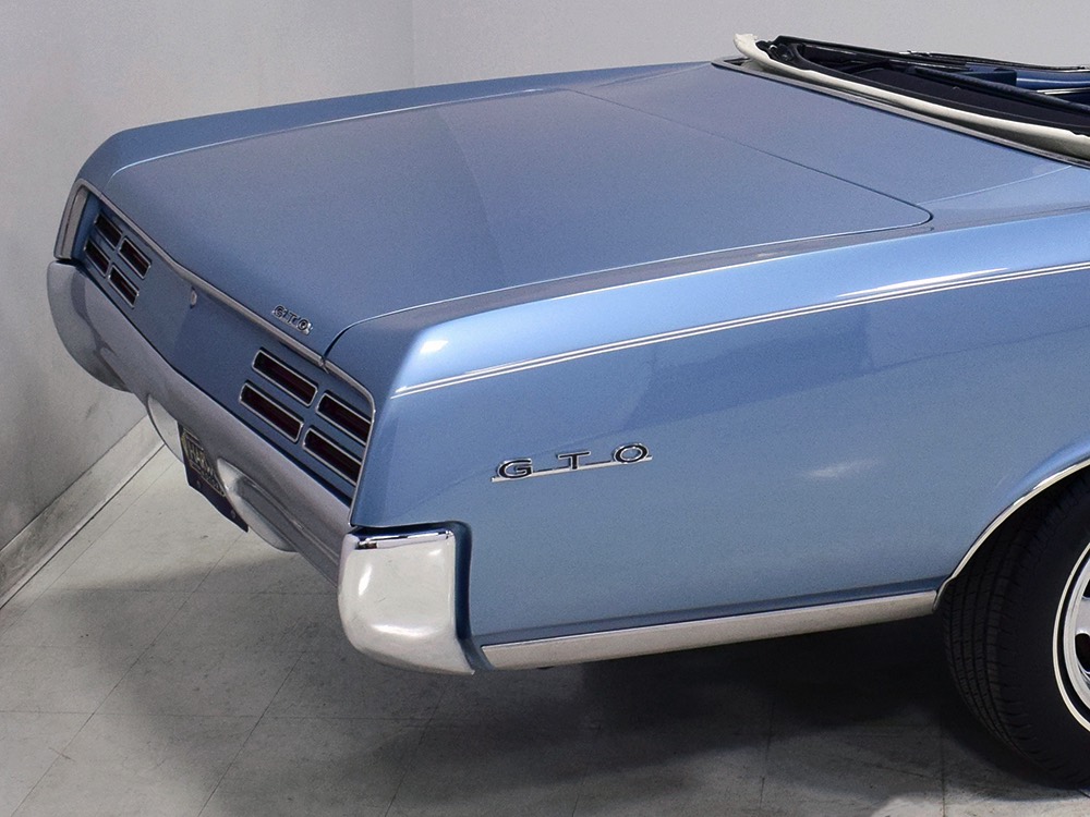 Aside from a high-quality repaint about 15 years ago in the original Montreux Blue, this 1967 GTO remains largely original throughout. For many enthusiasts, original cars hold a certain appeal—no they’re not a shiny as a fresh frame-off restoration but they often drive better and this GTO is no exception. It’s tight, smooth, and competent-feeling on the road, all qualities that are difficult to restore back into a car after it’s been fully disassembled. It has always been treated as an item of value, so it’s unlikely that it was anyone’s daily driver and seems to have been reserved for fair-weather fun. That explains the immaculate sheetmetal, both on top and underneath, and the car is wearing its original quarters, floors, and trunk pan, all evidence that the car has never suffered from rust or rot. The icy Montreux Blue finish is sophisticated and elegant instead of in-your-face aggressive, and that’s where Pontiac really shines—they built performance cars for grown-ups. There was plenty of time and effort invested in the repaint, which still shows extremely well and has a great shine, no ripples or waves, decent panel alignment, and a recent buff that really makes it glow. A white pinstripe was added, as original, and it really highlights the curving quarter panels that are arguably the ‘67’s best feature. All the original emblems are still in place, including the ‘6.5 litre’ chevrons on the rocker panels and GTO block letters fore, aft, and on both quarters. Nobody’s going to mistake this for anything else. It also features nice original chrome—more evidence that this car never suffered through winter weather—and the stainless has polished up nicely to give it an all-of-a-piece look. It’s an extremely handsome car.
