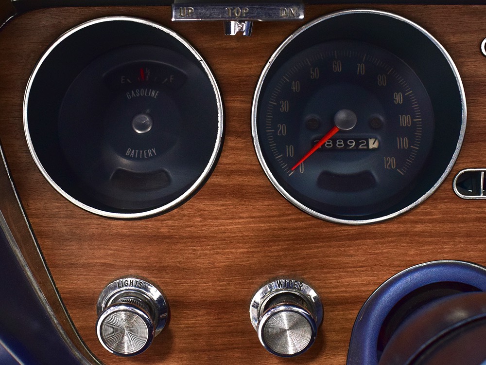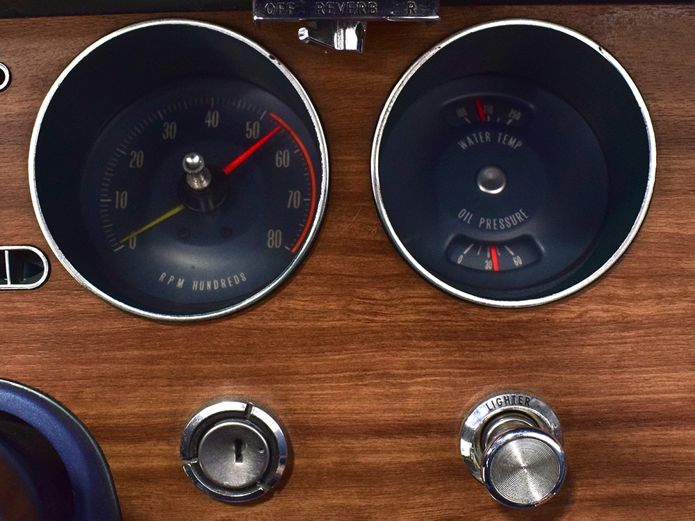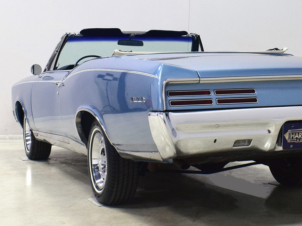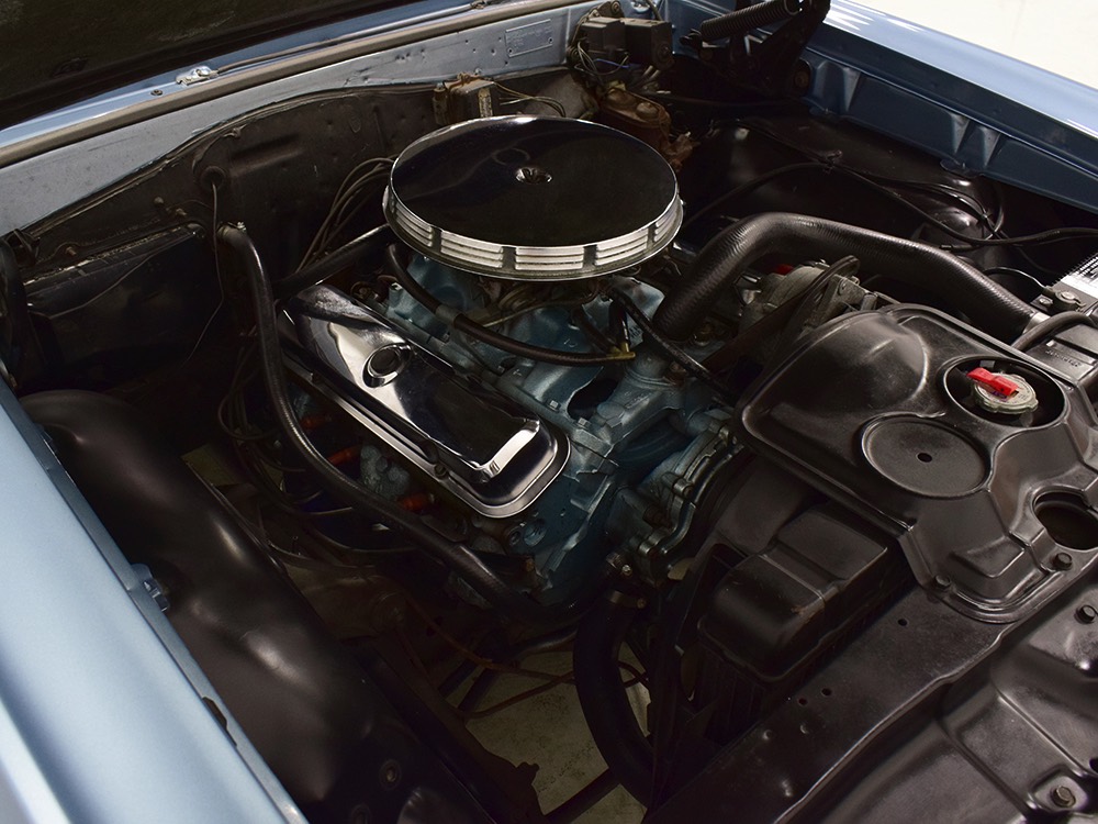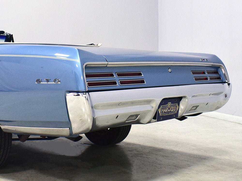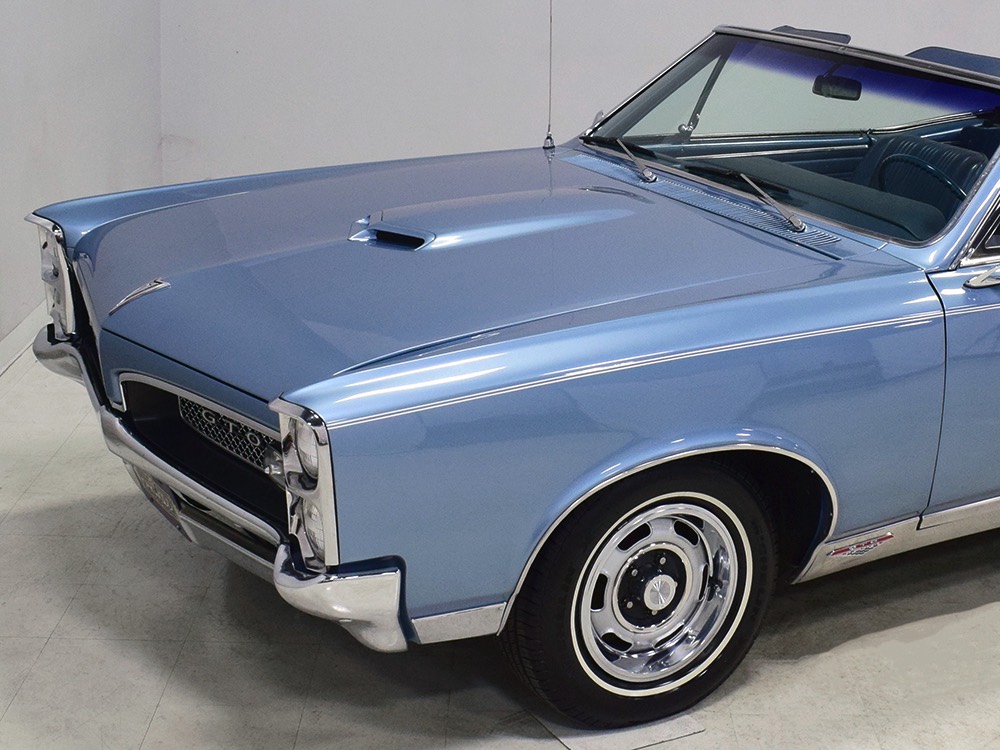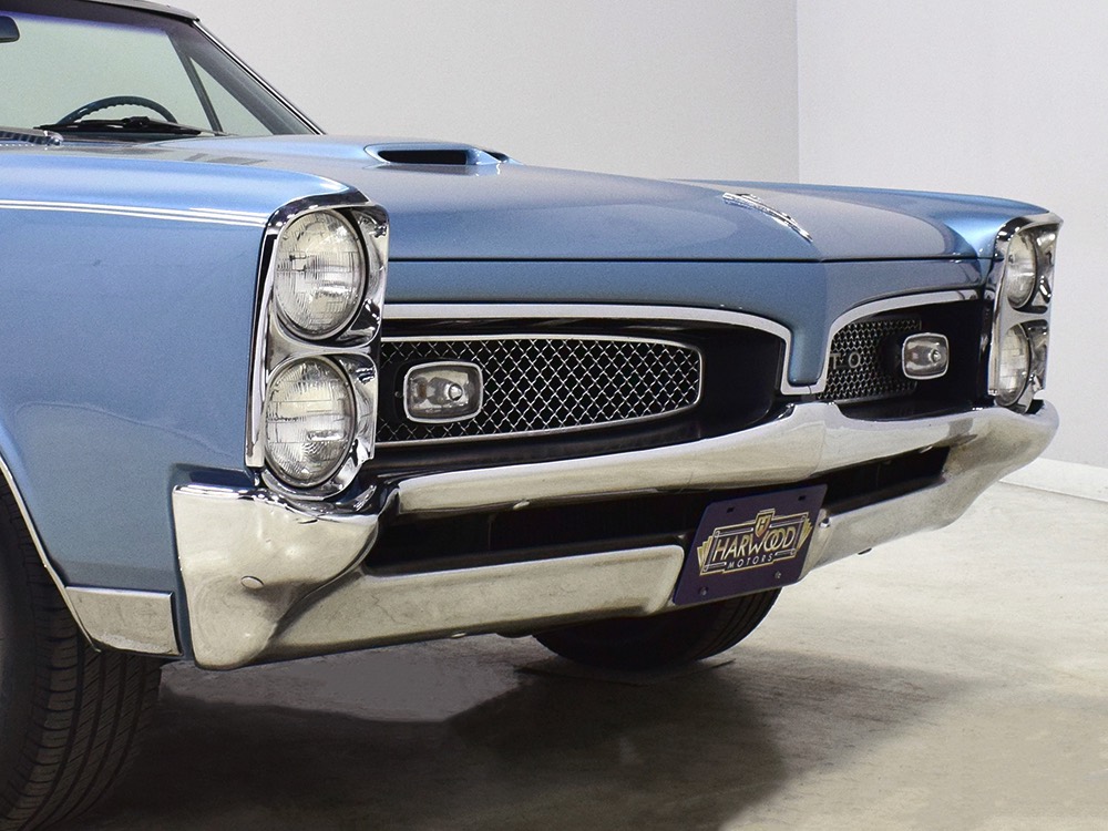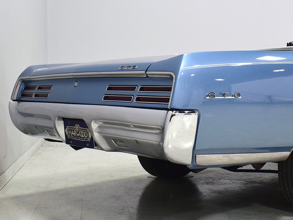 Aside from a high-quality repaint about 15 years ago in the original Montreux Blue, this 1967 GTO remains largely original throughout. For many enthusiasts, original cars hold a certain appeal—no they’re not a shiny as a fresh frame-off restoration but they often drive better and this GTO is no exception. It’s tight, smooth, and competent-feeling on the road, all qualities that are difficult to restore back into a car after it’s been fully disassembled. It has always been treated as an item of value, so it’s unlikely that it was anyone’s daily driver and seems to have been reserved for fair-weather fun. That explains the immaculate sheetmetal, both on top and underneath, and the car is wearing its original quarters, floors, and trunk pan, all evidence that the car has never suffered from rust or rot. The icy Montreux Blue finish is sophisticated and elegant instead of in-your-face aggressive, and that’s where Pontiac really shines—they built performance cars for grown-ups. There was plenty of time and effort invested in the repaint, which still shows extremely well and has a great shine, no ripples or waves, decent panel alignment, and a recent buff that really makes it glow. A white pinstripe was added, as original, and it really highlights the curving quarter panels that are arguably the ‘67’s best feature. All the original emblems are still in place, including the ‘6.5 litre’ chevrons on the rocker panels and GTO block letters fore, aft, and on both quarters. Nobody’s going to mistake this for anything else. It also features nice original chrome—more evidence that this car never suffered through winter weather—and the stainless has polished up nicely to give it an all-of-a-piece look. It’s an extremely handsome car.