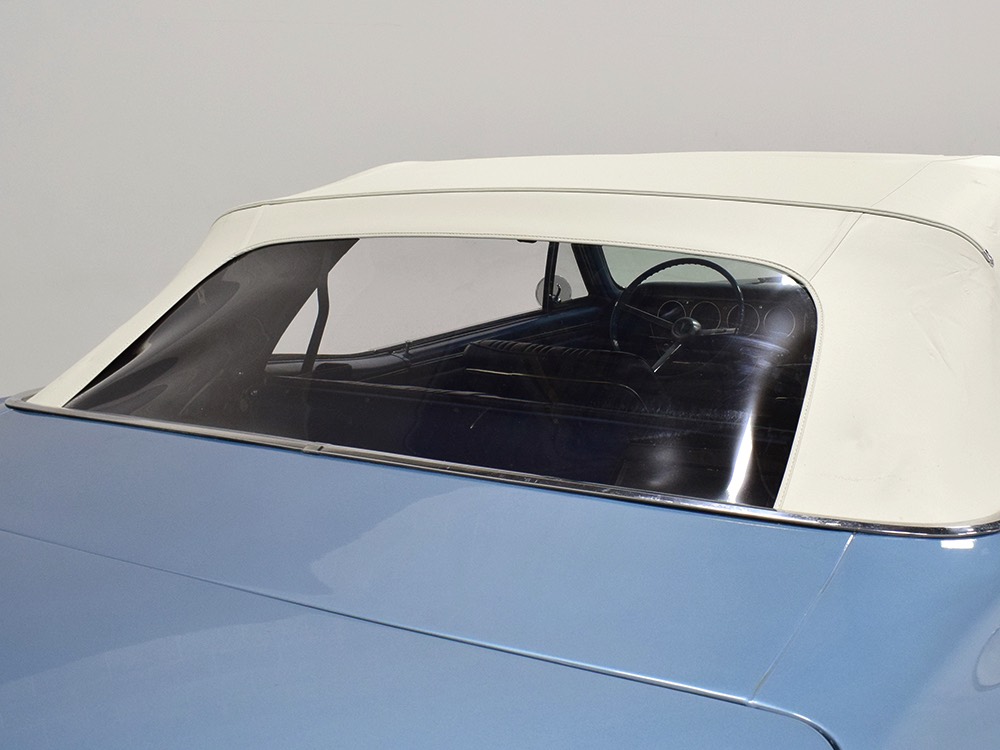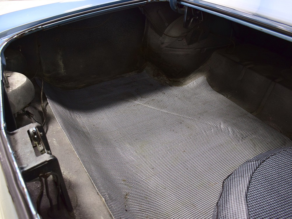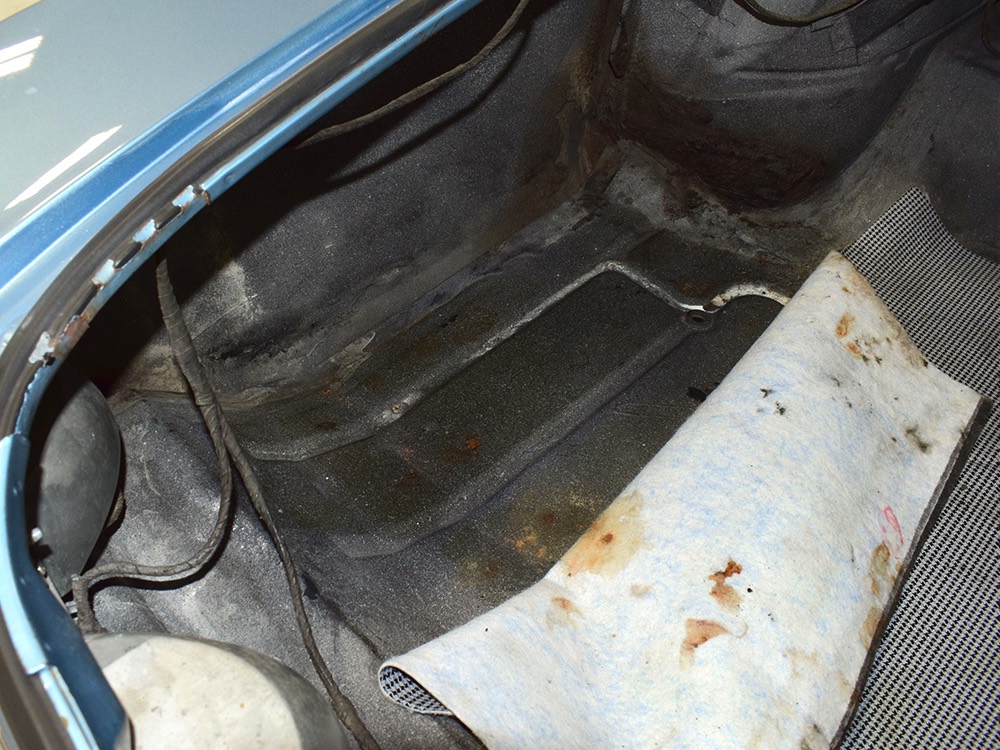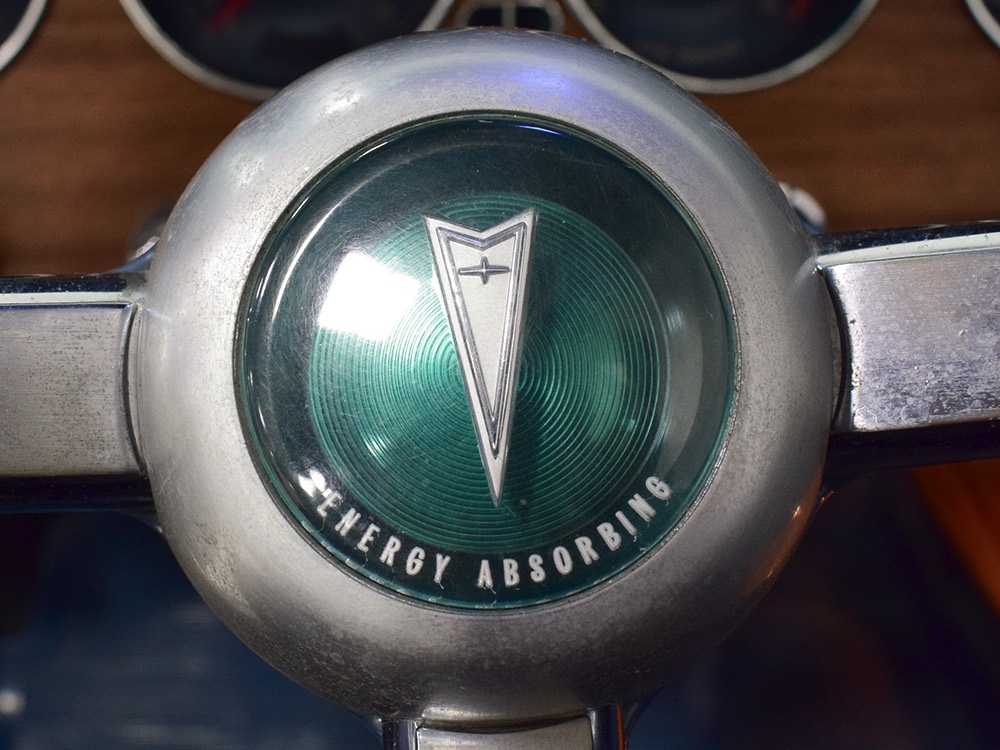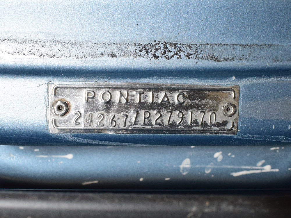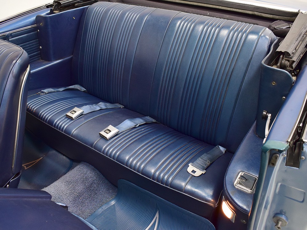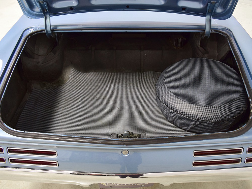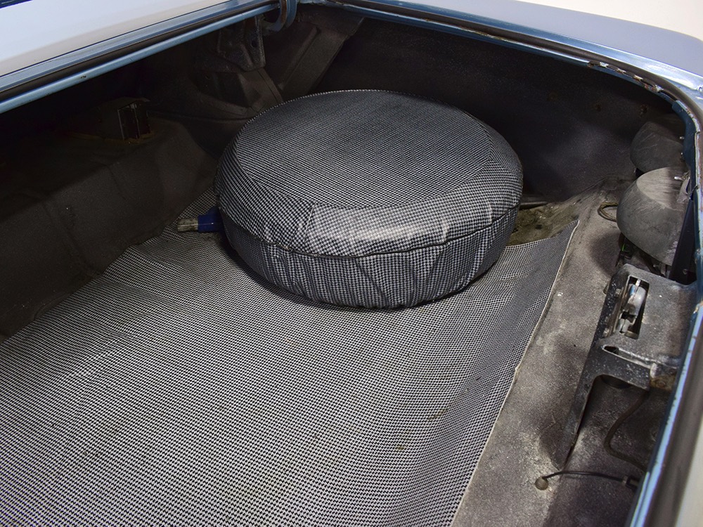 To get a good idea of just how clean this car is, please take the time to examine the all-original interior. Seat covers, door panels, the dash pad, and probably even the carpets are all 1967-issue and in fantastic condition. The lack of fading and cracking suggests the car has always been stored out of the sun and it is outfitted with a number of nice options, including a tilt steering column, complete gauges, and a center console with the traditional “His-N-Hers” shifter for the TH400 3-speed automatic underneath. There are, of course, signs of age and use but it would be a crime to consider restoring this interior; clean cars like this are none too easy to find and erasing originality in search of perfection is always a mistake. The steering wheel is a bit tarnished, the gauges are a little faded, and there is some soiling on the carpets, but you could erase much of that with an afternoon of deep cleaning. It all works, including the tach and AM/FM radio with reverb. The back seat looks hardly used and it comes with a set of color-matched rubber floor mats that are probably reproductions simply because they’re just too nice to be 54 years old. Overhead there’s a newer white power convertible top with a crystal clear rear window and the car comes with the original convertible top boot (not installed for photos simply because the clips Pontiac used often damage the paint). The trunk is outfitted with what appears to be the original mat and a reproduction tire cover on a matching spare that’s never been down.