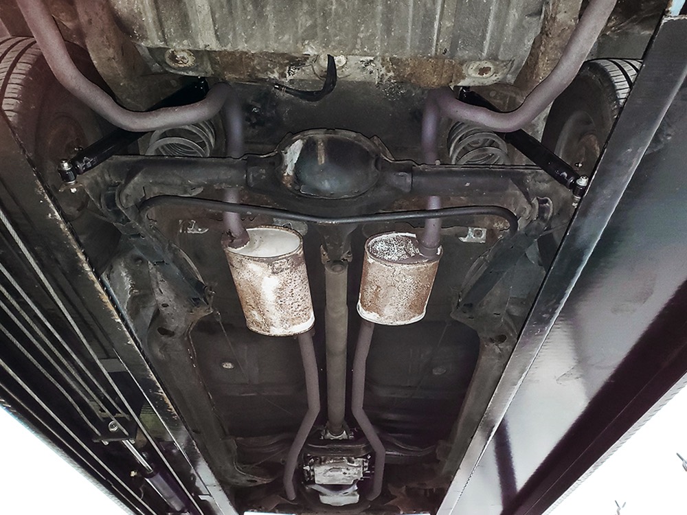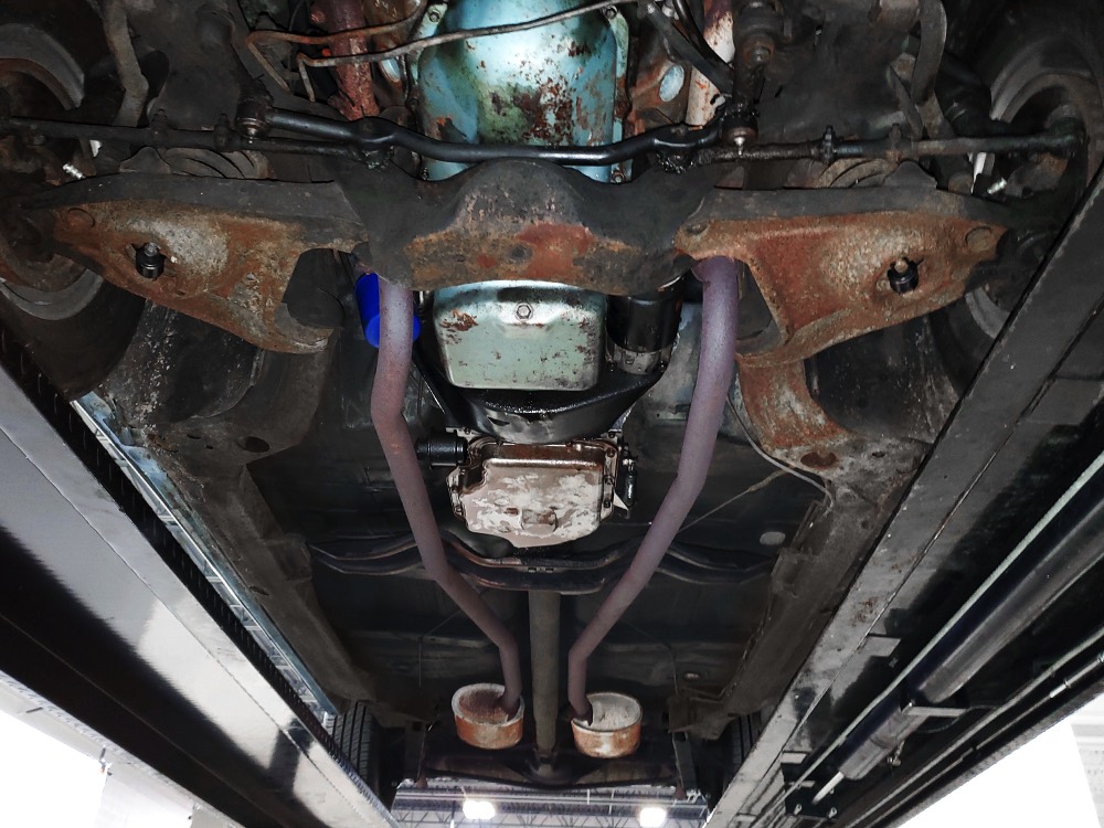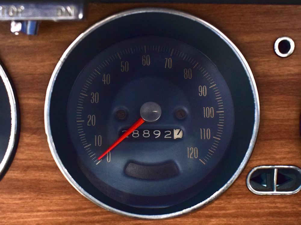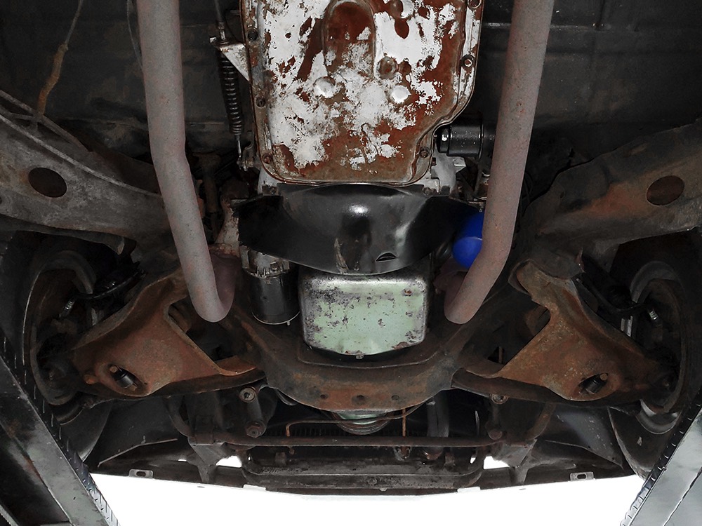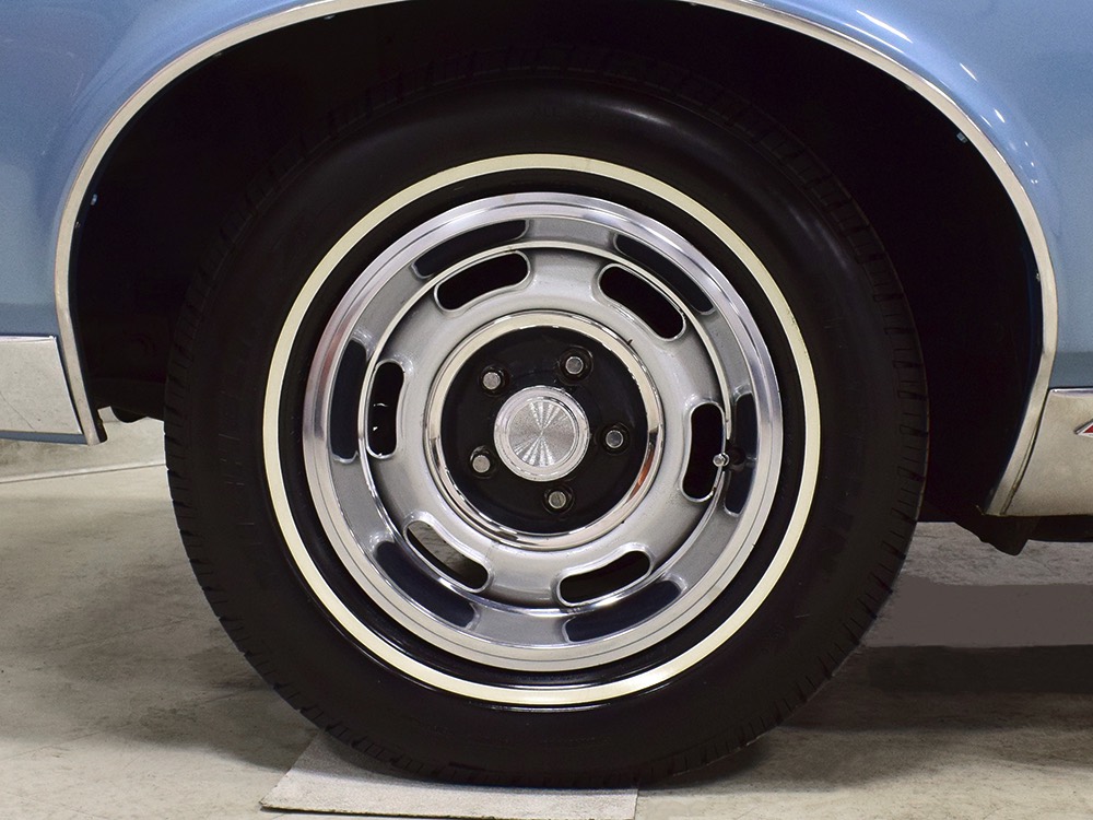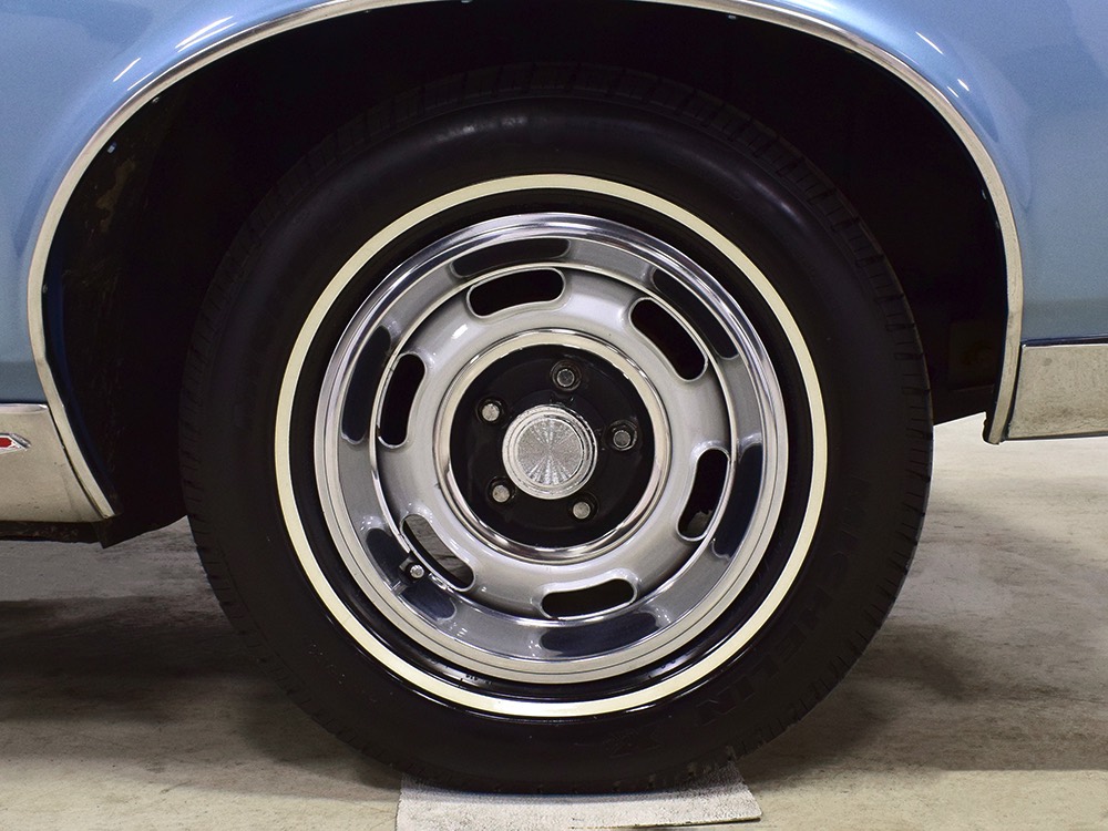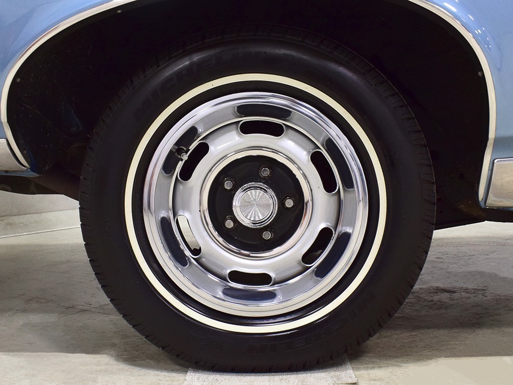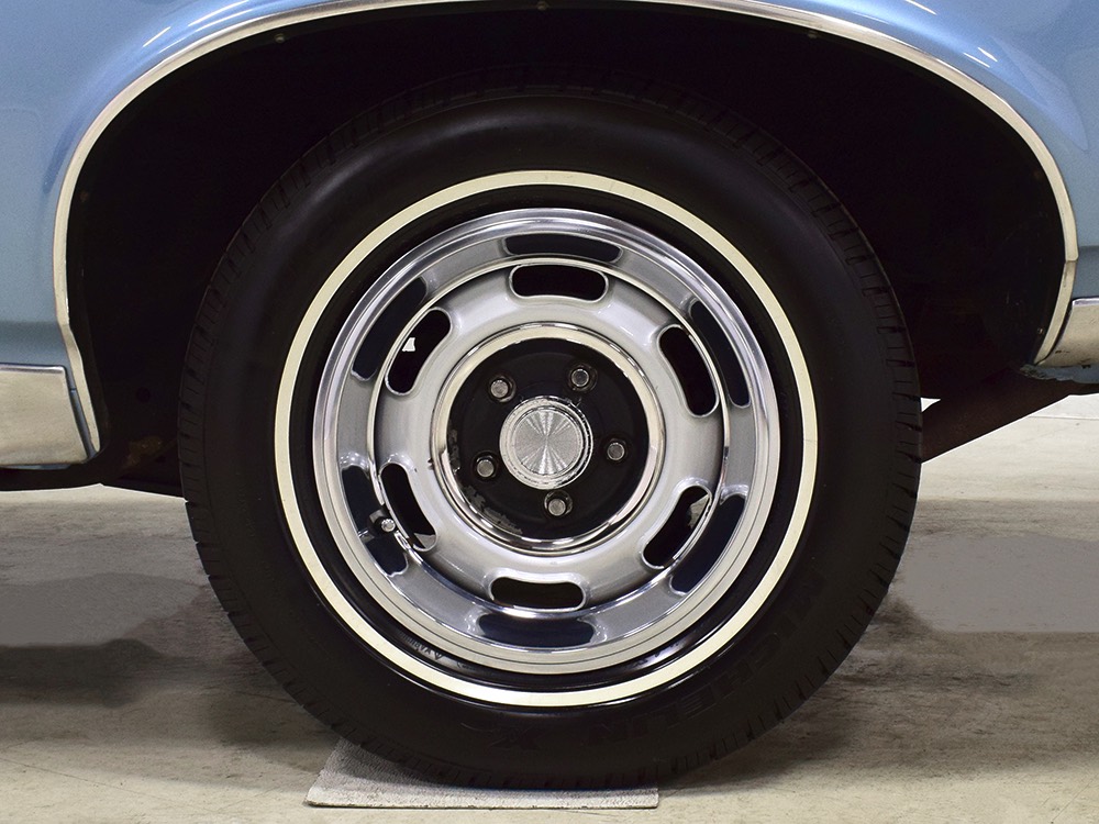 Underneath, it’s original and a little grimy, but that’s how cars get when you use them as cars. There are plenty of guys who will wish that it were shiny and perfect, but we’ve found that cars with shiny, perfect undercarriages don’t get driven very often and that’s a shame. This one shows no major demerits and please take some extra time to examine those original floors and rockers, which are in excellent condition. Yes, there’s surface scale on the front suspension A-arms and some parts of the frame, more likely due to thin or non-existent paint from the factory than neglect or exposure. The TH400 3-speed automatic transmission was new to the GTO in 1967, and it’s a BIG upgrade over the previous 2-speed PowerGlide unit. It snaps off crisp shifts and history suggests that the TH400 might just be the most durable automatic transmission ever built, so go ahead and have some fun. In back there are 3.36 gears on a limited slip differential that make it feel lively without being too busy on the highway, making this Goat an excellent all-around cruiser that’s fun without being demanding. Ride quality is more luxury than sport, and it features new shocks that certainly help. An older dual exhaust system has the right soundtrack, deep without being obnoxious, and it sits on factory Rally I wheels with 215/70/14 Michelin whitewall radials at all four corners.