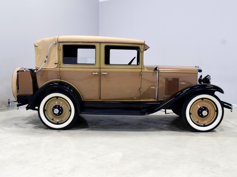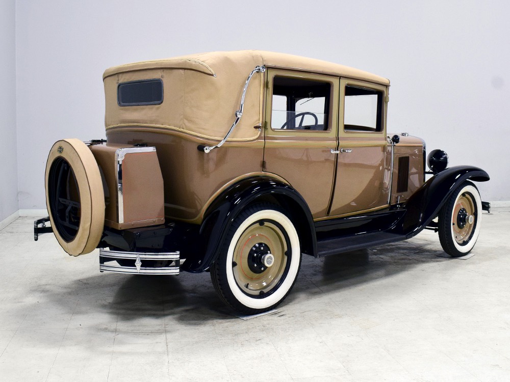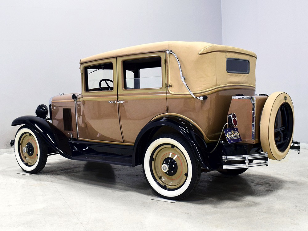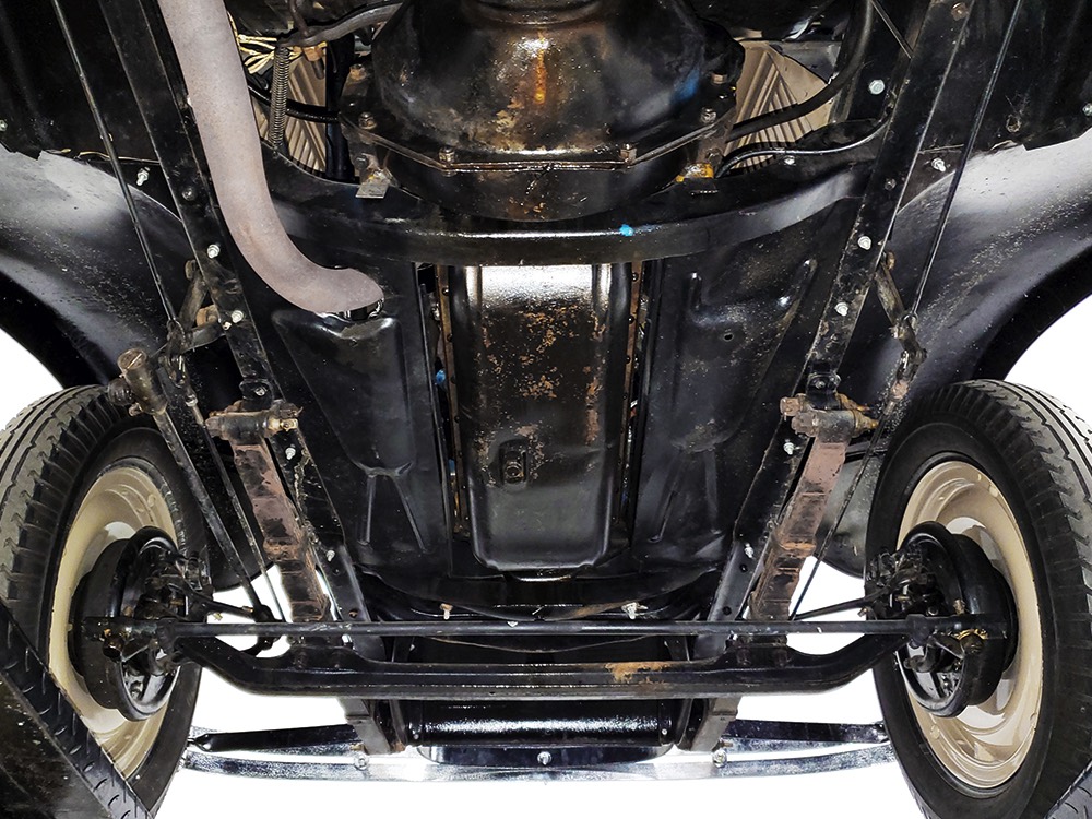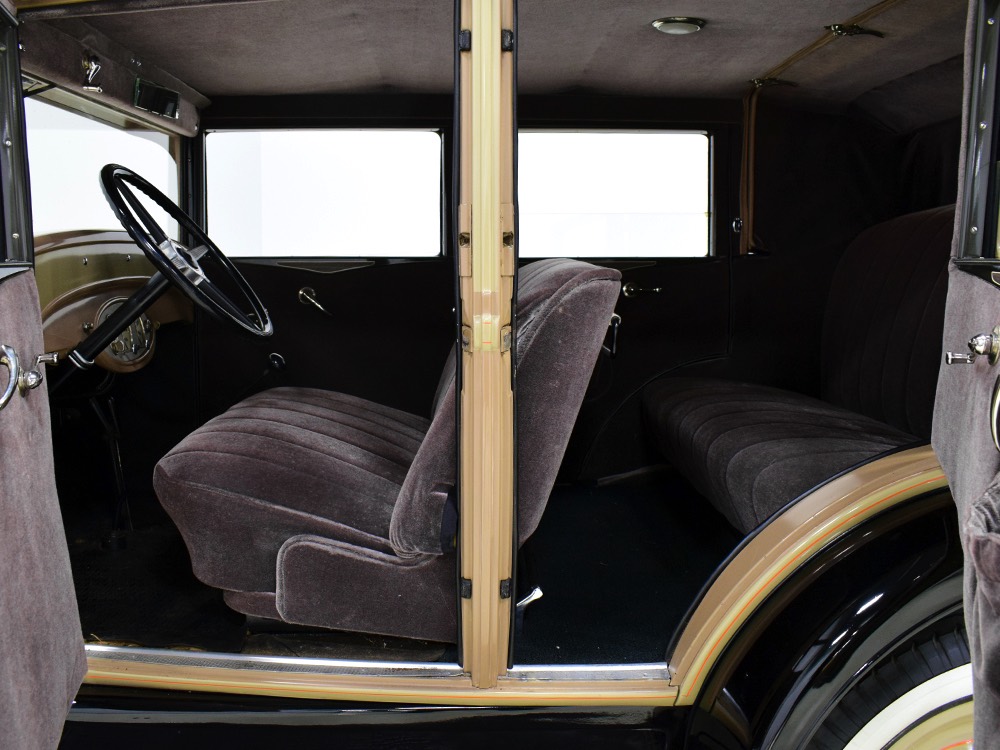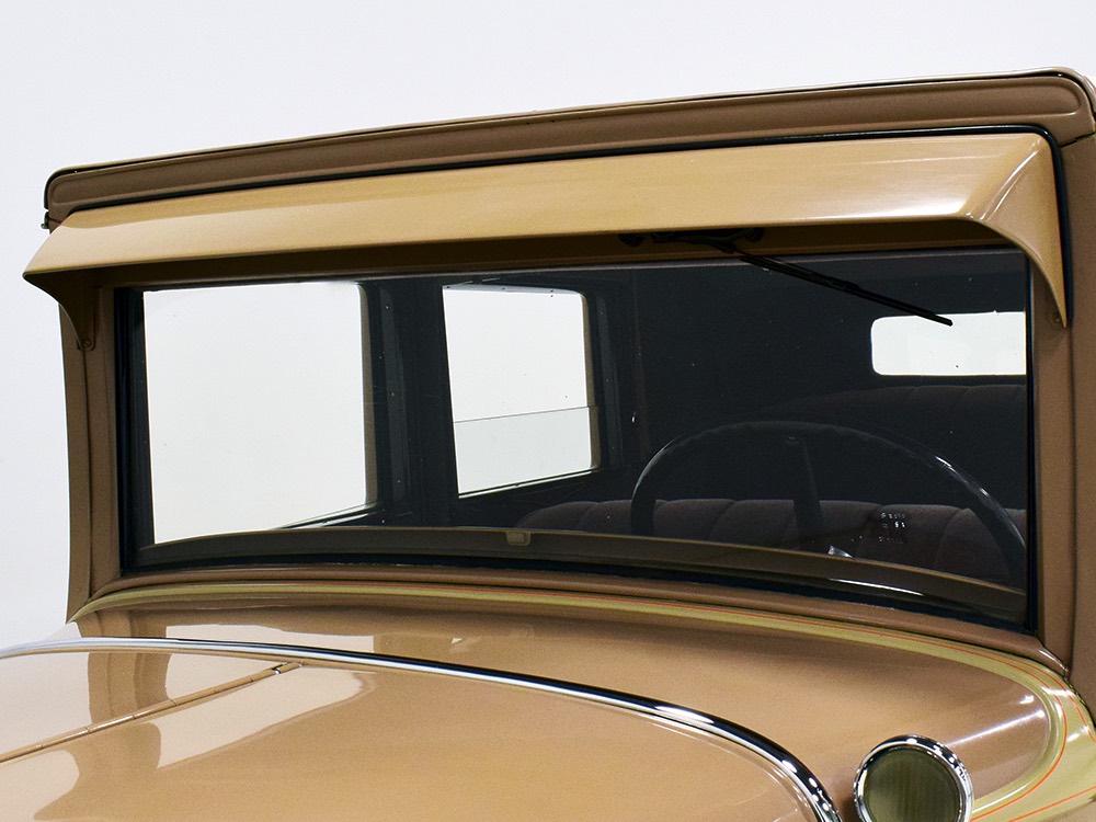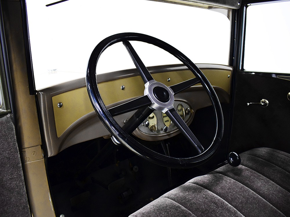 Although our cameras have a hard time capturing the color properly (the lights make it look kind of purple), the interior is correct brown mohair front and back. The dashboard is the same simple setup used in other Chevrolets, with all the gauges and controls in a center gauge panel and they all seem to work correctly. The front seat features a rubber mat on top of a thick layer of insulation to help control noise and heat, while the rear seat is fully carpeted. The controls are standard, with a 3-speed manual transmission on the floor, although synchromesh was limited to Cadillacs in 1929 so brush up on your double-clutching. A full headliner makes it feel like a standard sedan inside, but you’ll quickly spot the latches holding the rear half of the top above the back seat, and it folds easily to add an open-air experience. There’s also a crank-open windshield, all of which make this Chevy a pretty nice place to spend some time.
