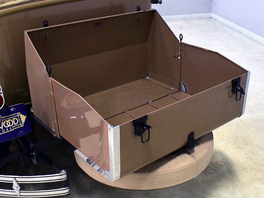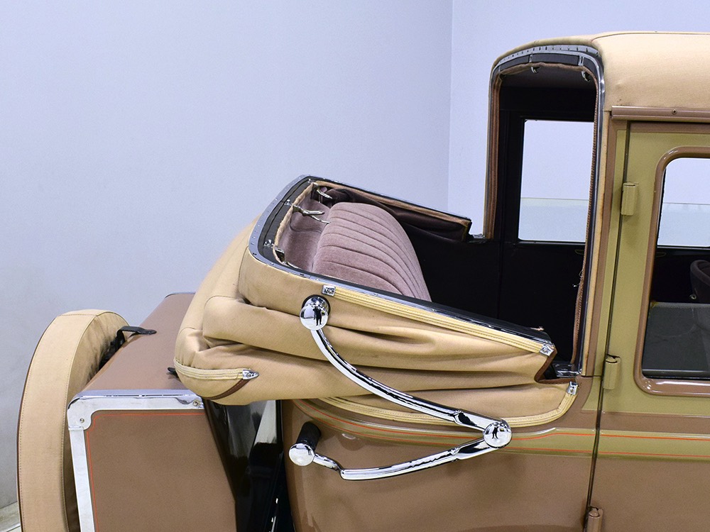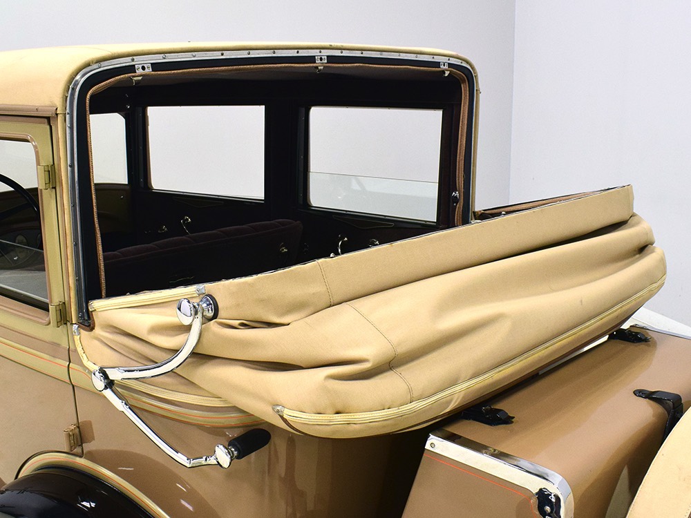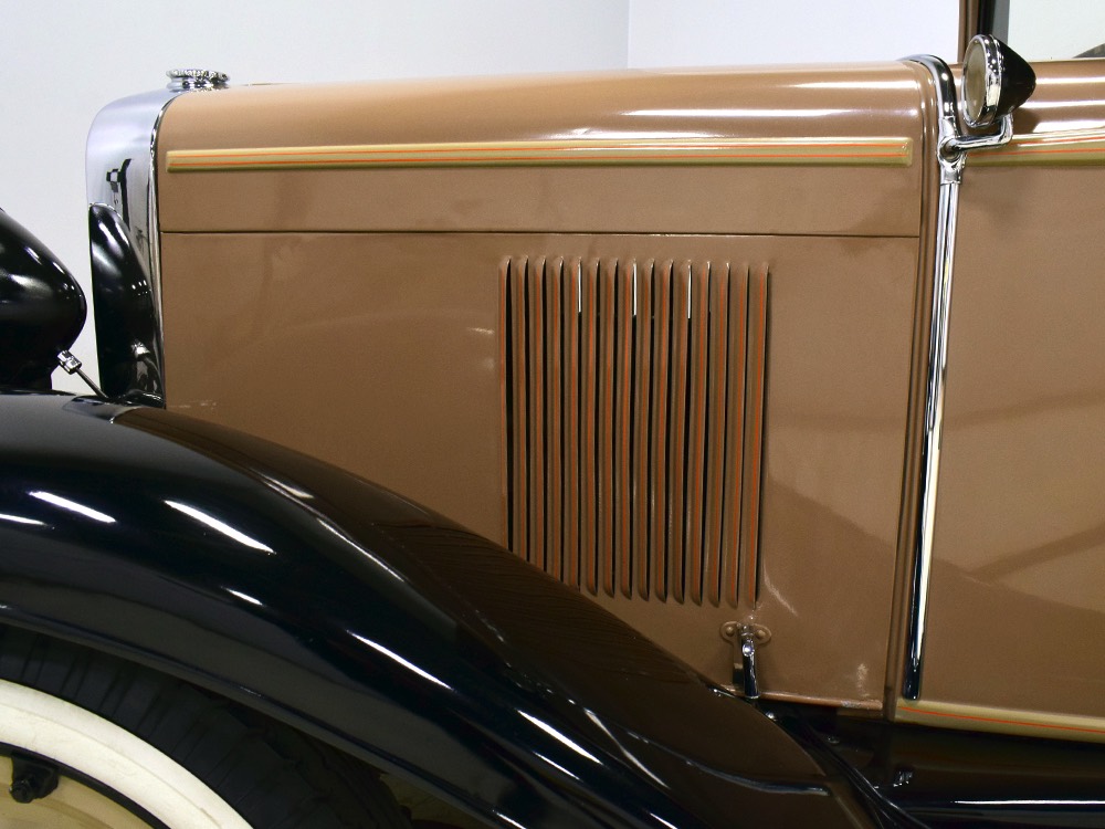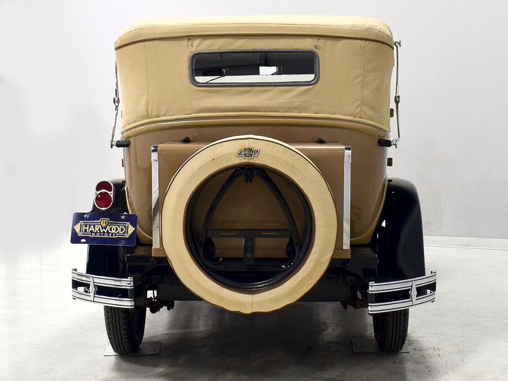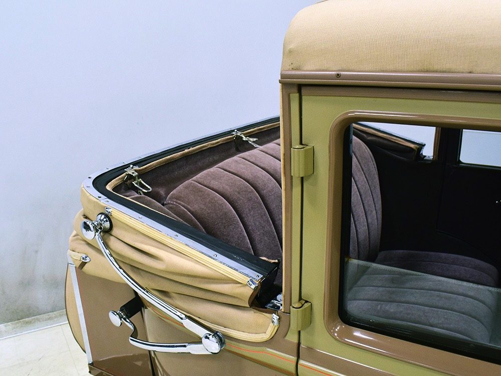 Wearing an older restoration, this Landau sedan remains in excellent condition throughout. For the past several years it has worked weekends attending weddings and posing for photos with happy couples, which means it’s in top mechanical health and looks fantastic. Landau sedans only came in one color combination, Crockett Brown with Mistino Gray moldings and Omaha Orange pinstripes, and it adds to the Landau’s upscale look. At a glance, you’d never really notice the folding rear roof, and there’s plenty of familial resemblance to big brother Cadillac, including the shape of the grille, landau bars, and the visor over the windshield. It remains in excellent condition with a nice shine to the paint, correct pinstripe patterns, and bright chrome that adds just the right upscale accent. There are a few minor signs of age and use, but nothing that detracts from the overall presentation. It carries an accessory trunk with rear-mounted spare, and the trunk folds out to create a fairly substantial cargo bay, making this Chevy a great choice for pre-war touring.