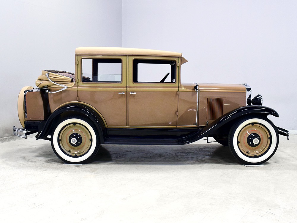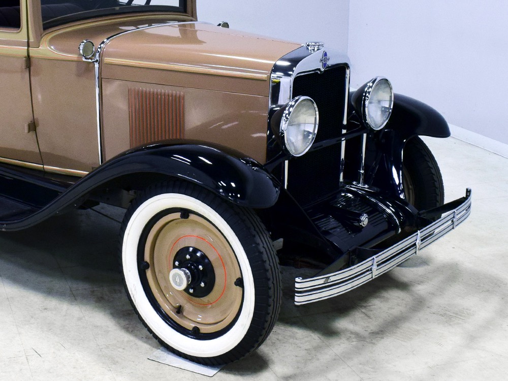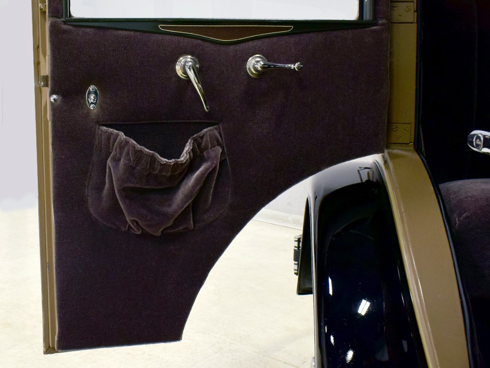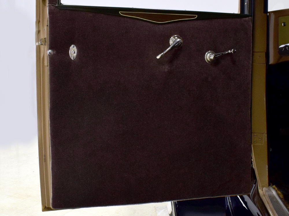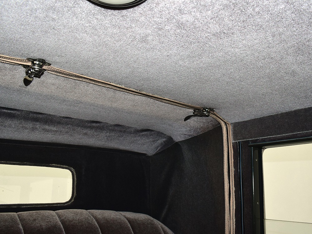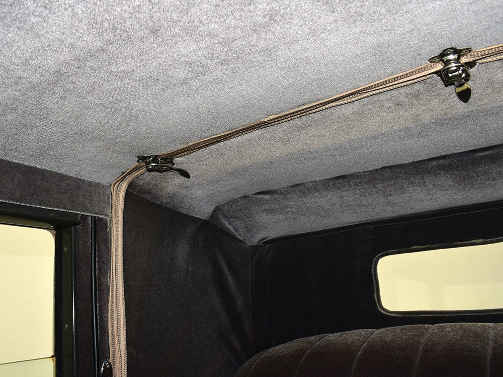 Wearing an older restoration, this Landau sedan remains in excellent condition throughout. For the past several years it has worked weekends attending weddings and posing for photos with happy couples, which means it’s in top mechanical health and looks fantastic. Landau sedans only came in one color combination, Crockett Brown with Mistino Gray moldings and Omaha Orange pinstripes, and it adds to the Landau’s upscale look. At a glance, you’d never really notice the folding rear roof, and there’s plenty of familial resemblance to big brother Cadillac, including the shape of the grille, landau bars, and the visor over the windshield. It remains in excellent condition with a nice shine to the paint, correct pinstripe patterns, and bright chrome that adds just the right upscale accent. There are a few minor signs of age and use, but nothing that detracts from the overall presentation. It carries an accessory trunk with rear-mounted spare, and the trunk folds out to create a fairly substantial cargo bay, making this Chevy a great choice for pre-war touring.