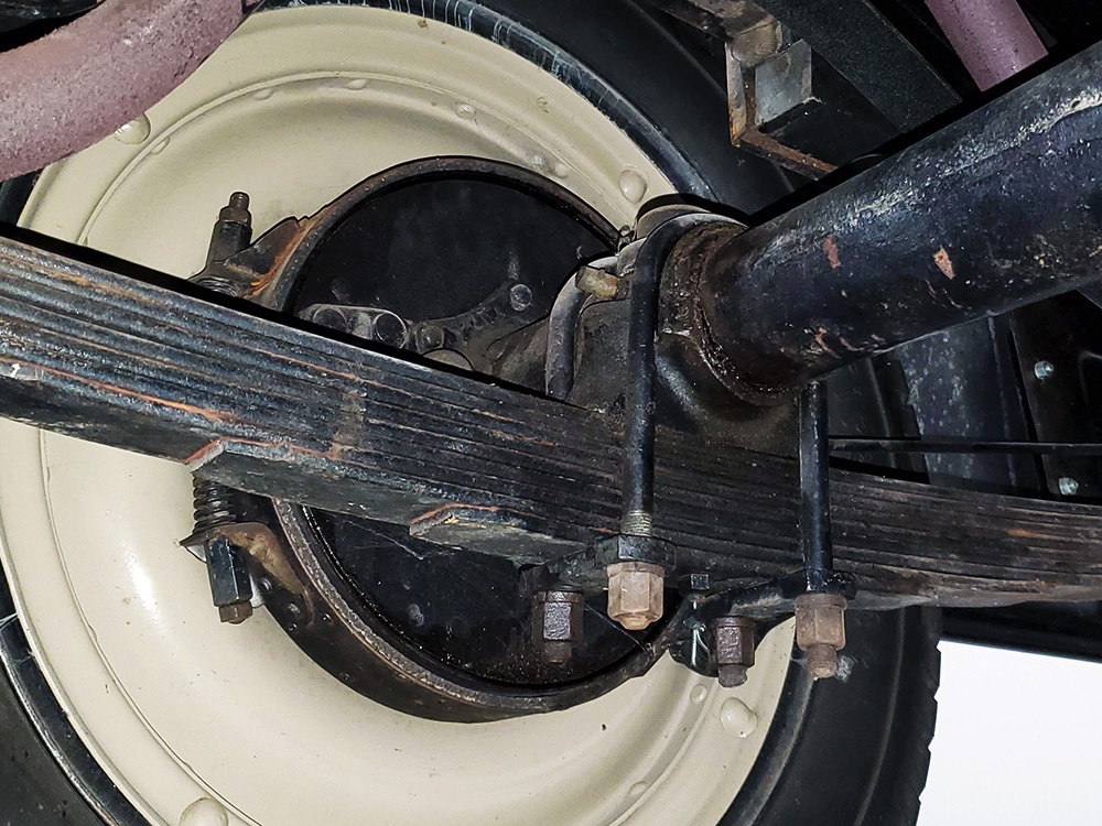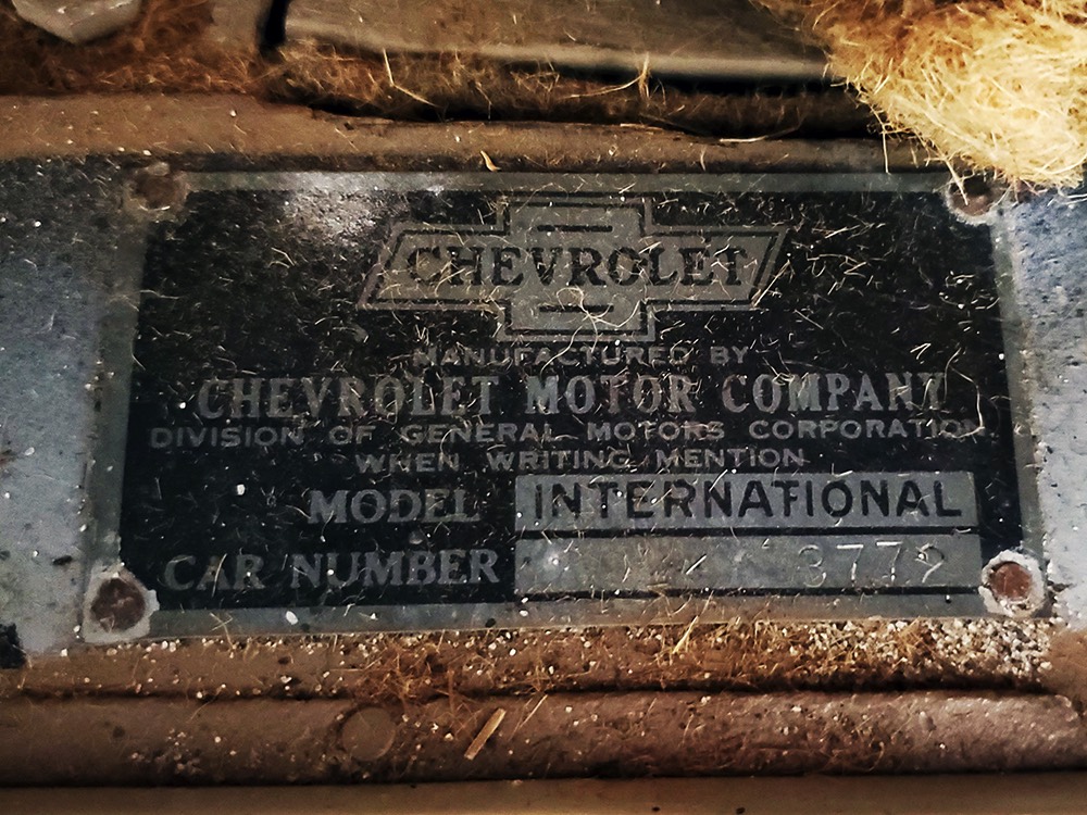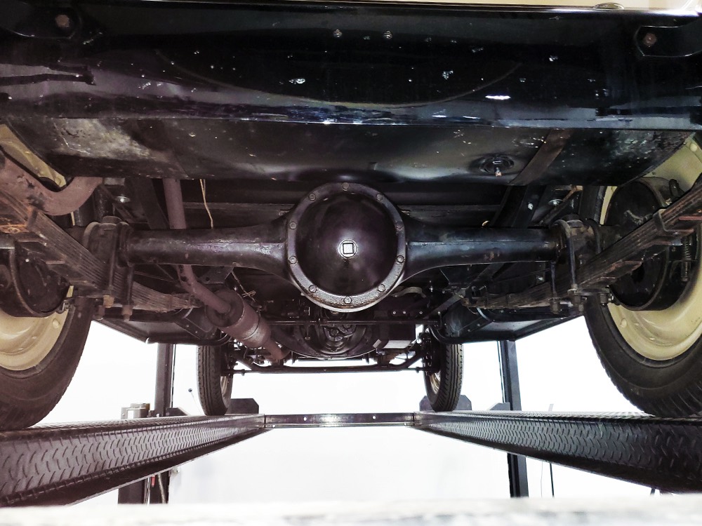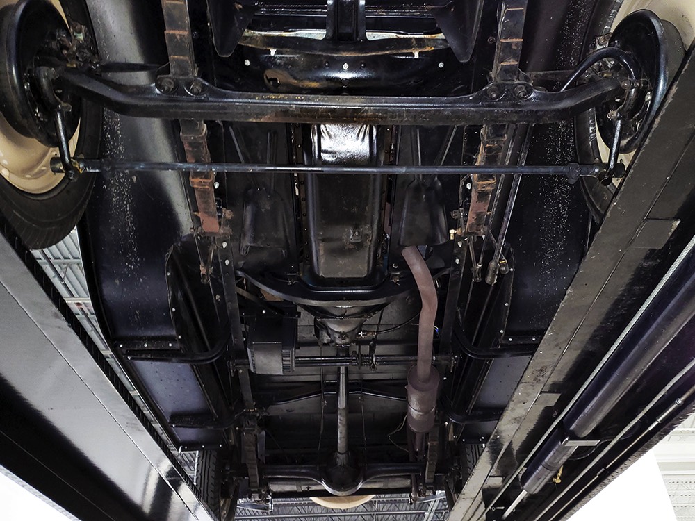 The aforementioned 3-speed manual transmission shifts cleanly and clutch action is light, and 3.82 gears out back are a nice combination of acceleration and cruising, making this Chevy happy at about 45 MPH. 4-wheel brakes are competent and live axles with leaf springs provide reasonable ride quality. Chevys used torque tube drive for many years and the floors are steel, not wood, and you can see they’re in excellent condition. An older exhaust system gives it an appropriate 6-cylinder grumble that’s pleasing both inside and outside the car. Disc wheels were standard equipment and carry 4.75/5.00-20 Firestone whitewalls of indeterminate age.