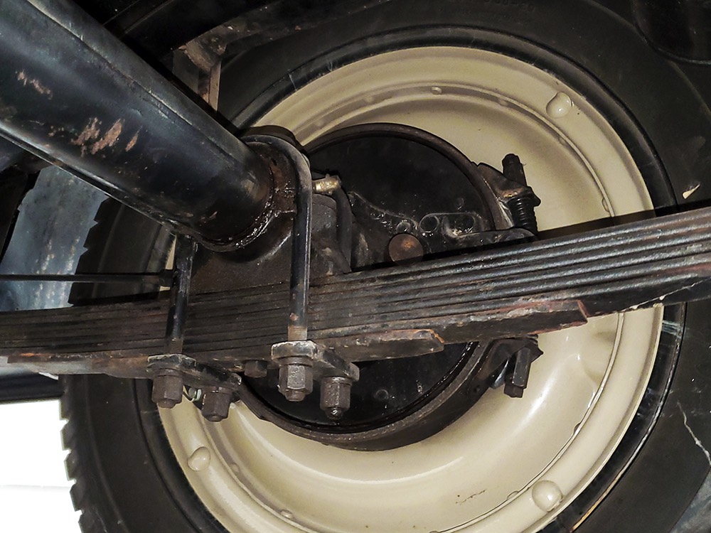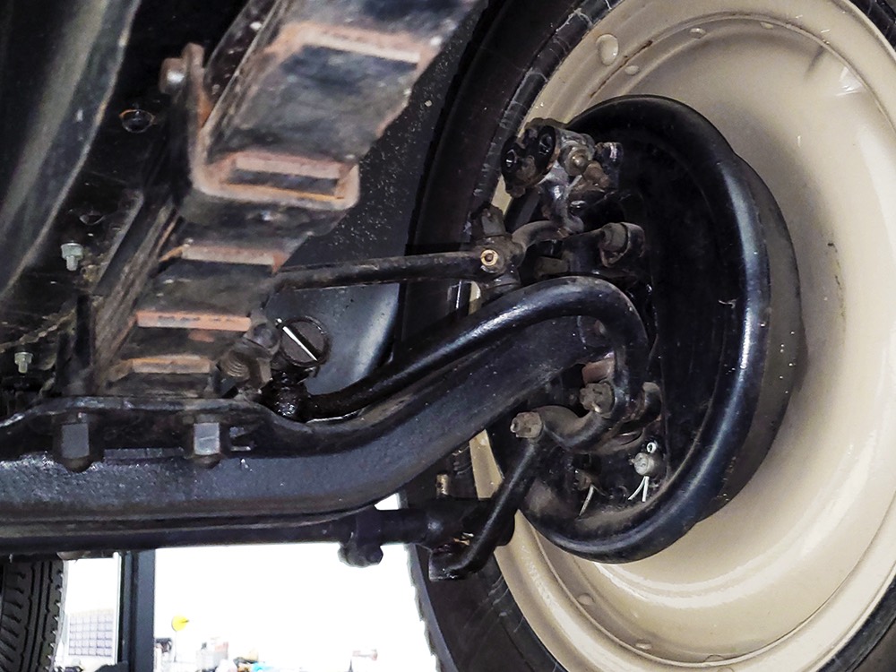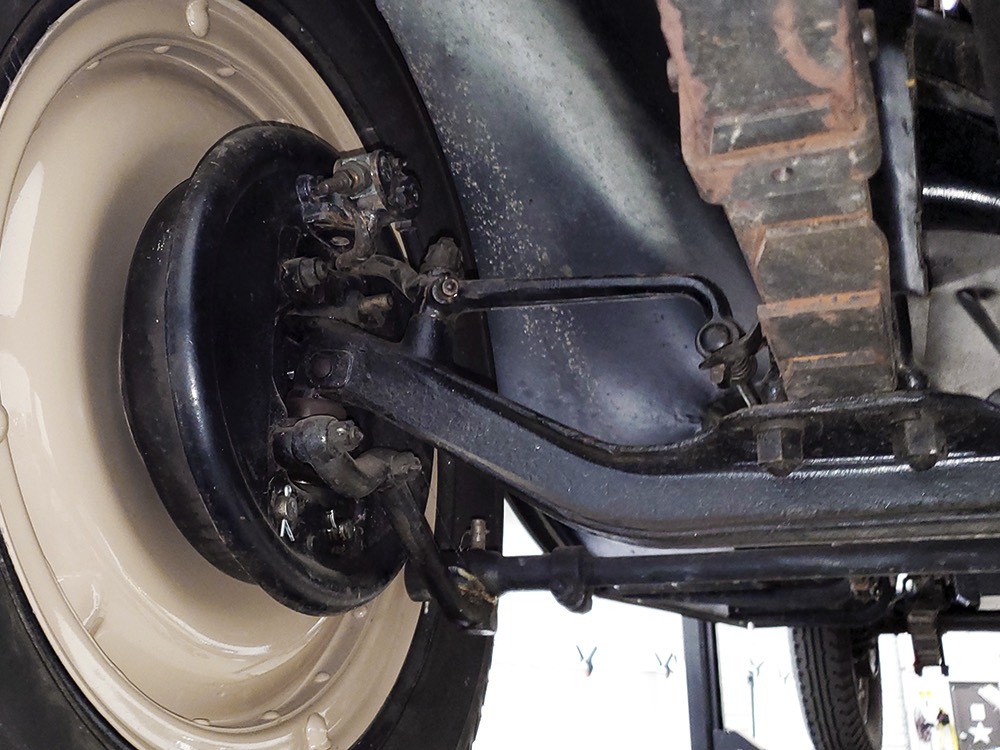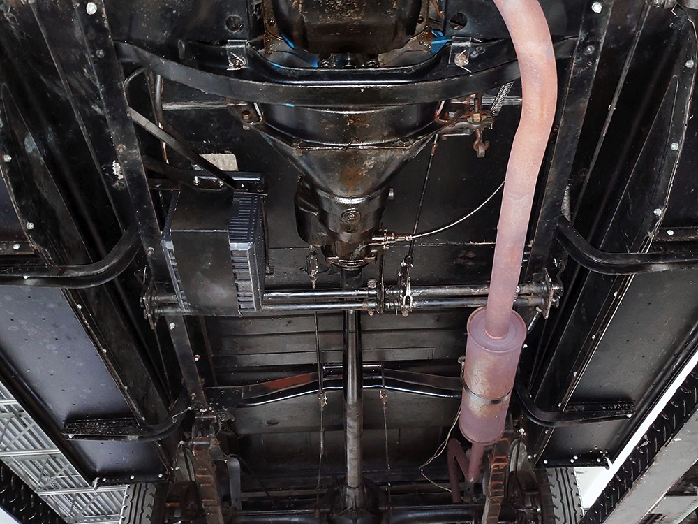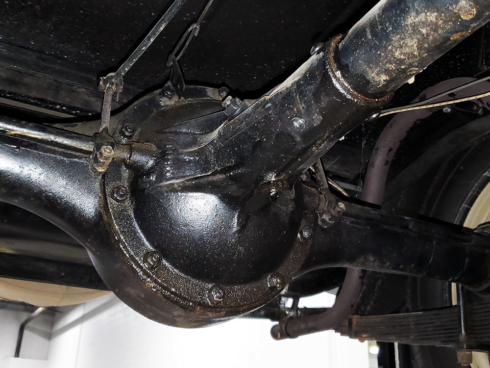 The aforementioned 3-speed manual transmission shifts cleanly and clutch action is light, and 3.82 gears out back are a nice combination of acceleration and cruising, making this Chevy happy at about 45 MPH. 4-wheel brakes are competent and live axles with leaf springs provide reasonable ride quality. Chevys used torque tube drive for many years and the floors are steel, not wood, and you can see they’re in excellent condition. An older exhaust system gives it an appropriate 6-cylinder grumble that’s pleasing both inside and outside the car. Disc wheels were standard equipment and carry 4.75/5.00-20 Firestone whitewalls of indeterminate age.