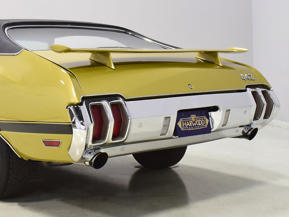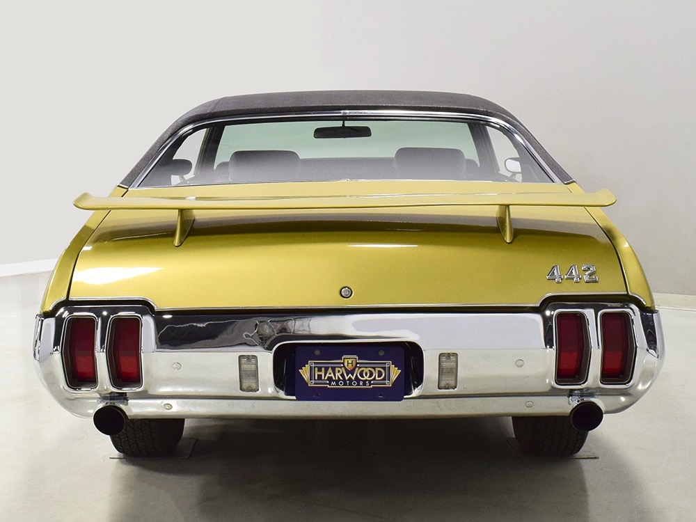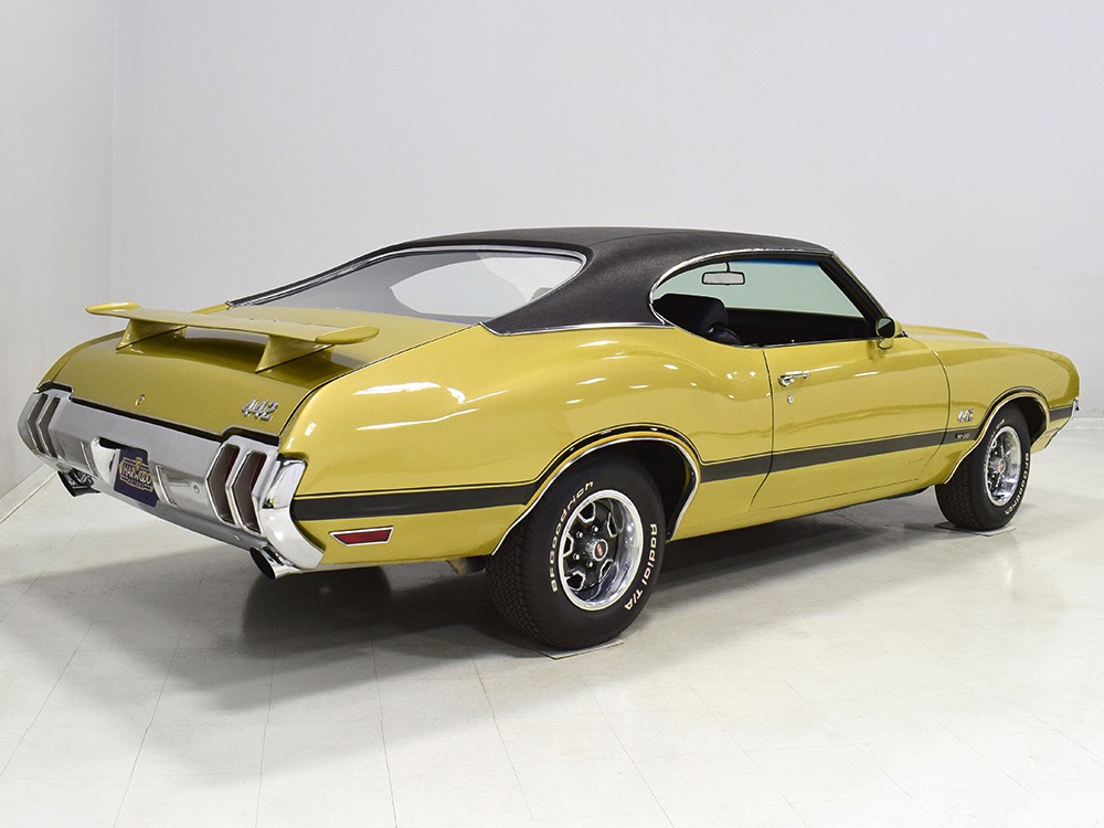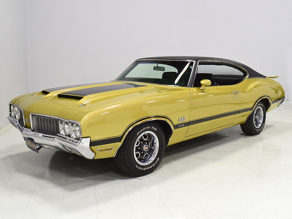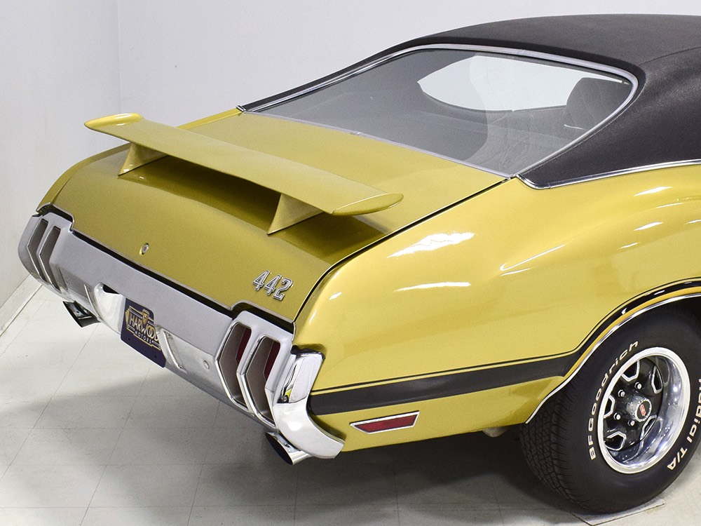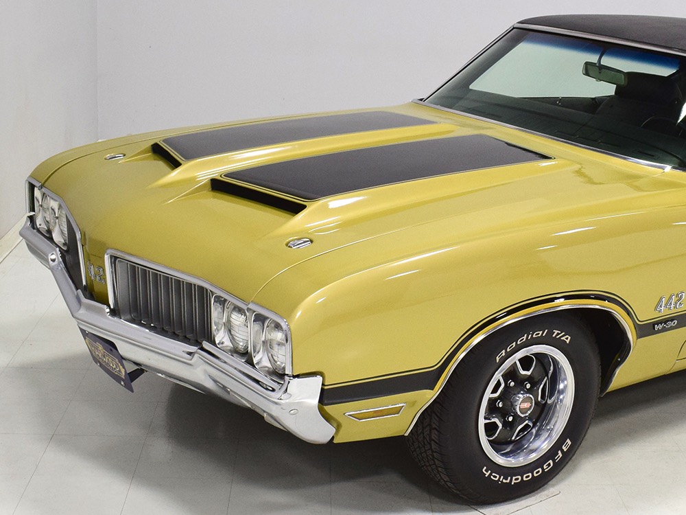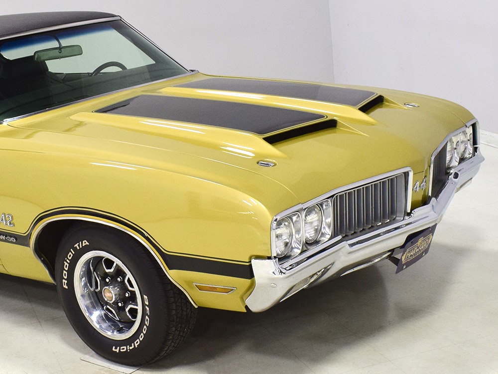 Real-deal 442 with a 4-speed! Matching numbers 455 cubic inch V8, correct fiberglass ram air hood, rear wing. Older frame-off restoration in very good condition. Runs and drives superbly, big torque, but still Oldsmobile smooth.