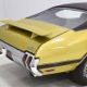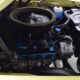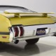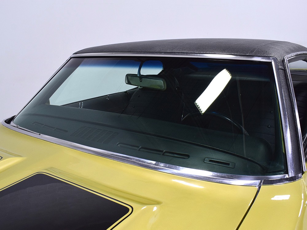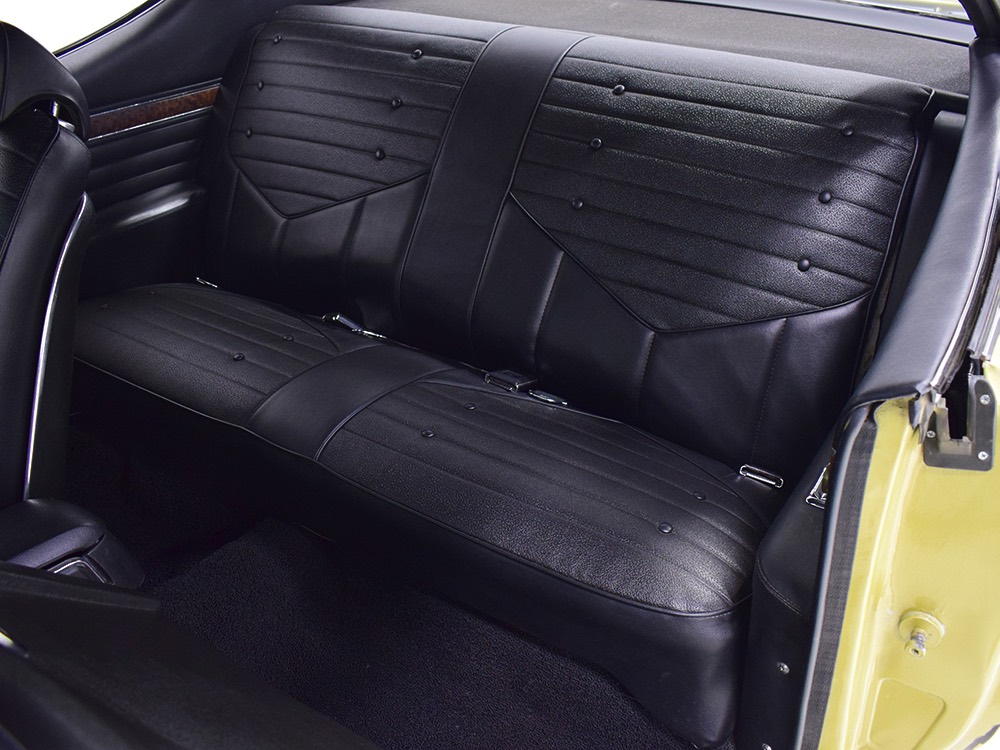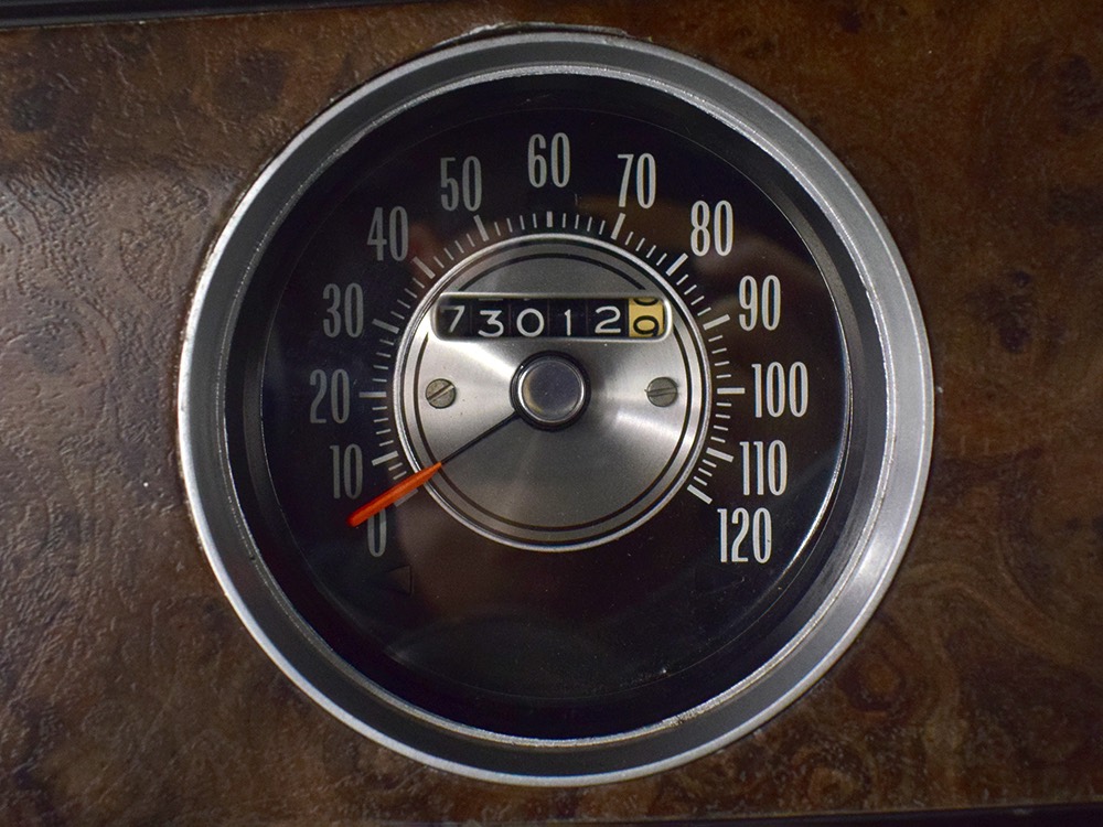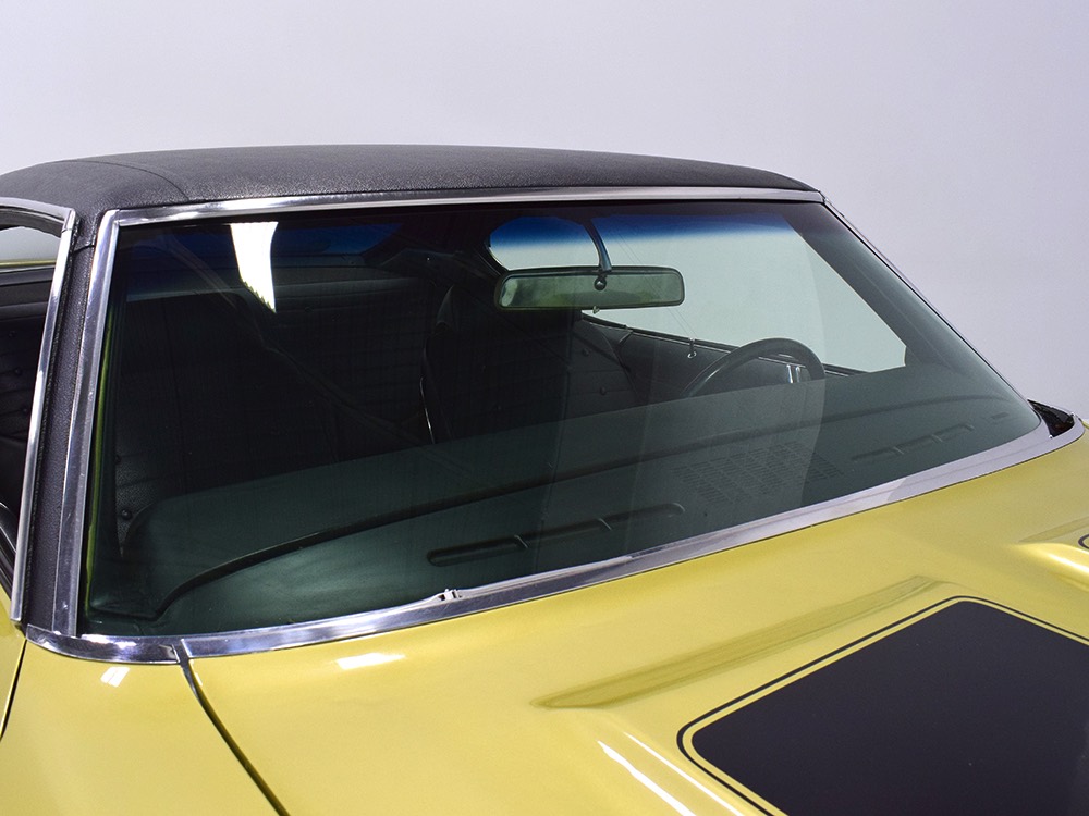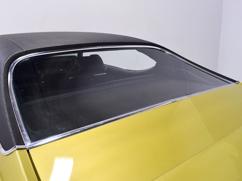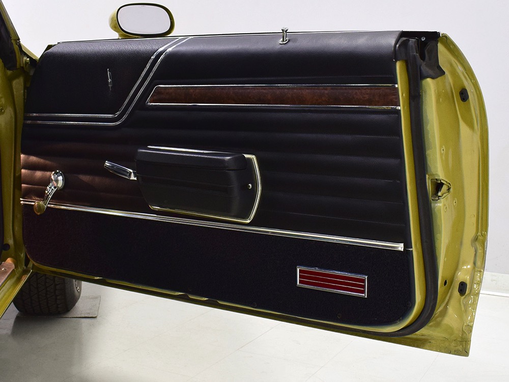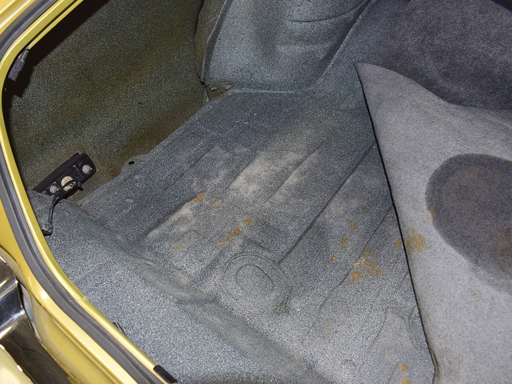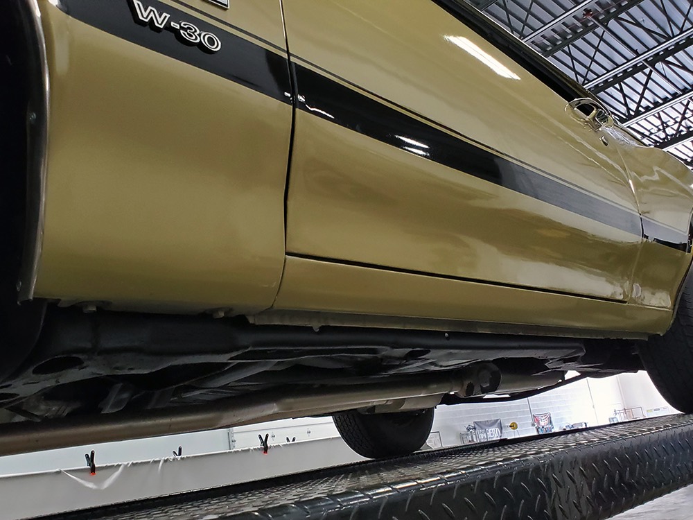 The black vinyl interior is very nicely trimmed and accurately replicates the textured vinyl used on the 442s. It’s an upscale look that contrasts nicely with the stripes and rear wing, suggesting that you got a little extra luxury with your Oldsmobile muscle. The burled walnut instrument panel adds to that effect, and the brushed stainless steel gauge faces certainly look upscale. A console with a 4-speed is a great find in a car like this, and less than 25% of the 1970 442s were built with 4-speeds, making it a relatively rare bird. Of course it carries a Hurst shifter—is there a closer relationship than that of Hurst and Olds? There’s also a factory AM radio, but this car is light on options, which suggests that the original owner cared mostly about the important stuff: going fast. The headliner is a little wrinkly, but the flash makes it look worse than it is and in person it’s quite presentable, so don’t think too hard about it. It also includes a fully finished trunk with matching SSII wheel and correct spatter-finish paint.
