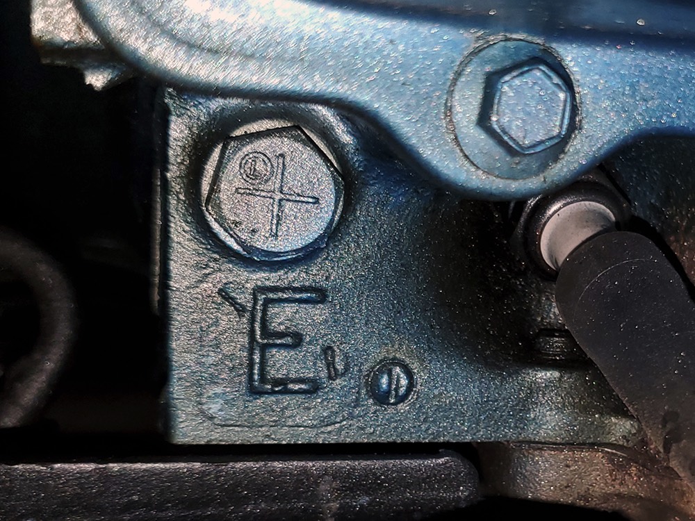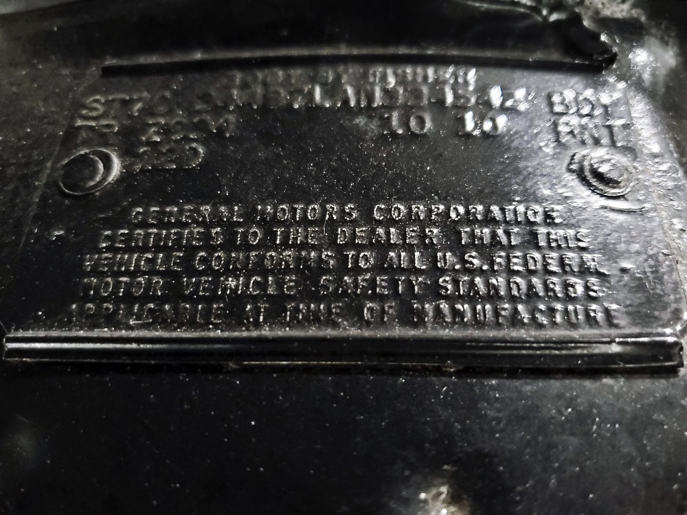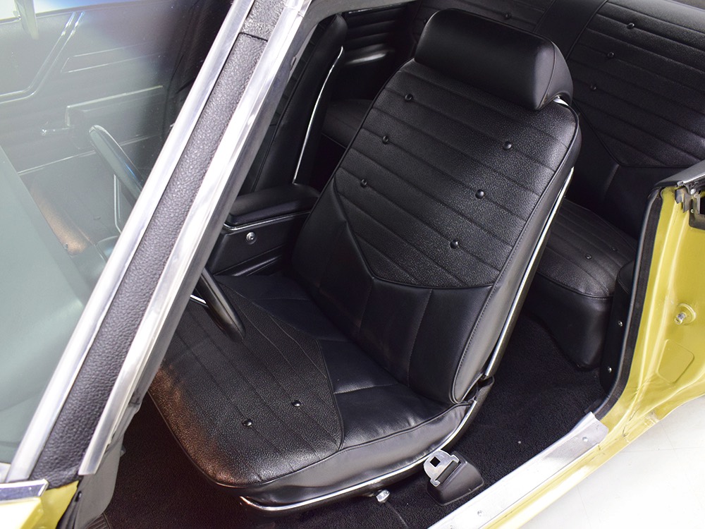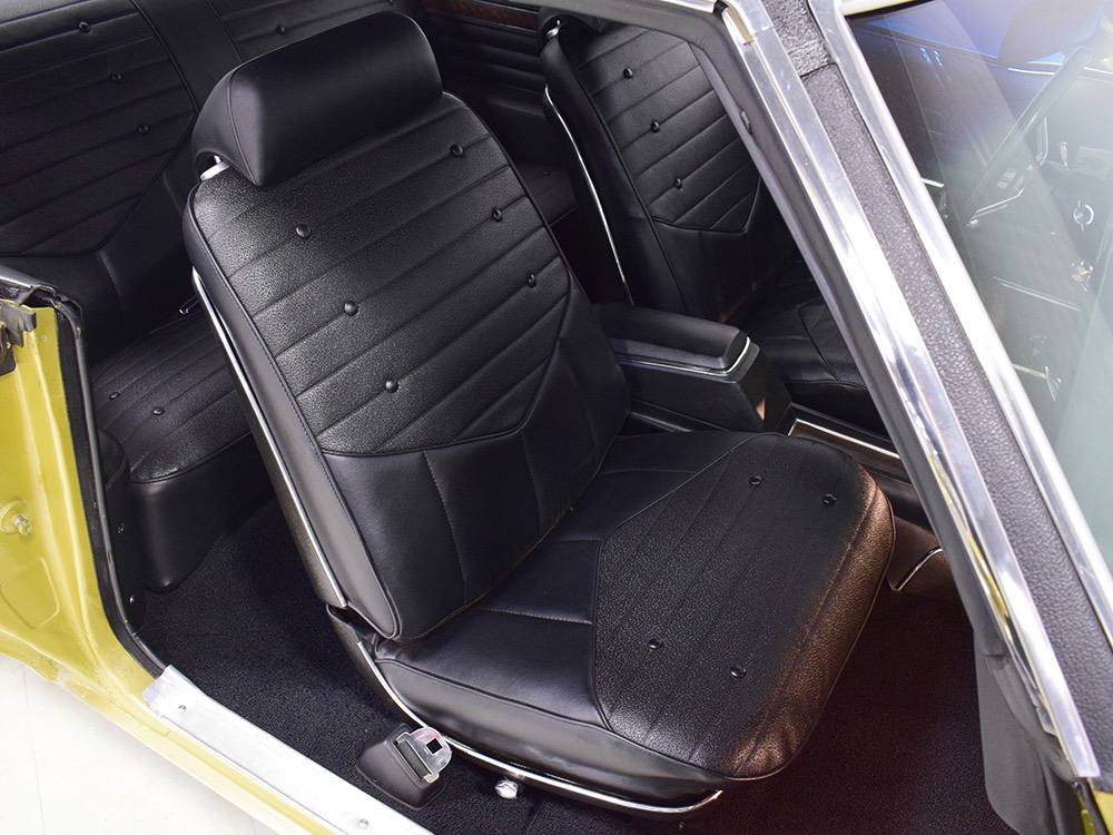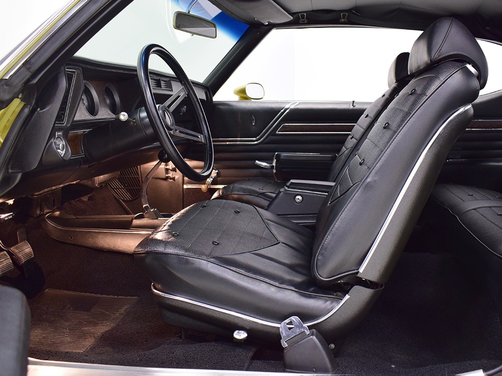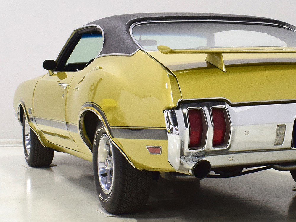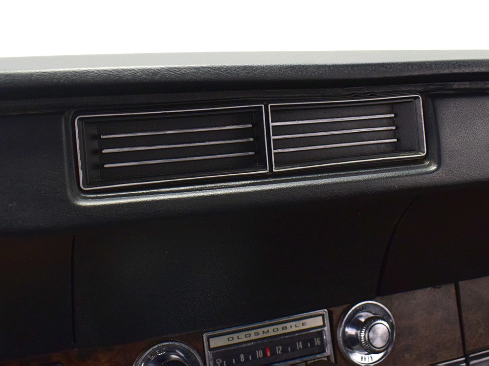 The 455 cubic inch V8 is stamped with the last seven digits of the VIN and is correct for this car. The engine bay is dominated by the ram air setup atop the carburetor, which does indeed snap closed when the engine fires, so it’s working correctly. Corporate blue engine enamel replaced the usual gold in 1970, and offers a nice contrast to the satin black inner fenders and firewall. The big V8 starts easily, idles smoothly, and with a mountain of torque on tap, it moves the relatively lightweight Cutlass without much effort at all—this sucker is fast! The block is a correct 396021 F casting, the heads are E castings, and even the alternator is the right unit. It remains completely stock, so no questionable modifications and it even runs the original carburetor and exhaust manifolds.