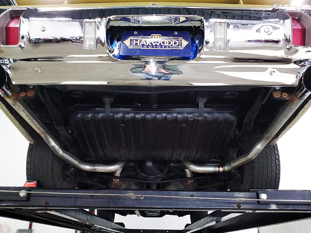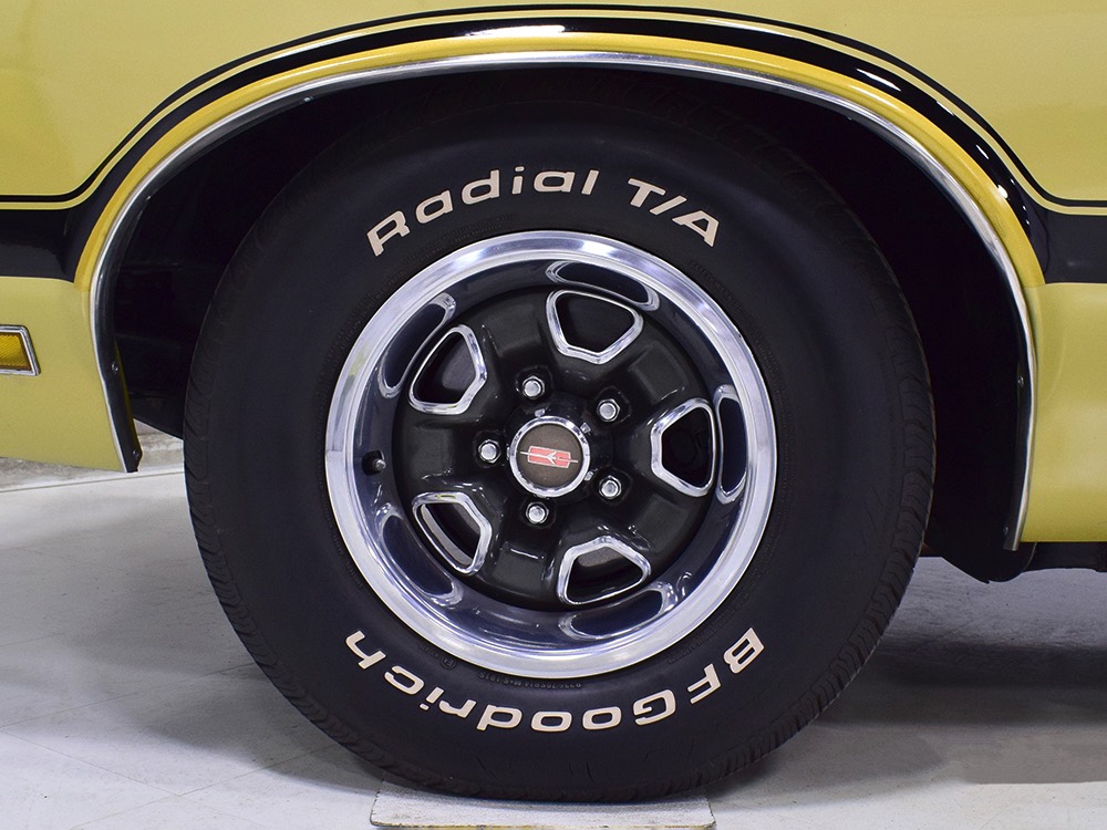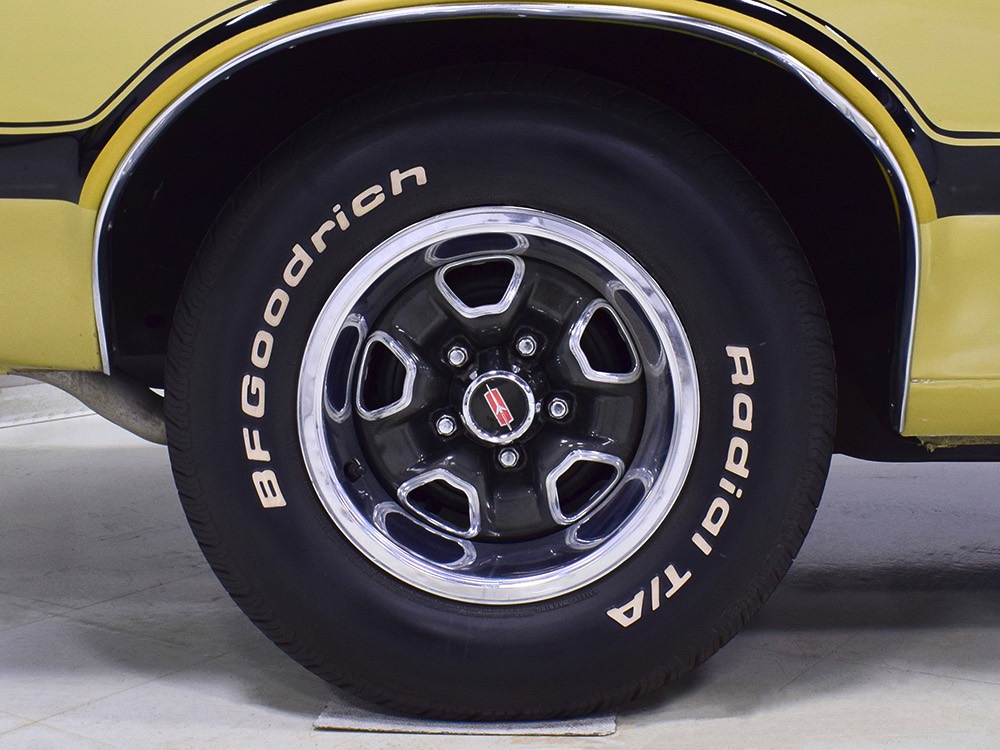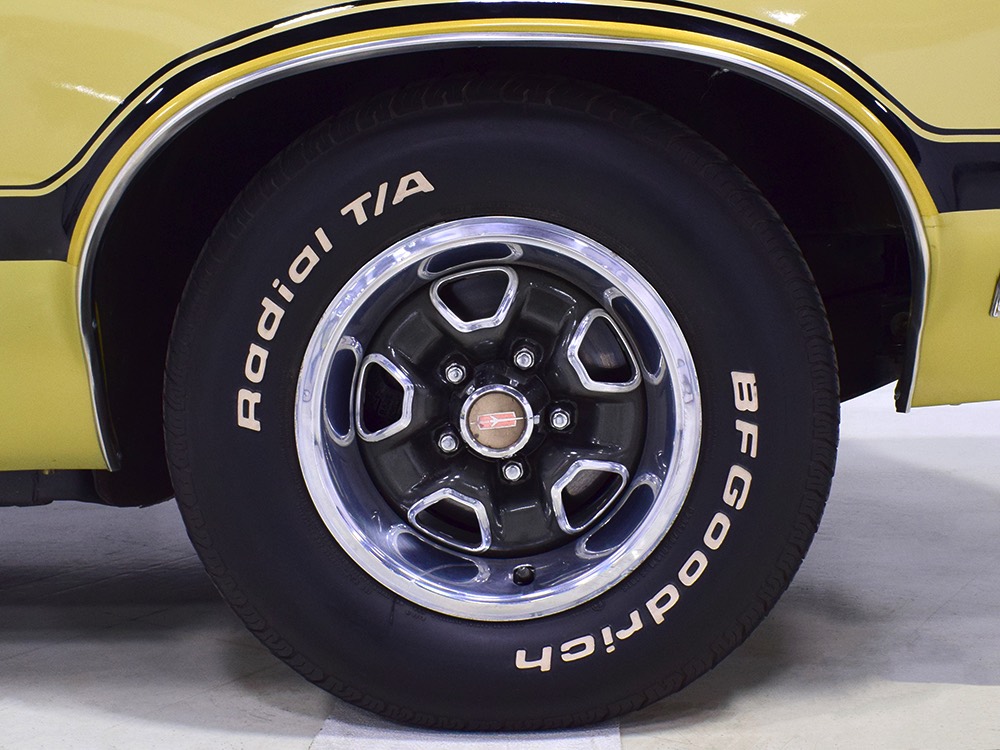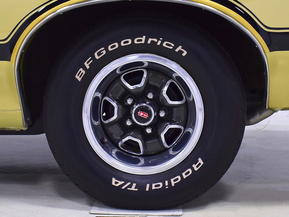 Underneath, the 4-speed manual transmission is a replacement Muncie M20 that shifts beautifully and delivers power to a bulletproof 12-bolt rear end with what we believe are 3.73 gears on a limited slip. The floors are solid and clean with no signs that the car has been patched up or cut, and the Flowmaster dual exhaust system sounds spectacular. It also includes power steering, front disc brakes, and a rebuilt front suspension to preserve that peerless Oldsmobile ride quality. And the stance is exactly right, crouching over those factory SSII wheels and fat 235/70/14 BFG radials.