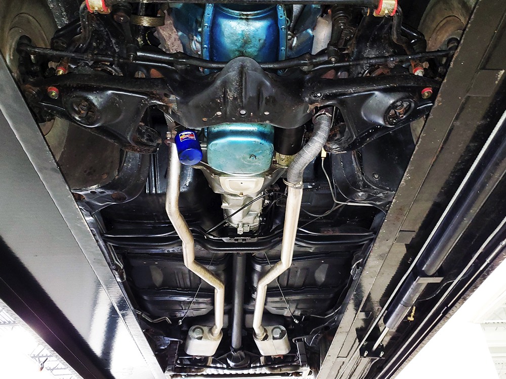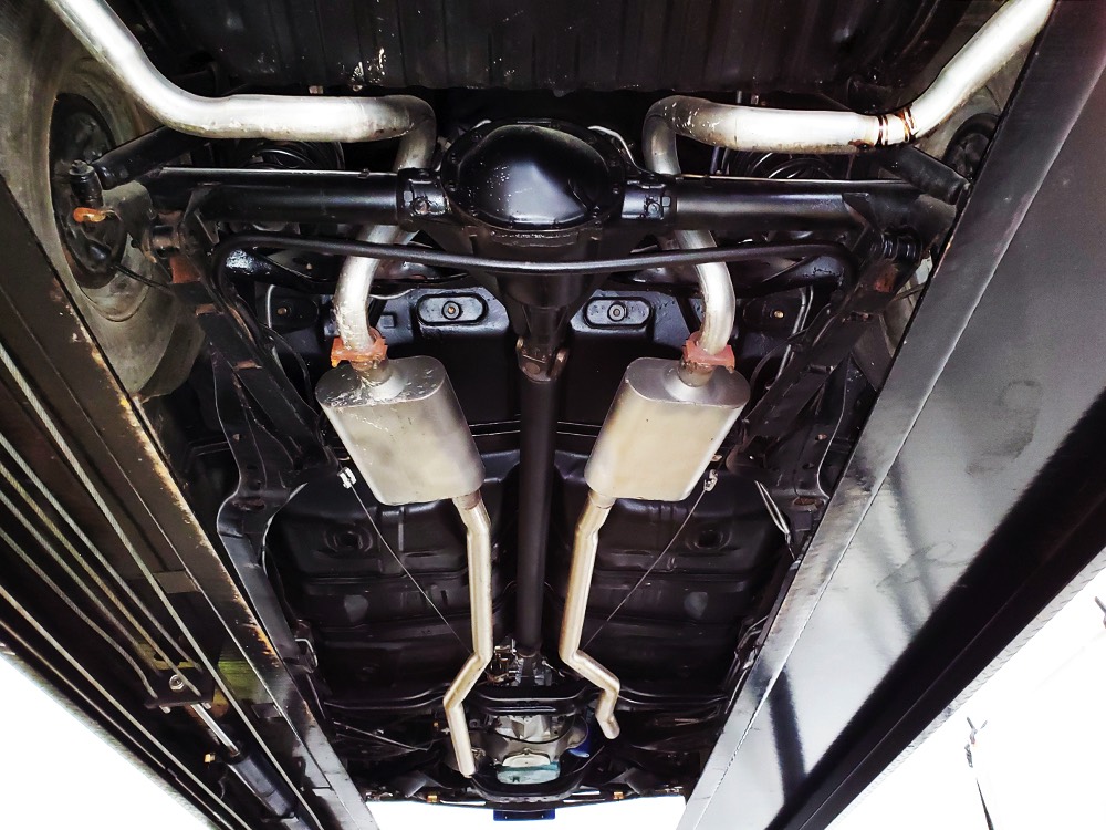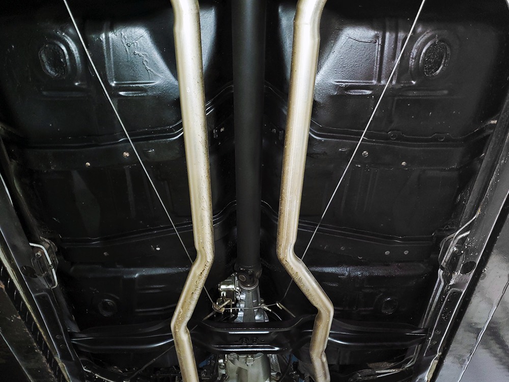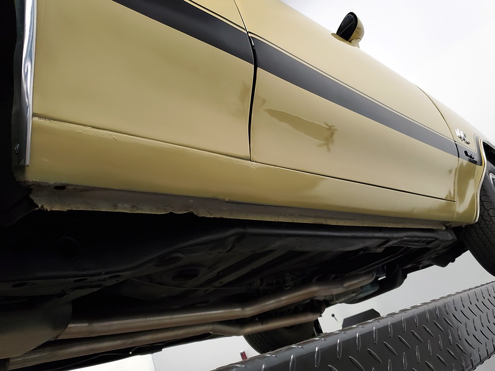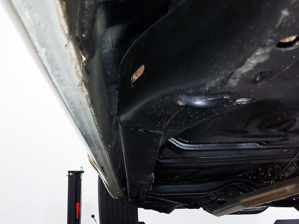 Underneath, the 4-speed manual transmission is a replacement Muncie M20 that shifts beautifully and delivers power to a bulletproof 12-bolt rear end with what we believe are 3.73 gears on a limited slip. The floors are solid and clean with no signs that the car has been patched up or cut, and the Flowmaster dual exhaust system sounds spectacular. It also includes power steering, front disc brakes, and a rebuilt front suspension to preserve that peerless Oldsmobile ride quality. And the stance is exactly right, crouching over those factory SSII wheels and fat 235/70/14 BFG radials.