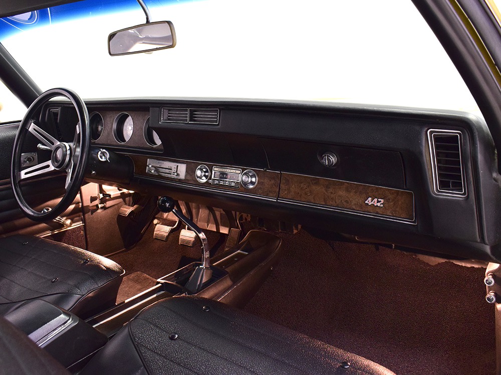 A console with a 4-speed is a great find in a car like this, and less than 25% of the 1970 442s were built with 4-speeds, making it a relatively rare bird.