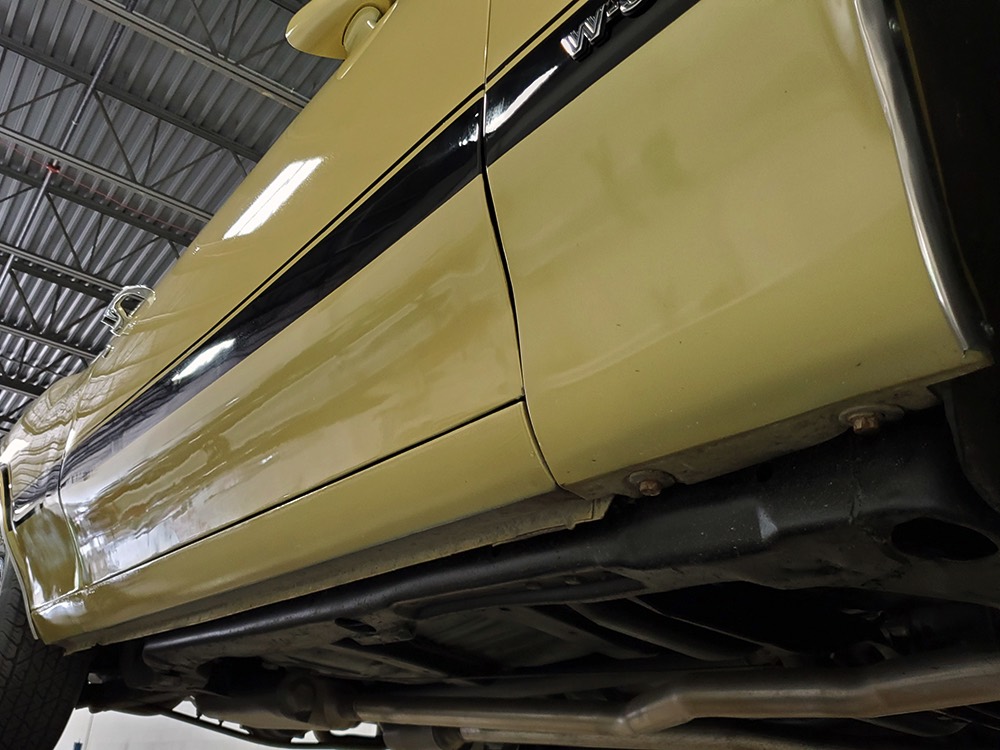 The 442 remains one of the most under-rated muscle cars of the era. Maybe it’s because Oldsmobile is no more and the name no longer resonates like it once did, but after driving a few of these big block pieces of luxury muscle, I always come away impressed. This 1970 Olds 442 is a genuine 442 with what appears to be its original engine—nice! It was treated to a frame-off restoration perhaps 15 years ago and as a collector car, hasn’t accumulated many miles since then. It’s been driven and enjoyed as intended, but its days as a daily driver are long over. Instead, it has mellowed into a high-quality driver that can be shown with pride at casual gatherings where the gold paint and bold black stripes make a purely 1970s statement. With the 442’s standard fiberglass hood with ram air and the optional rear wing, not to mention the prominent ‘442’ emblems on the flanks, it won’t be overlooked. It does wear W-30 badges although this is not a real W-30 car, but the difference in performance is modest and it puts this car in an altogether more friendly price category. Bodywork is nicely done, the doors fit well, and the only real demerit is some surface cracking on the nose of the hood where someone in the past perhaps slammed it a bit too hard. This is a grown-up’s muscle car and looks the part.