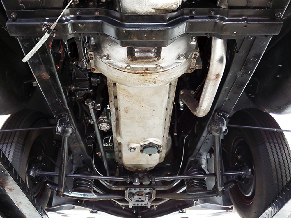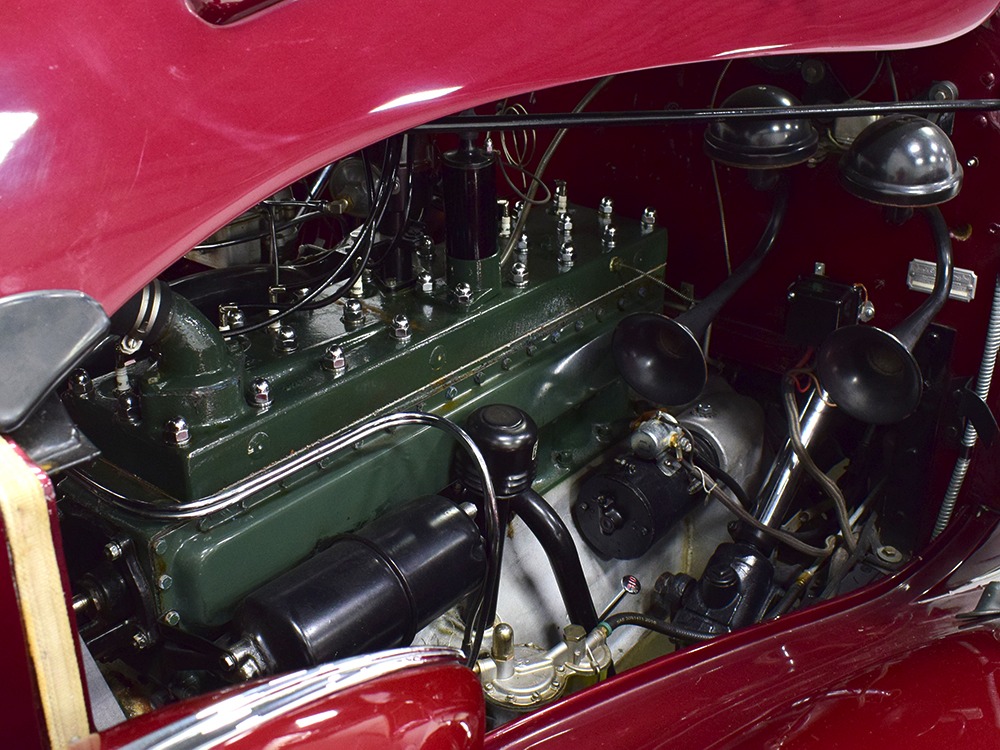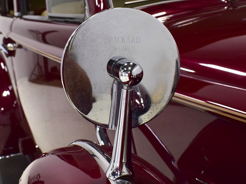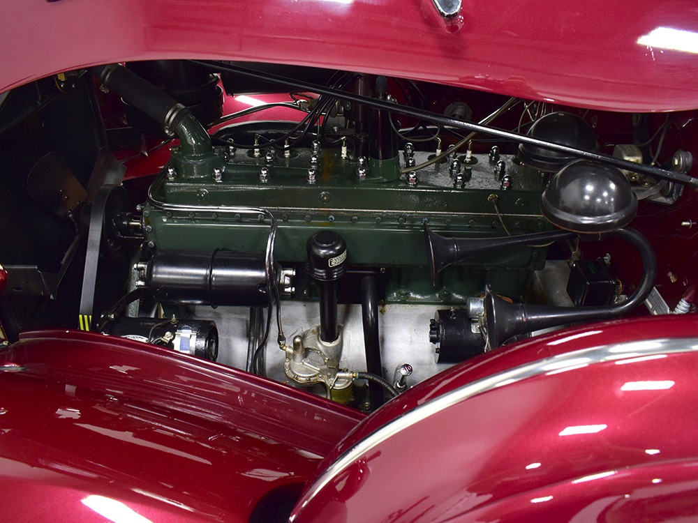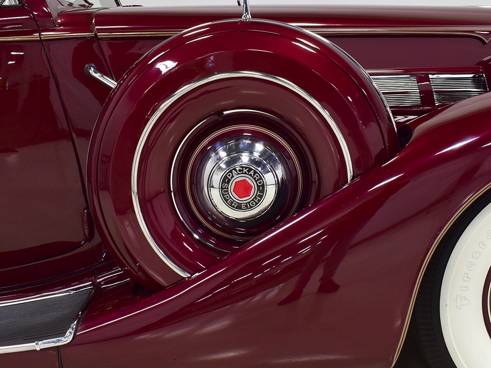 The 320 cubic inch Packard straight-8 really needs no introduction. Impeccably smooth and torquey, it moved some of the greatest sheetmetal of the 1930s. This engine was built sometime prior to the paint and upholstery work and was freshened by D&D with a head-off service and new, correct Packard Green engine enamel. New acorn nuts were installed on the head, the carburetor was rebuilt, the water pump, generator and starter were rebuilt and detailed, and there’s a new wiring harness from Potomac Packard. The car starts easily, idles smoothly, and pulls itself down the road with the kind of effortless ease you’d expect, although it remains a very large automobile. It is content to cruise at 55 MPH, making it an excellent tour vehicle, and a new exhaust system gives it just the right hushed burble at idle. The 3-speed manual transmission offers smooth shifts and easy clutch action with no chatter and the rebuilt brakes are powerful. Steering is light, although the bias-ply tires make it wander just a bit on rutted surfaces, which is typical. There’s also an NOS gas tank in back and six new 7.50-16 Firestone wide whitewall tires, as original.