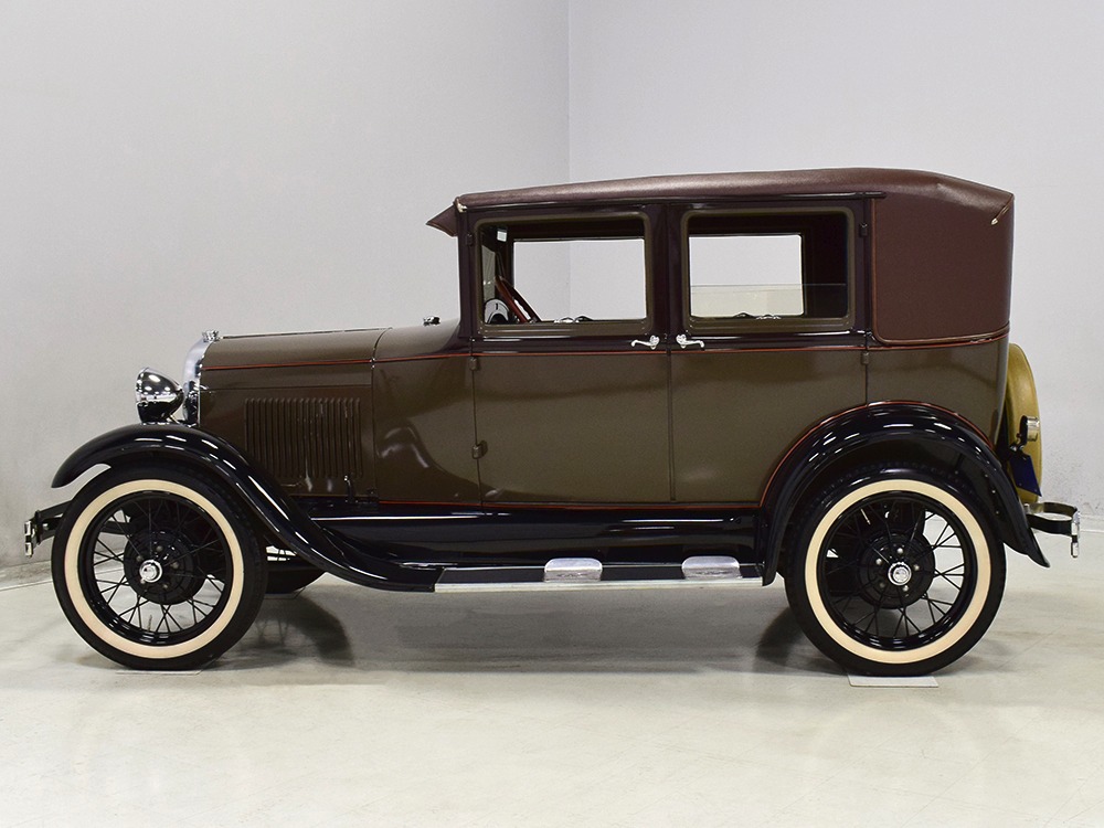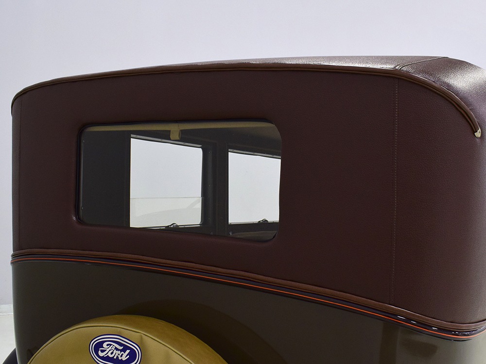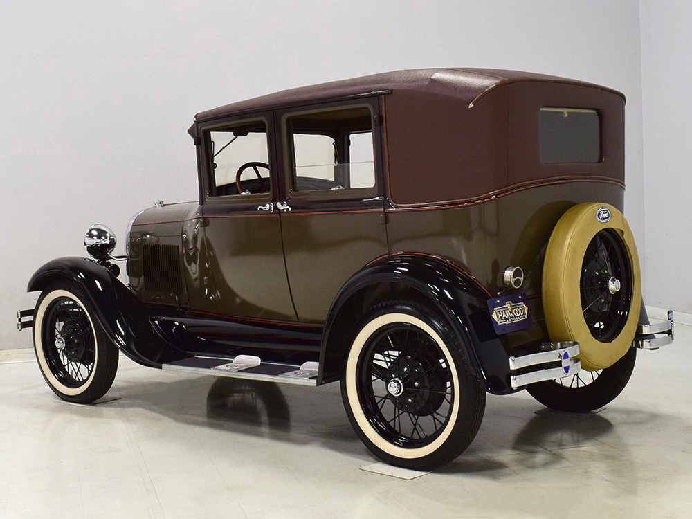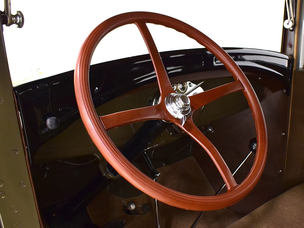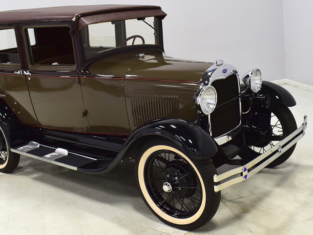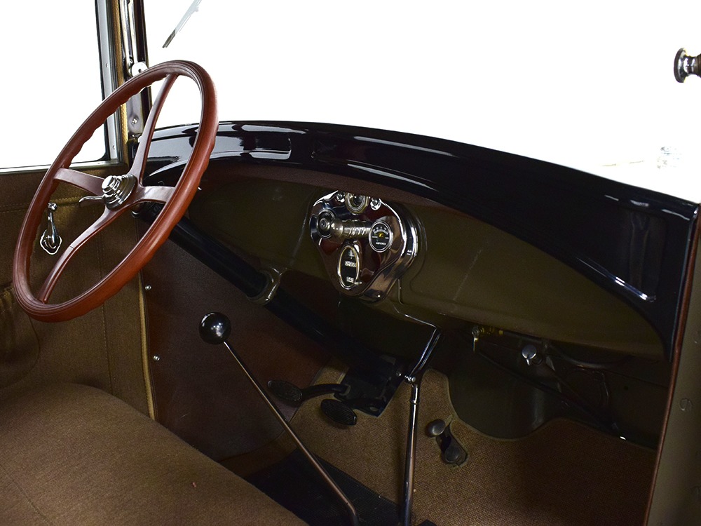 Desirable early production “leatherback” sedan. Many early 1928 features including drum taillight and red steering wheel. High-quality restoration in 2005, less than 1000 miles since. Attractive colors, beautiful interior, drives very well.