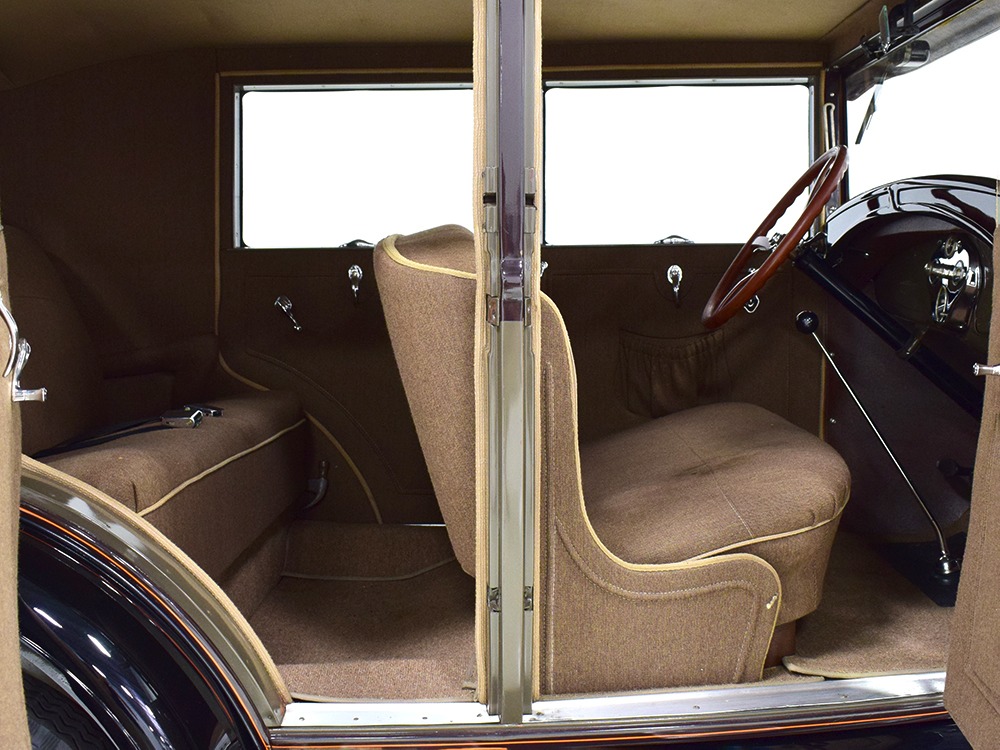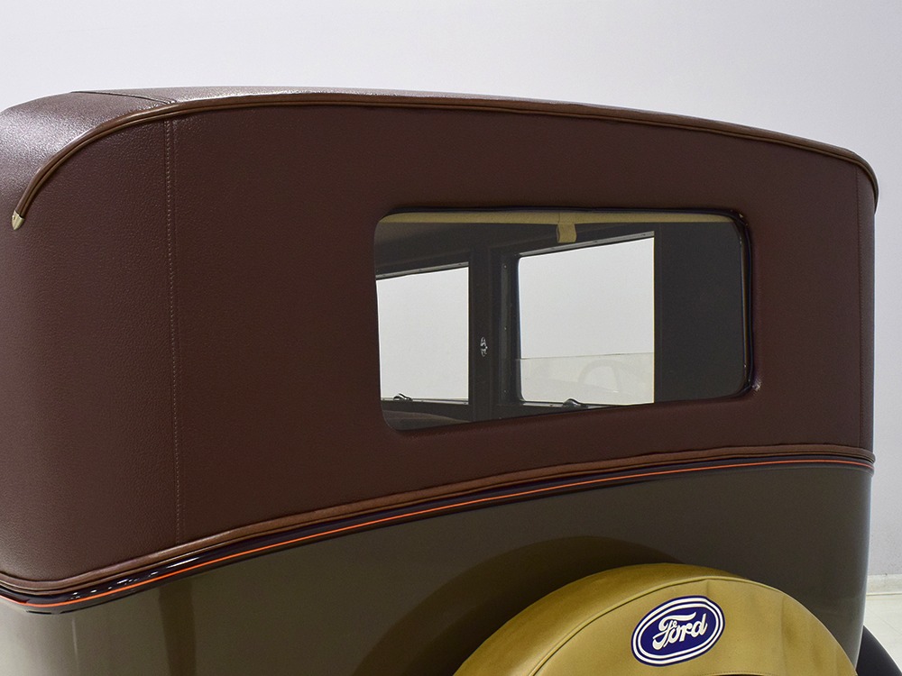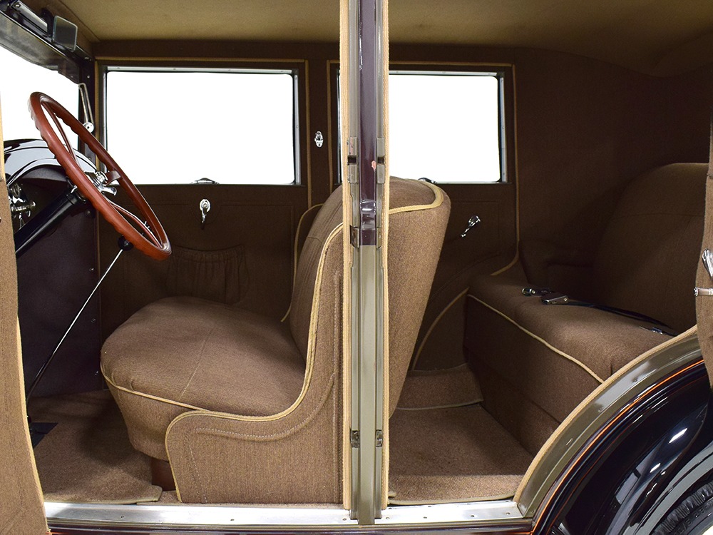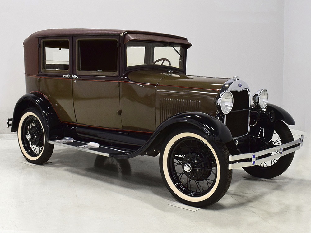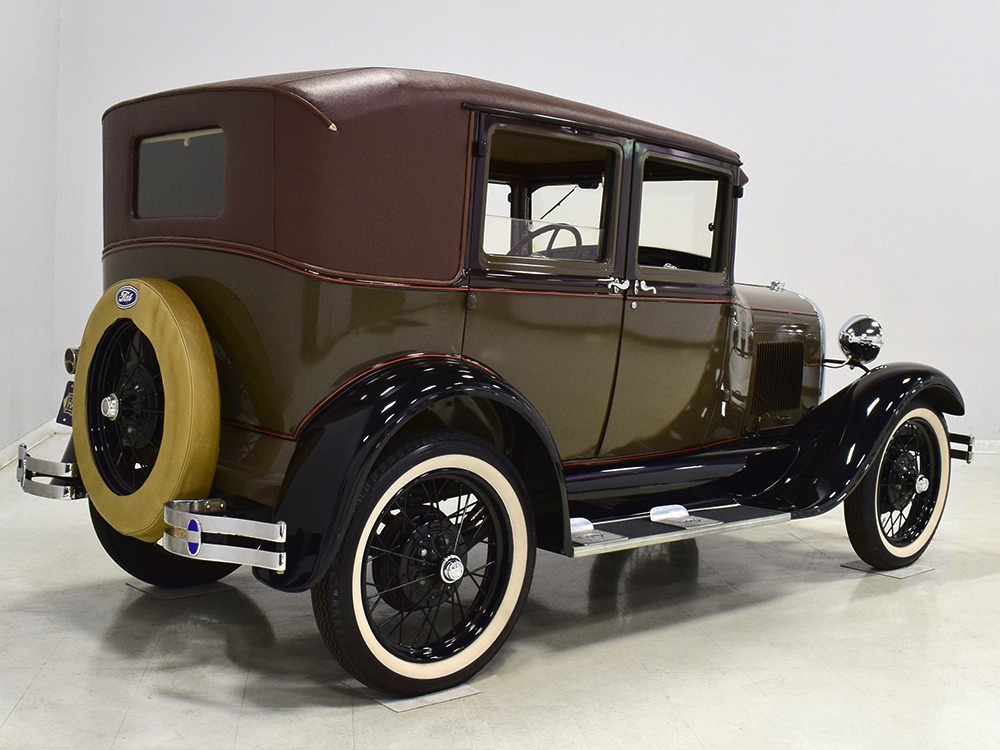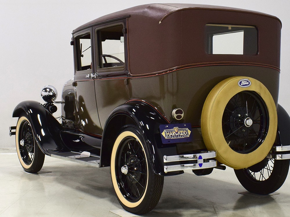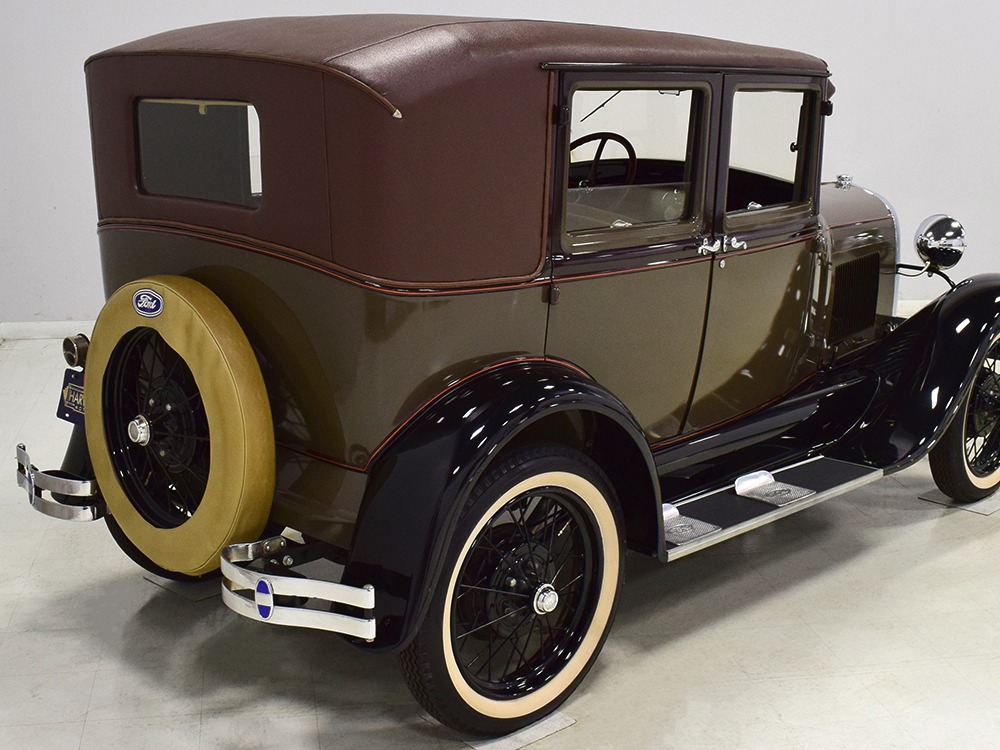 Desirable early production “leatherback” sedan. Many early 1928 features including drum taillight and red steering wheel. High-quality restoration in 2005, less than 1000 miles since. Attractive colors, beautiful interior, drives very well.