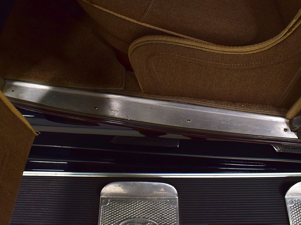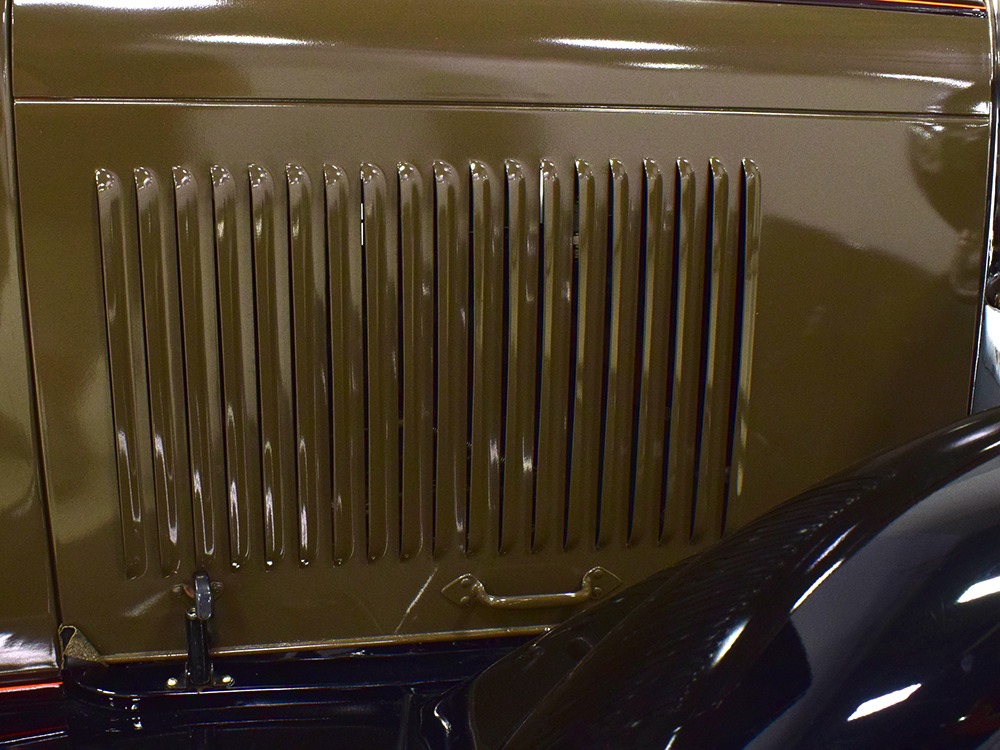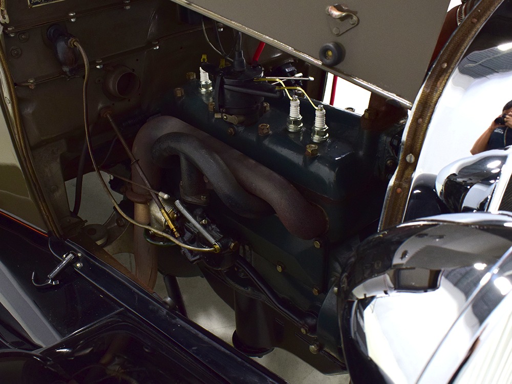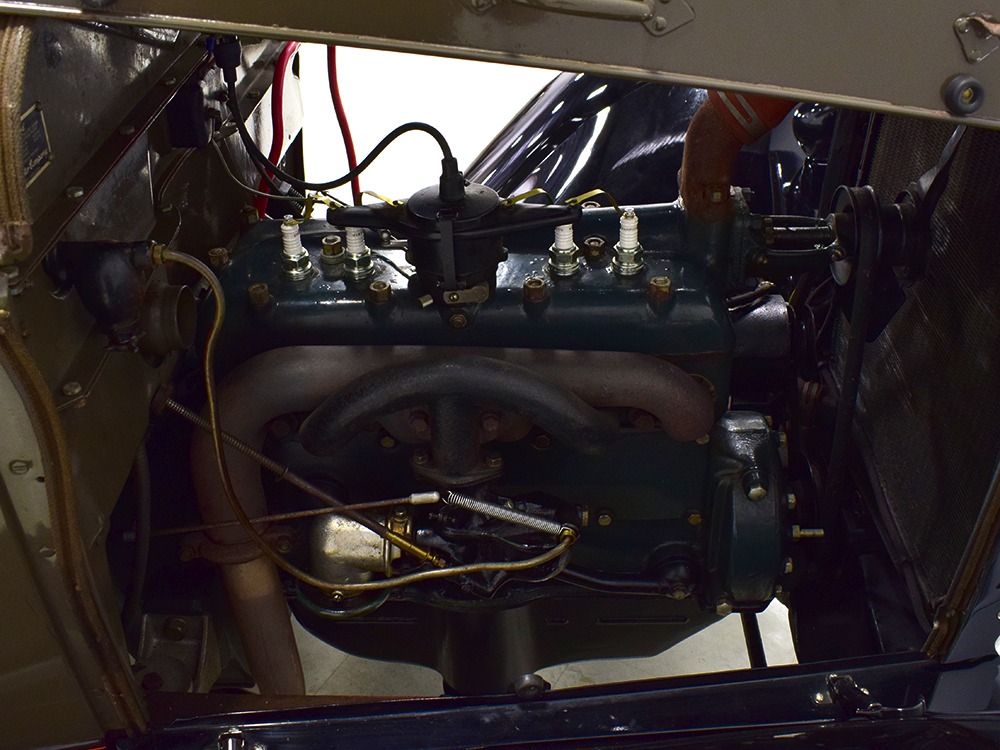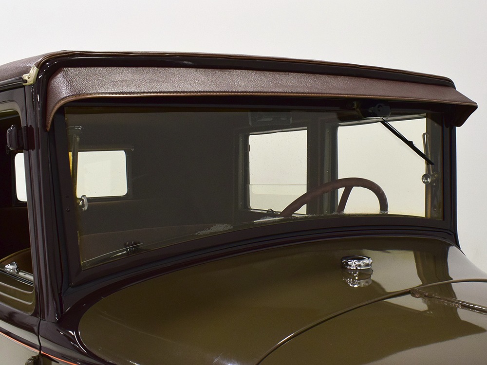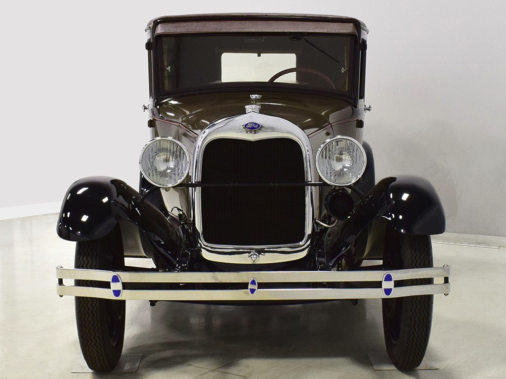 The “leatherback” sedan was the first 4-door built by Ford when the Model A was introduced. It gets its nickname from the padded roof and blind quarters, giving it a very distinctive look. It was intended to be luxurious and comfortable, an upscale model to help grow Ford’s market share. This particular 1928 Model A is finished in a beautiful color combination of Rose Beige and Seal Brown, which were the catalog colors. The restoration was extremely well done, finished sometime around 2005, with great attention to detail that makes it show beautifully. The doors fit correctly and snap shut with ease, the hood latches down so that the belt moldings are correctly aligned, and the orange pinstripe adds an upscale look. Black fenders were standard equipment, of course, and the pebble-grain artificial leather covering on the top is correct. All the brightwork was refinished in chrome instead of nickel for ease of maintenance, and you can’t argue with the result because it still looks great 15 years later. A single drum taillight is another indicator of an early 1928 production date and the rear-mounted spare wears a Ford script cover. This is a very pretty Model A.