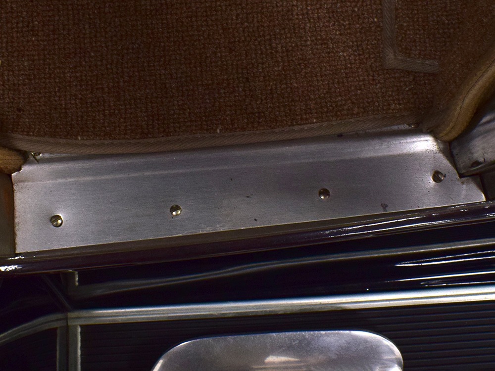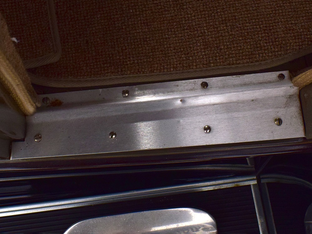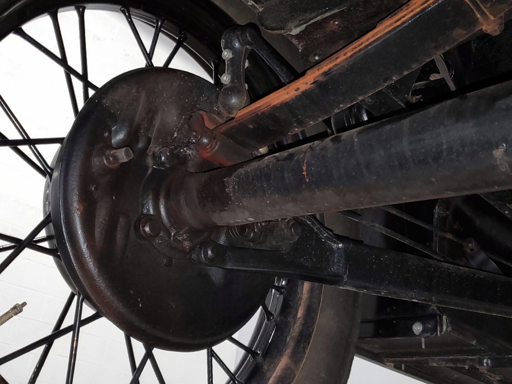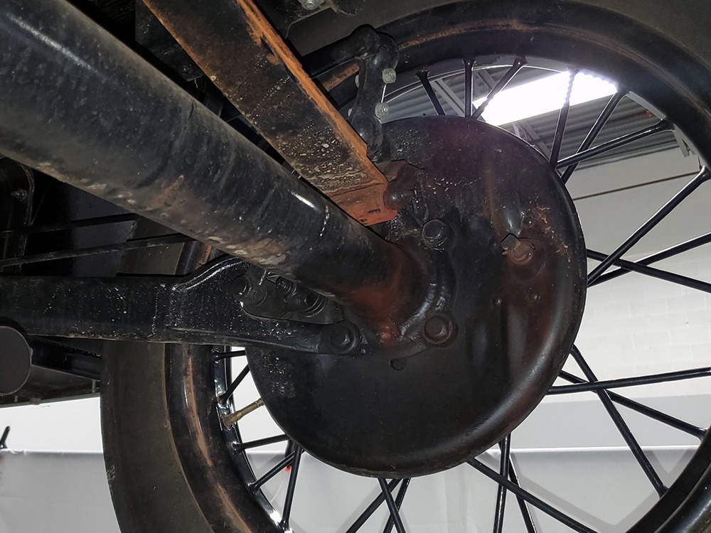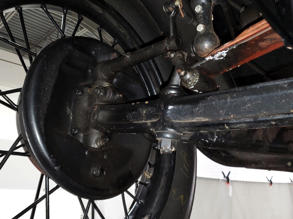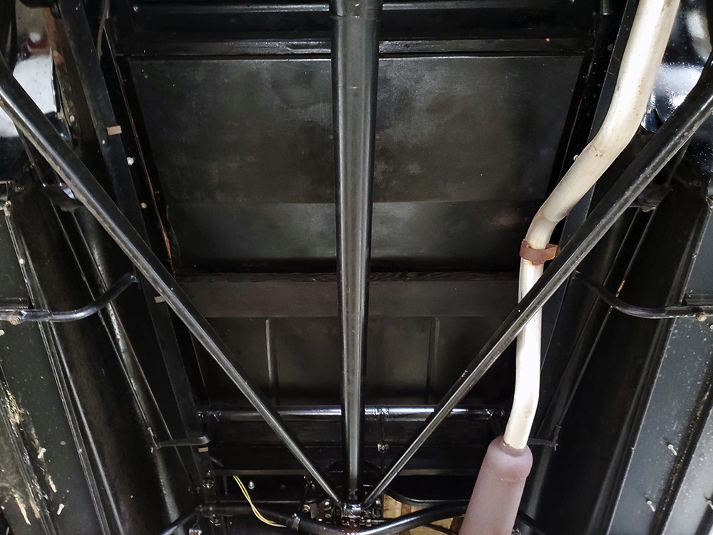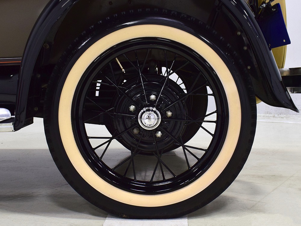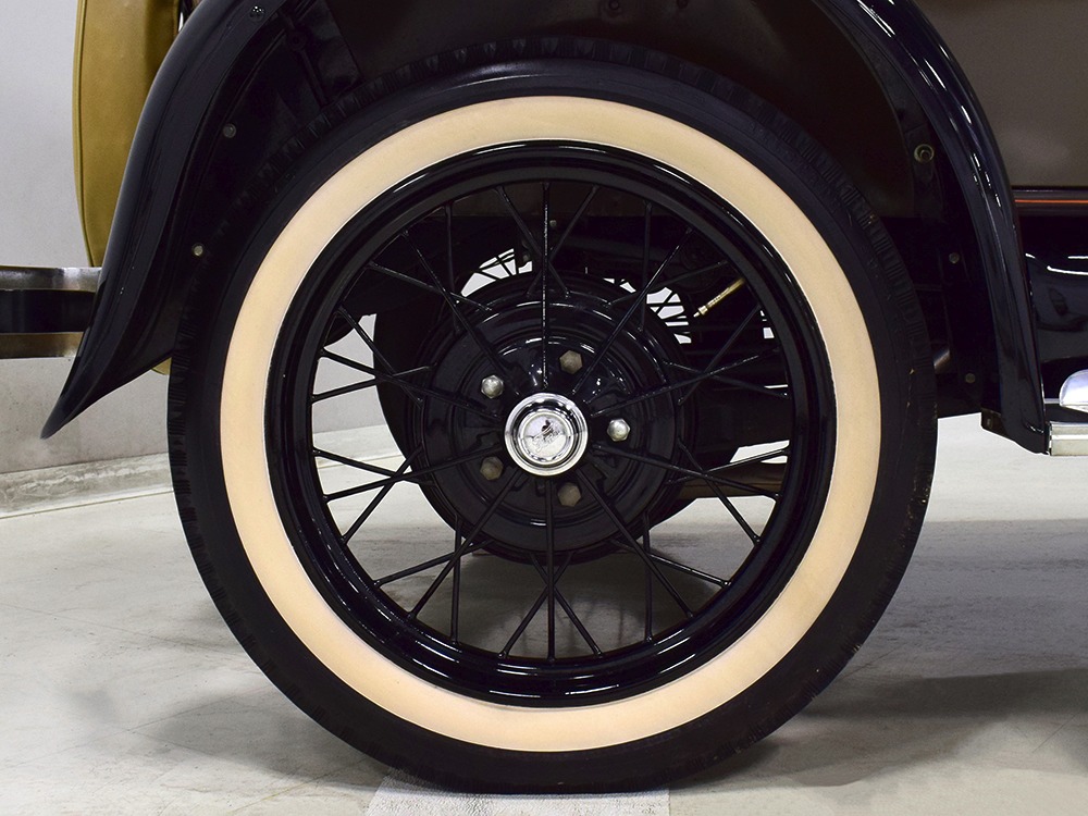 Power comes from the rugged and reliable 201 cubic inch inline-4 that powers all Model A Fords. It’s torquey and eager, and this one was apparently balanced when it was rebuilt because it’s the smoothest Model A we’ve ever driven. It starts easily with a bit of choke during cranking, then settles into a comfortable idle without much drama. It still uses a correct Zenith carburetor and stock ignition system, which probably explain why it’s so easy-going. Ford Green paint on the block looks proper with only a few minor signs of use and age, and the wiring harness was replaced when the car was restored. The only notable alteration are the bright red battery cables and in-cabin cut-off switch, which is only a good idea. The undercarriage is nicely restored and completely stock, with satin black floors showing no signs of rust or other issues (they’re also partially wood so obviously they were replaced). A correct exhaust system duplicates the original Model A soundtrack and the mechanical brakes are properly adjusted so they’re plenty powerful for the car’s modest performance. Black painted wire wheels look great against the Rose Beige paint and carry older whitewall tires that date to the restoration, so replacements might be a good decision if you’re going to use the car for extensive touring.