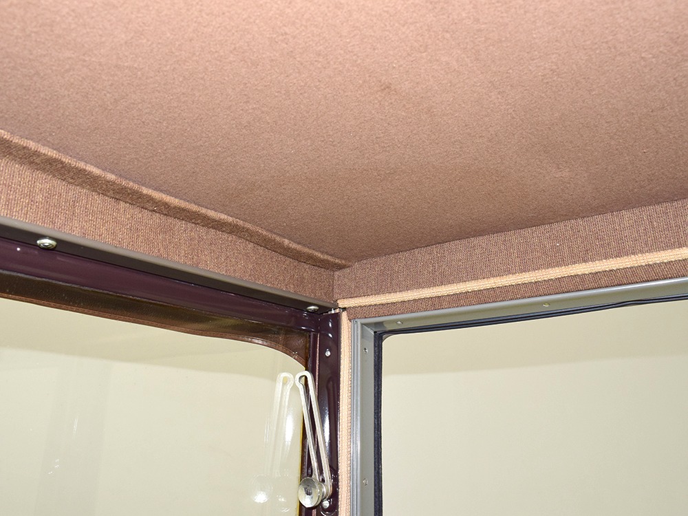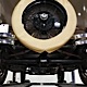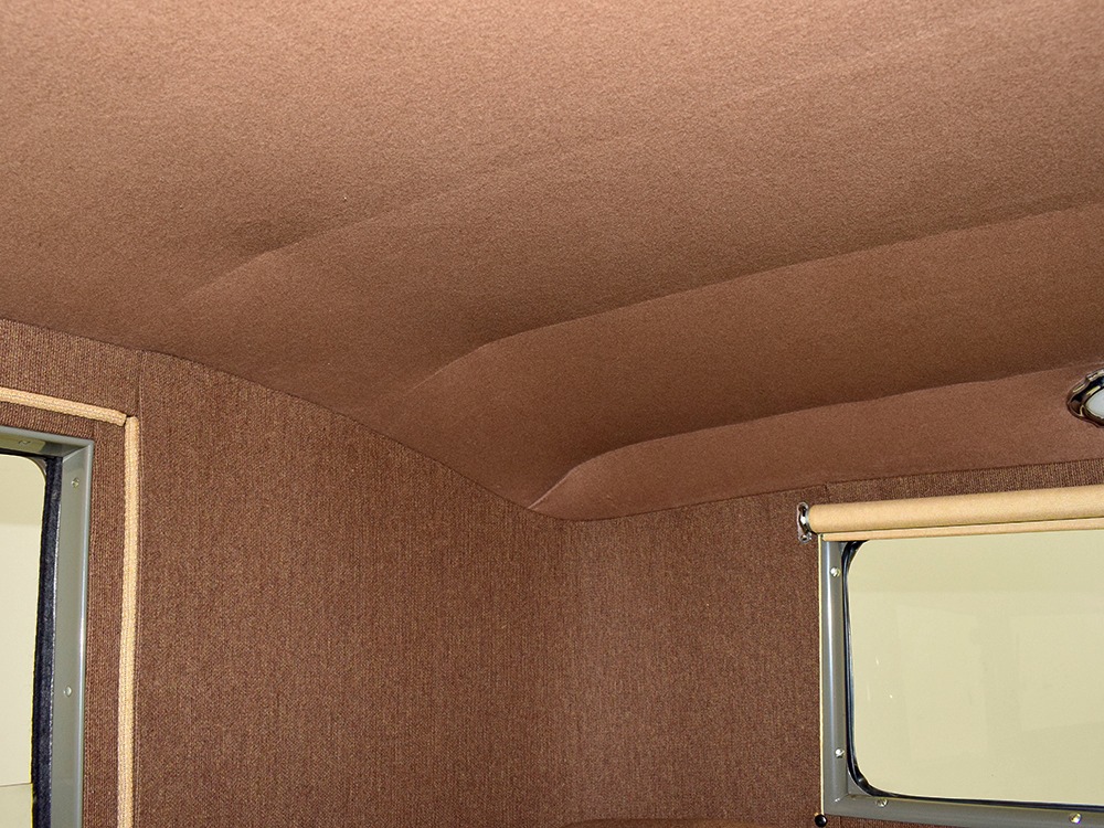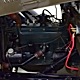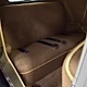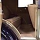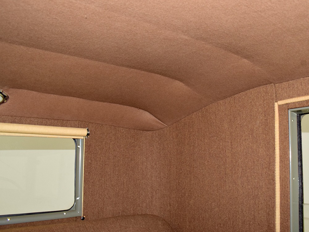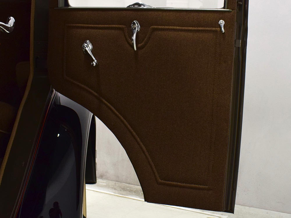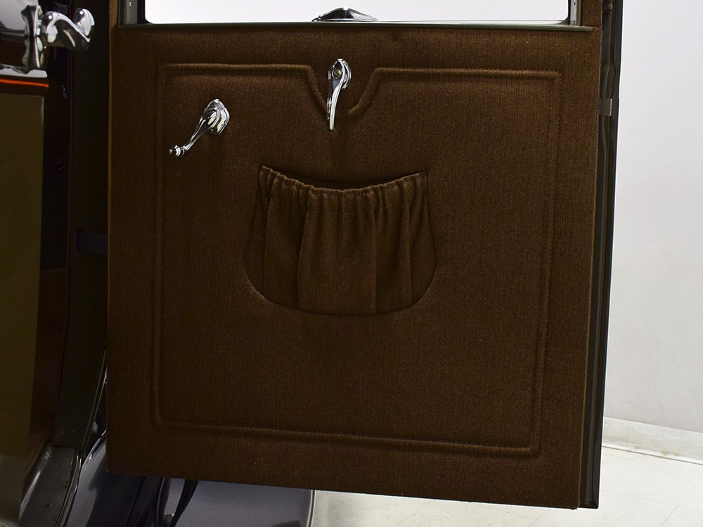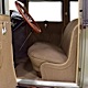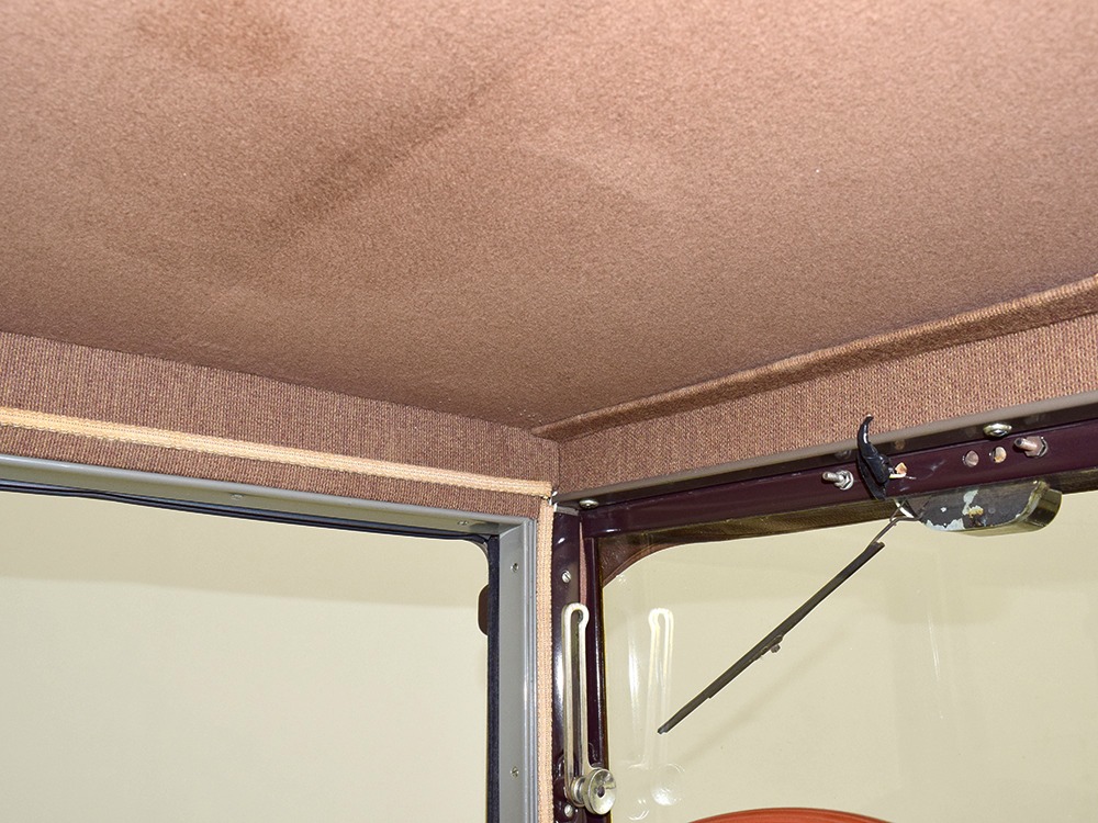 Expensive-looking materials and expert tailoring make the interior feel luxurious all out of proportion to the Model A’s reasonable price. Correct Bedford cord upholstery is trimmed in tan whipcord with map pockets and right hardware on each of the doors. The controls are standard Model A and easy to master, and as a closed car, this sedan offers full carpets fore and aft that help control noise and heat. The red rubber steering wheel is another early production feature, along with the trigger-style handbrake lever, while the windshield tilts open for added ventilation. In back, seating is comfortable with seat belts added for safety, and there’s a silk shade on the rear window just like on the more expensive cars. The wool headliner is as beautifully trimmed as the rest of the interior, giving it a very upscale feel from inside.