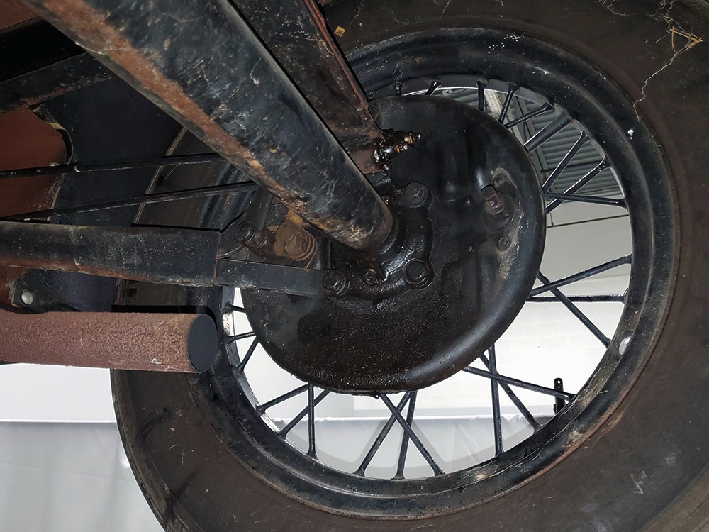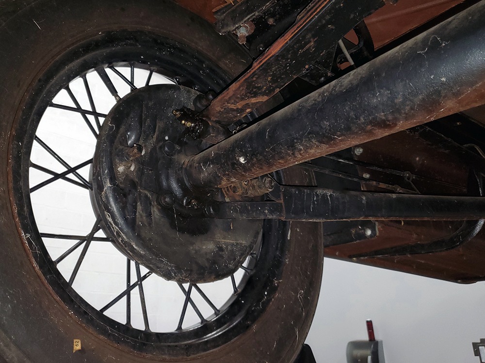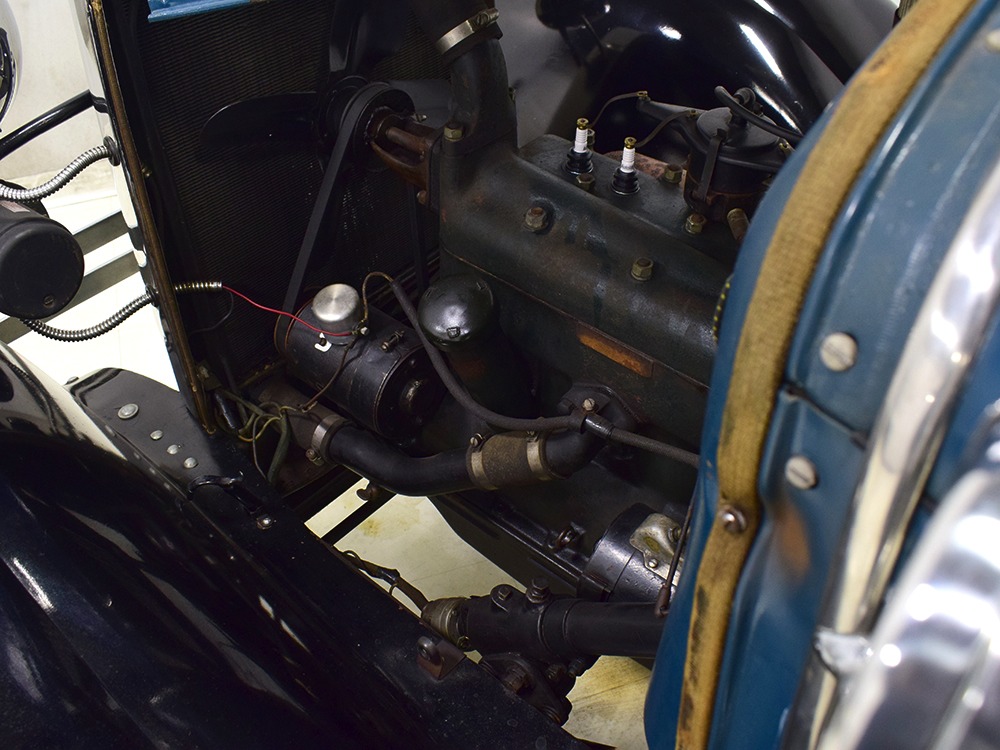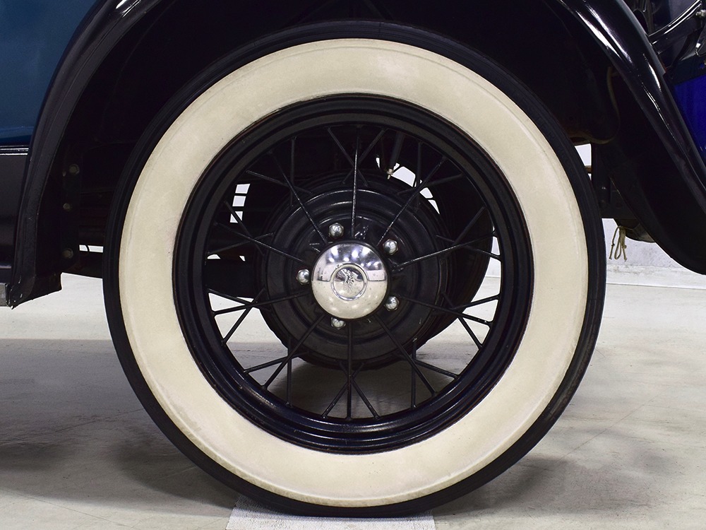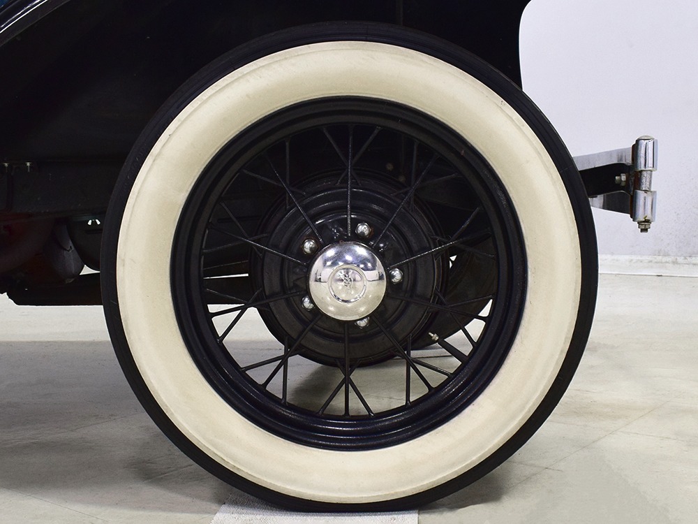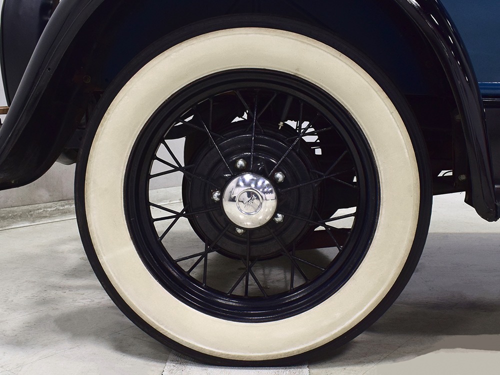 The engine is the same 200 cubic inch inline-4 that has powered millions of Model As for decades. Durable, torquey, and easy to maintain, it's still a great choice that over-performs on the street. Specifications are modest, but it feels energetic under all circumstances and this one runs extremely well. It's correctly detailed in Ford green paint and the rebuild has some miles on it, so it has been seasoned but not worn out. The transmission shifts easily and clutch action is light, and with a little practice on your double-clutching, you'll be driving this Model A like a pro. There's a correct exhaust system that gives it the distinctive Model A sound that's so beloved, and with factory gearing, it's happy cruising at about 45-50 MPH. Black painted wire wheels look great and carry recent 4.75/5.00-19 whitewall tires that look great on the modest Ford.