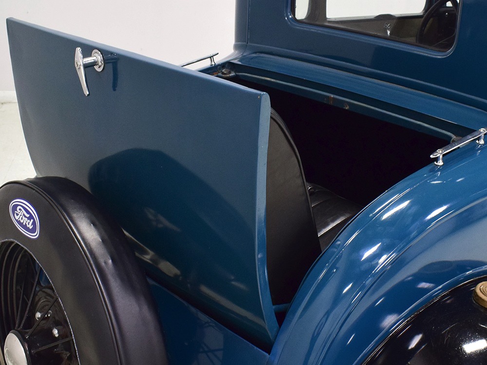 The interior is quite nicely done in period-correct fabrics and patterns. The coupe offers a fairly spacious interior that’s comfortable enough for all-day touriny. The upholstery is neatly done, with nice welting along the seams, correct map pockets in the doors, and a taut headliner that makes it feel upscale inside. The controls should be familiar to anyone who has driven a Model A in the past: big rubber steering wheel with headlight controls in the center, simple instrumentation, and a long-handled shifter for the 3-speed manual transmission. As was Ford's tradition, the front seat gets a rubber floor mat for durability and the windshield tilts forward for added ventilation. If you’d driven a Model A before, this will be like coming home and if you’re a first-timer, sitting behind the wheel will feel appropriately vintage. The rumble seat is finished with weatherproof leatherette and is ideal for quick trips with younger passengers, for whom the seat belts were undoubtedly installed.