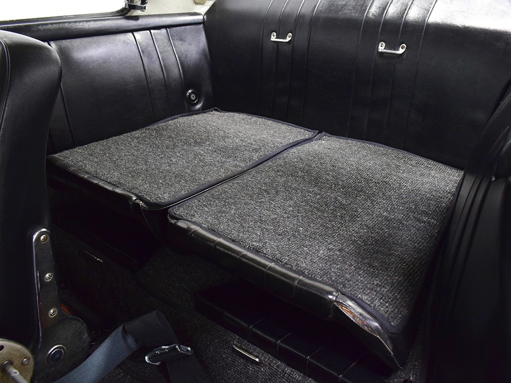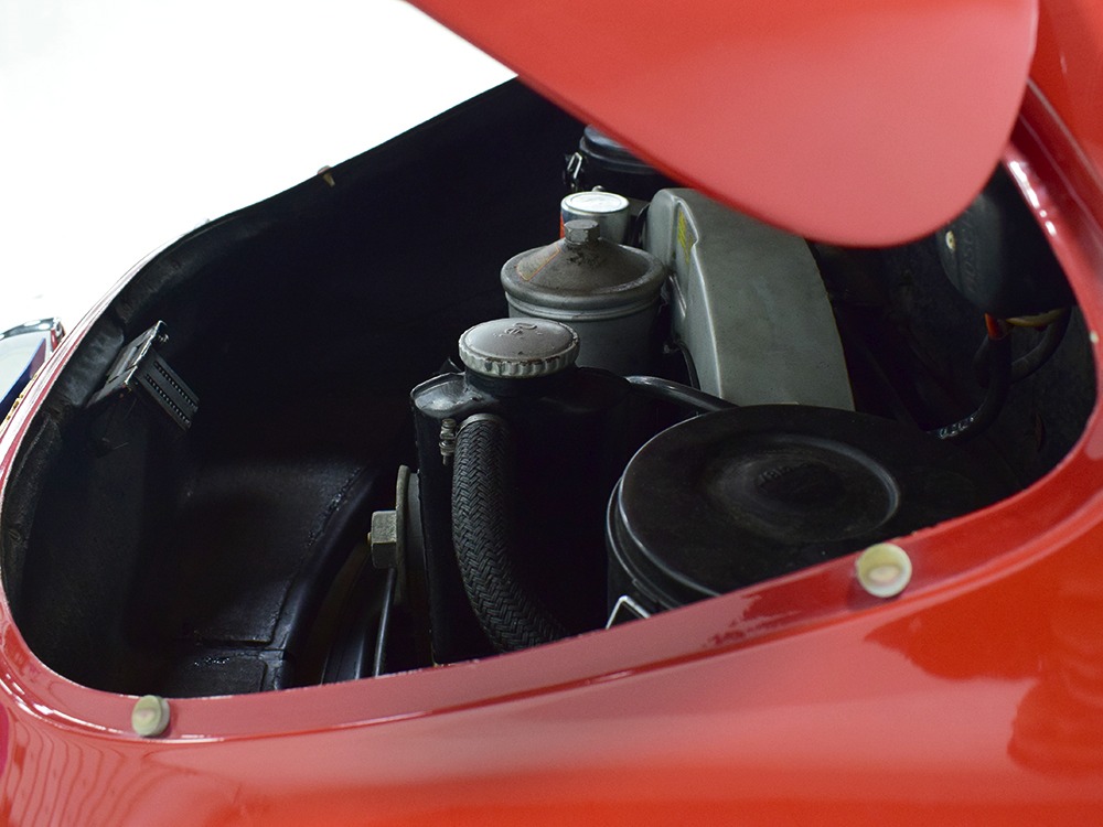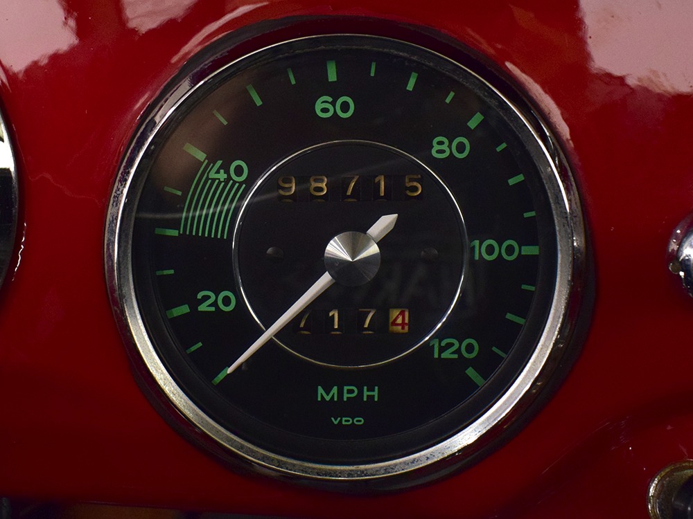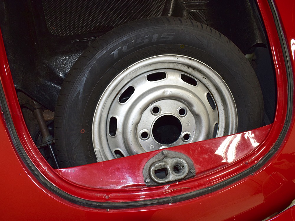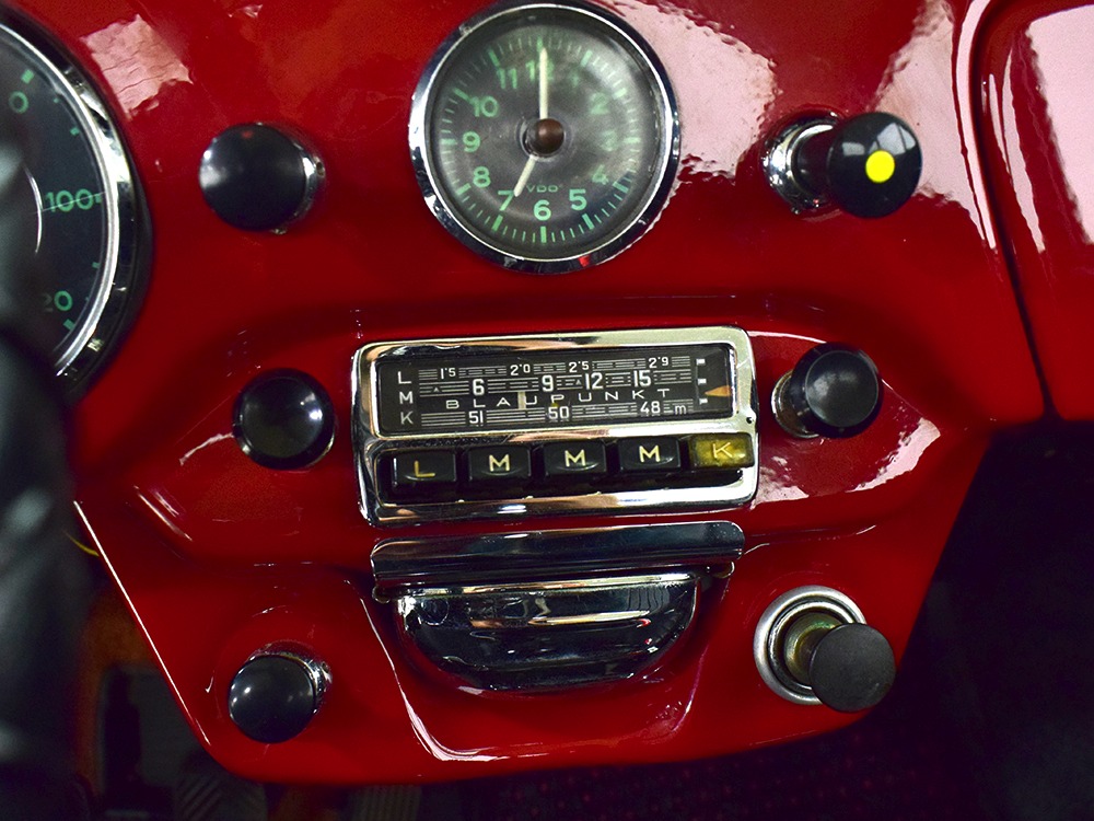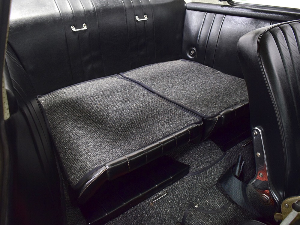 The interior was replaced during that same refurbishment and it remains an easy place to spend some time. The seat covers, carpets, and door panels were all replaced with correct reproduction pieces and it even has a set of sisal floor mats, a popular accessory. The steering wheel is original and protected with a leather wrap, while the dash is full of handsome and simple VDO gauges that are all operational. Only the clock is offline. We believe the headliner is original and that should suggest just how nice this car was before the restoration started. Lap belts were added in the name of safety and the 356 is a remarkably practical small car thanks to the fold-down rear seats that’ll handle children in a pinch or a good deal of luggage for a road trip. There’s also the forward trunk, which features a full-sized spare and jack assembly.