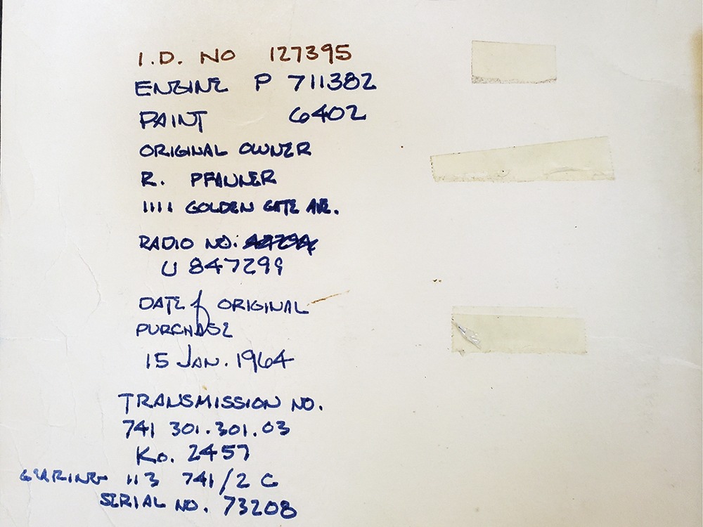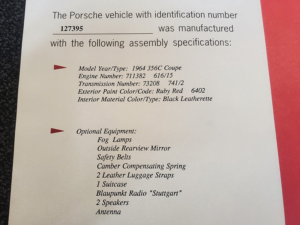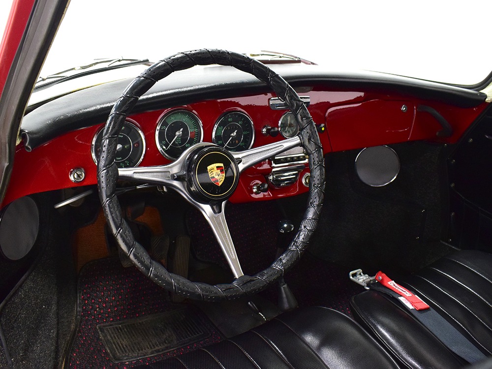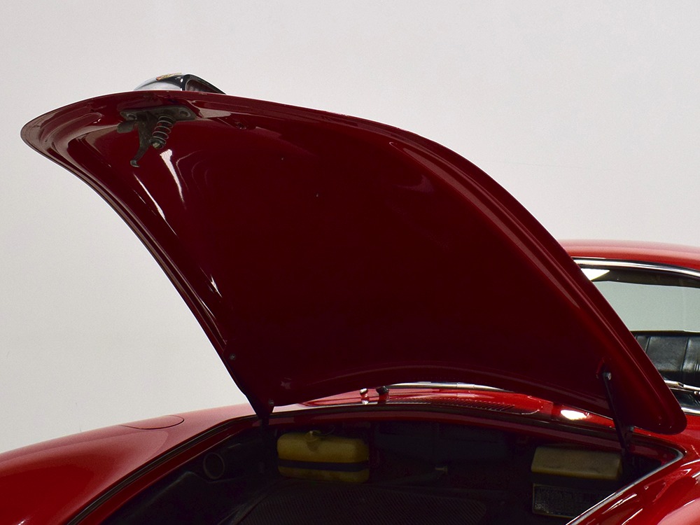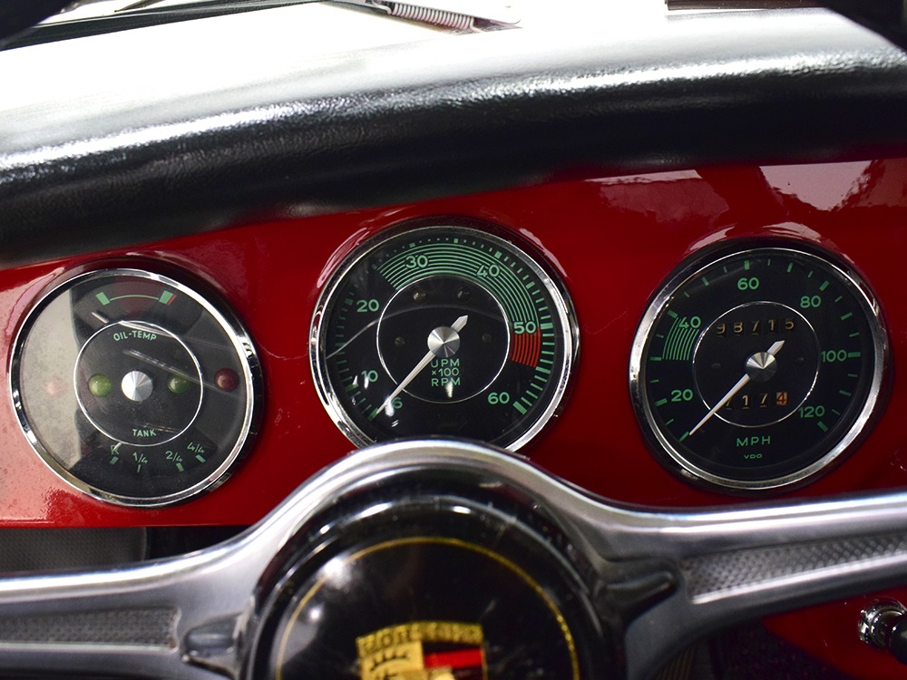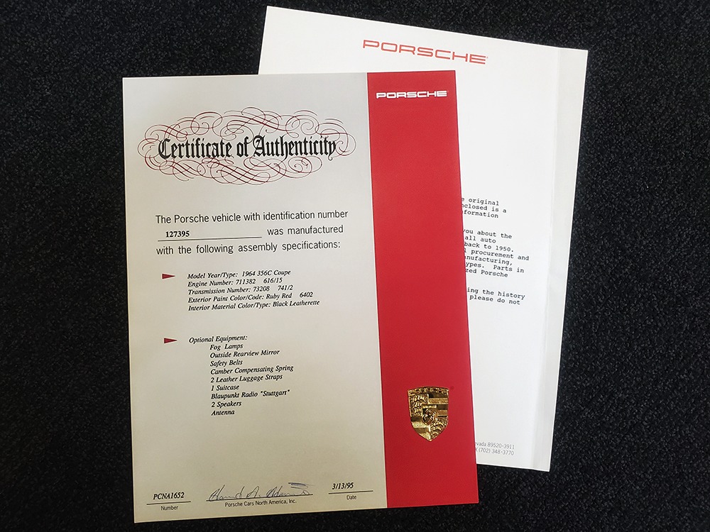 The writing was on the wall in 1964—the 911 had just been introduced and the 356 was headed for retirement. Nevertheless, the 356C was the most popular of all the 356 models with 14,151 being built. Four-wheel disc brakes were now standard, the base engine was the 75 horsepower 1.6 liter, and styling retained the same timeless shape that has become an icon. Experts will note this particular 356C is titled as a 1963, when the C was introduced for the 1964 model year. Our only explanation is that it’s a very early production model that was likely imported in late 1963 and therefore titled by the date it arrived rather than the date it was sold or the manufacturer’s model year. It changes nothing about this wonderful Porsche, which was apparently always a beloved car living in California. We have decades of service records showing that whatever it needed, it received, including a full restoration in 1995. That restoration included a fresh coat of Ruby Red 6402 paint and a new black leatherette interior. It’s holding up beautifully more than two decades later, with a wonderful shine befitting a Porsche of this status and very few signs of use. That’s probably evidence of the care the car has received as much as the quality of the work. The doors close solidly and have even gaps, the front boot latches down without a slam, and the deck lid snaps into place with ease. Bent and rusty cars don’t fit together as well as this one does. California cars really are better.