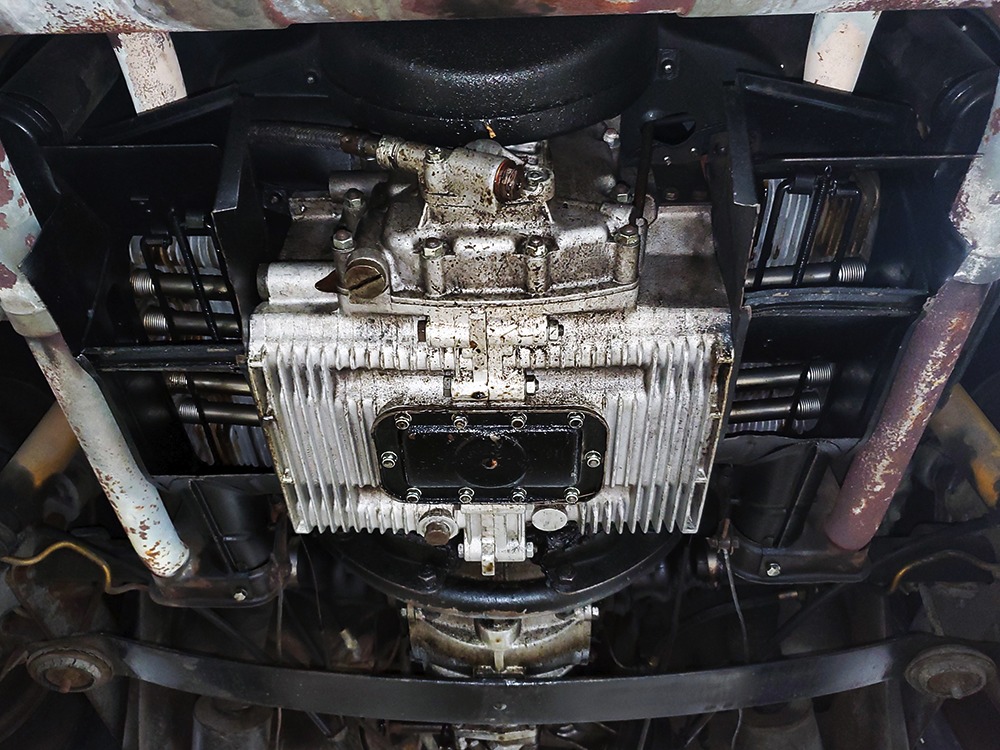 The engine is a 1700cc flat-four, and the numers suggest that it’s the car’s original powerplant. It was fully rebuilt using a 912 crank and rods in 2014. Properly tuned, it starts easily and runs great, with an eagerness that is a big part of what makes these cars such a joy to drive. Not quite fast, but entertaining and that’s the whole point. You can drive this car at 9/10ths all day without endangering the townsfolk and it’s bulletproof reliable. There’s also a rebuilt fuel pump and carburetors, a new clutch, and correct details like the Bosch ignition system, 6-volt generator, and air filter housings. The original 4-speed manual transmission shifts cleanly and clutch action is light, making this 356 easy to master. The undercarriage shows plenty of evidence of its California heritage wit clean original floors, solid rockers, and no signs of rust or structural rot. Disc brakes were standard on the 356C, giving it stopping power in reserve, and the suspension is a great blend of capable and comfortable. Factory steel wheels carry 185/65/15 Michelin radials for a correct look and superior handling.