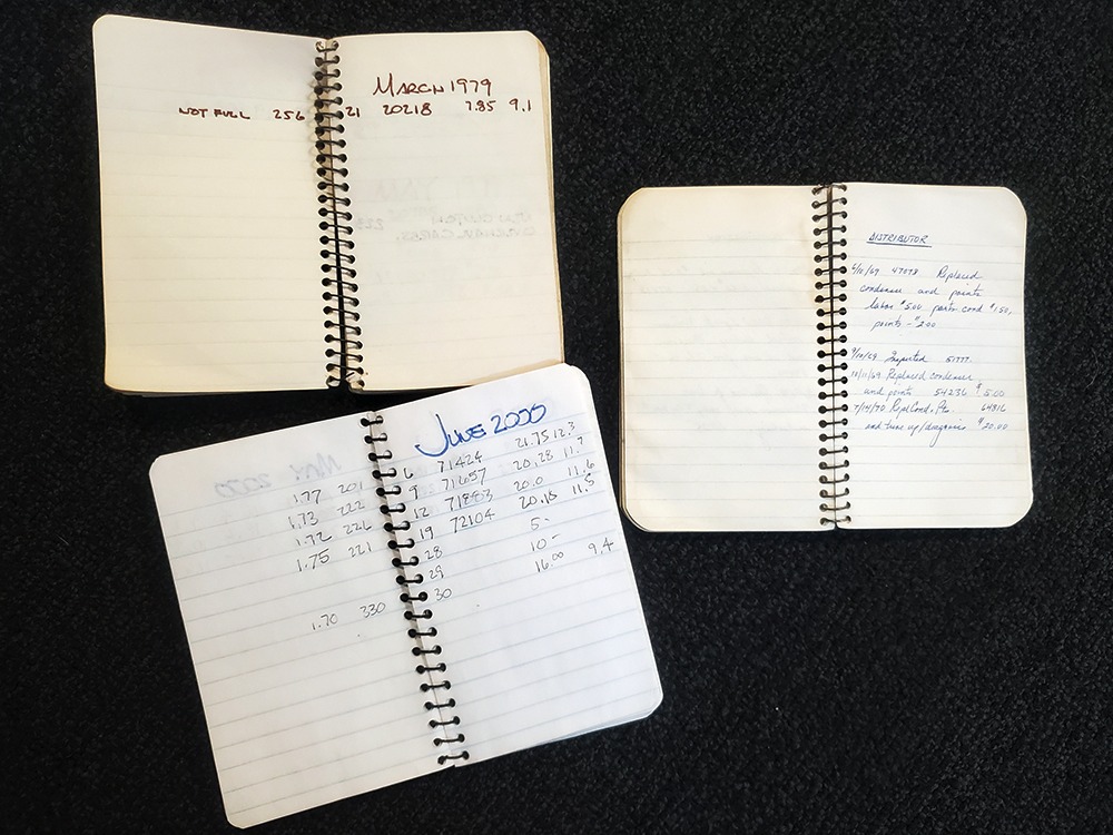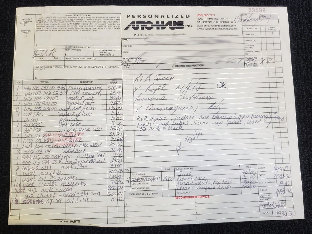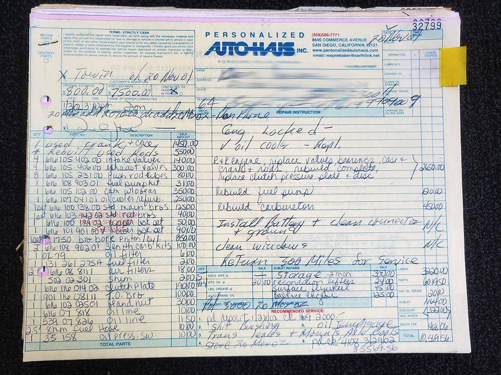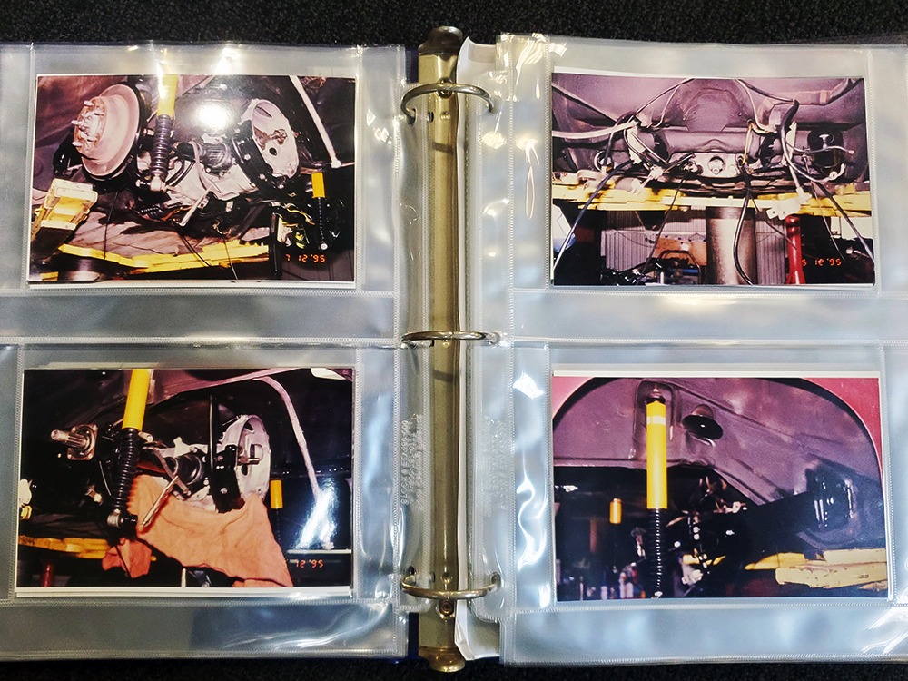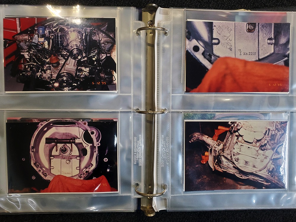 Extras include the original owner’s manual, Porsche Certificate of Authenticity, restoration receipts, photos, decades of maintenance records, service notebooks, and a chrome luggage rack.
