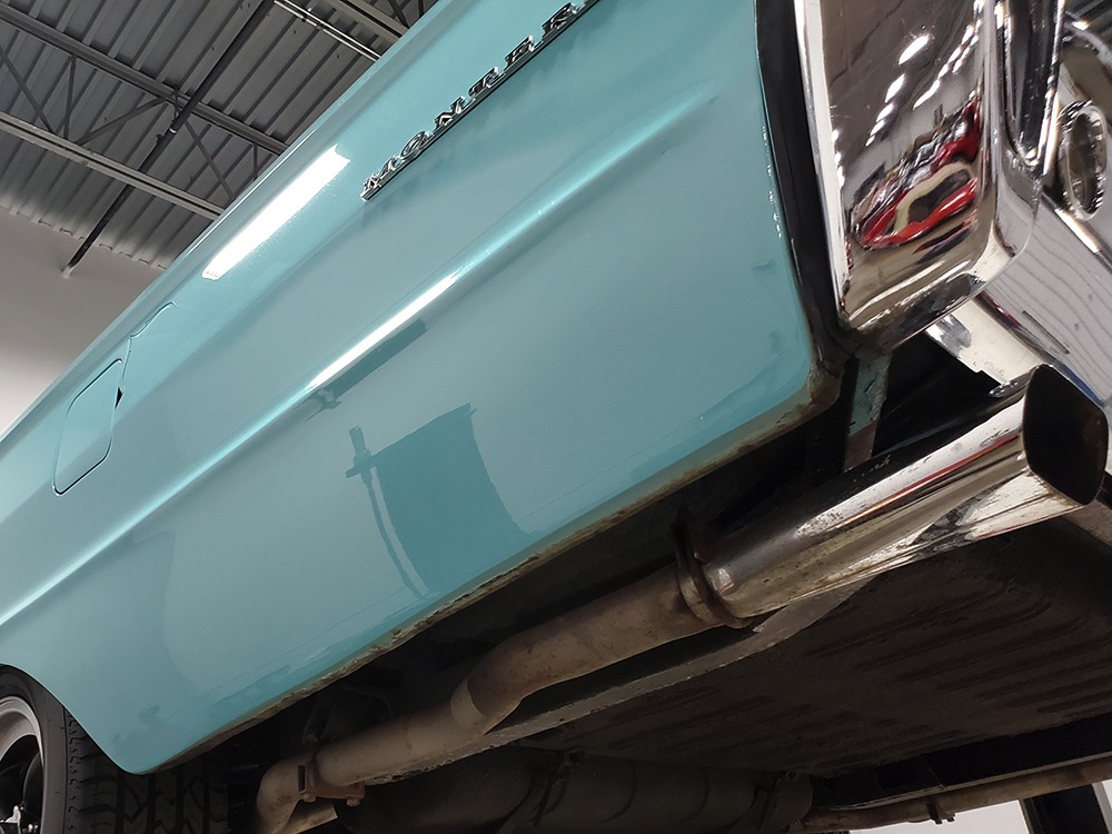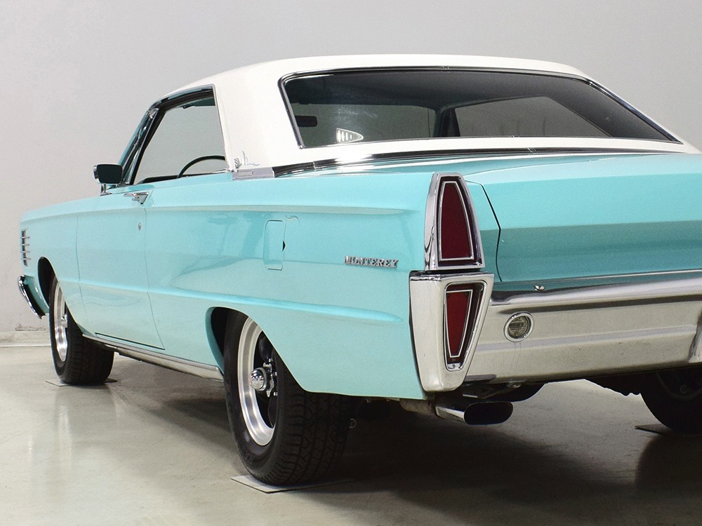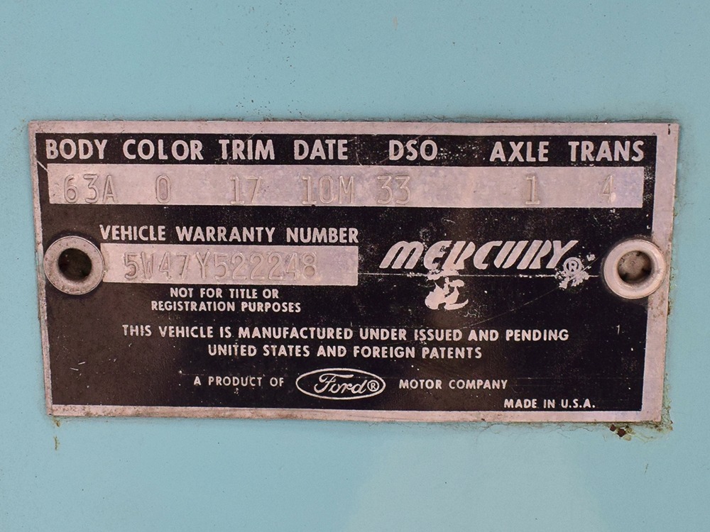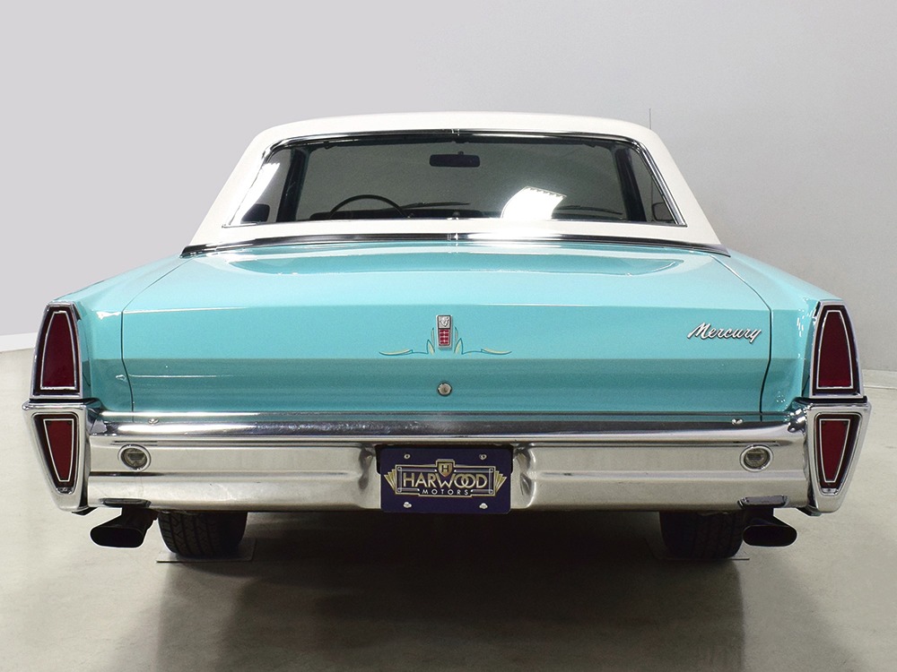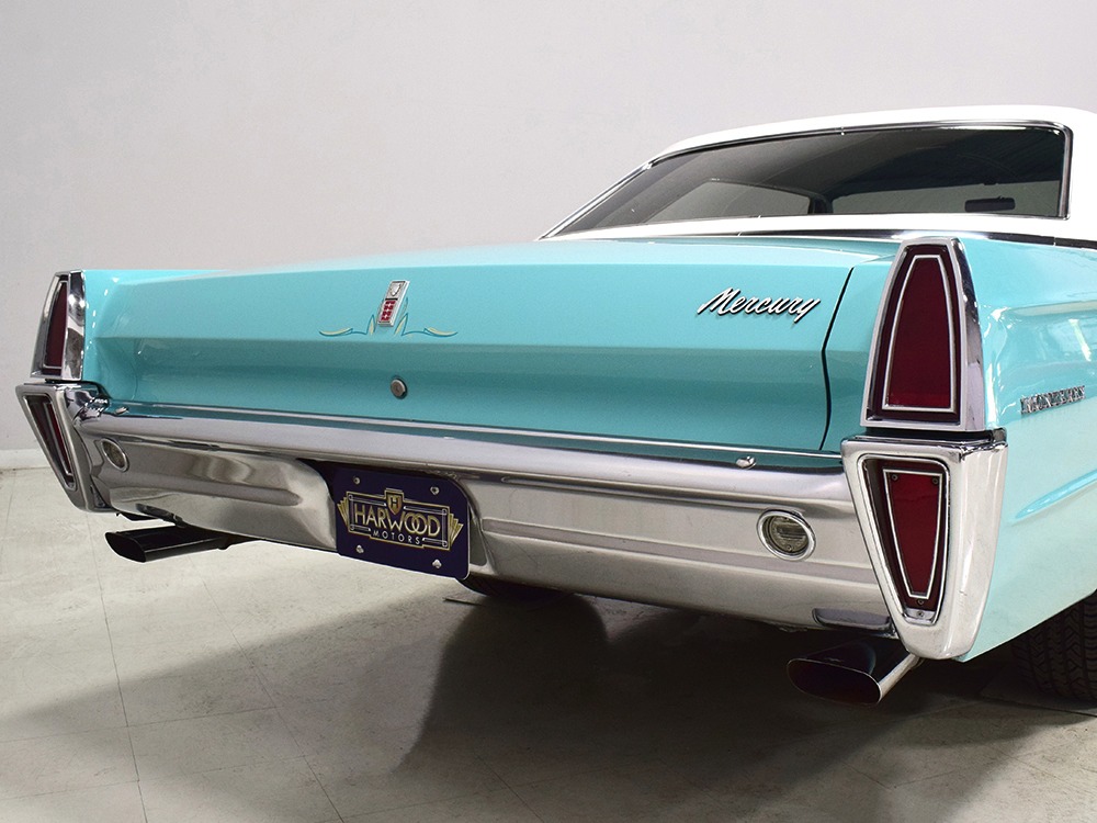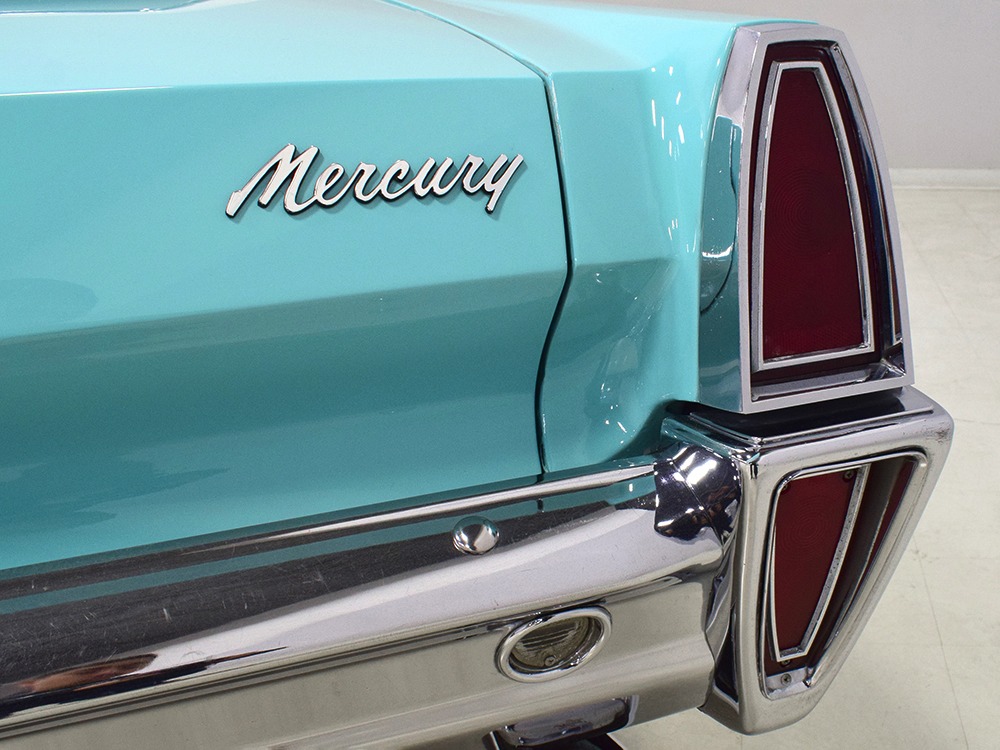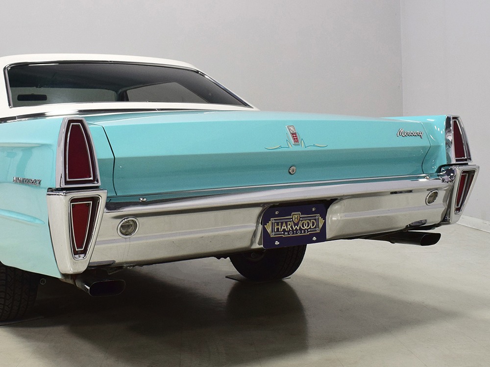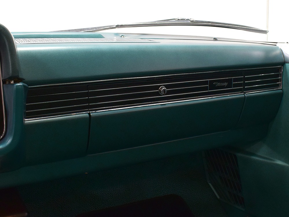The engine is a smooth and torquey 390 cubic inch V8 that behaves like it’s in a luxury car but moves like a muscle car. The original 2-barrel carb is gone, replaced by an Edelbrock 4-barrel, so it’s a bit more muscular than stock. Either way, it’s a great runner. The engine bay is nicely finished with black engine enamel, orange Mercury valve covers, and a few chrome bits to add some contrast. Power steering and power front disc brakes are part of the package, including a replacement dual reservoir master cylinder for safety, so this big Merc is easy for anyone to handle. The 3-speed Merc-O-Matic automatic transmission clicks through the gears easily and its personality depends on how hard you’re pressing the throttle. 3.00 gears out back make it a fantastic high-speed cruiser and the suspension is more luxury than sport so this is a great car for road trips. Floors are quite clean, there are recent shocks and springs, plus a great-sounding dual exhaust system with glasspack-style mufflers. And for the ideal period performance look, there are black Torque Thrust wheels wearing fat 225/70/15 blackwall radials.