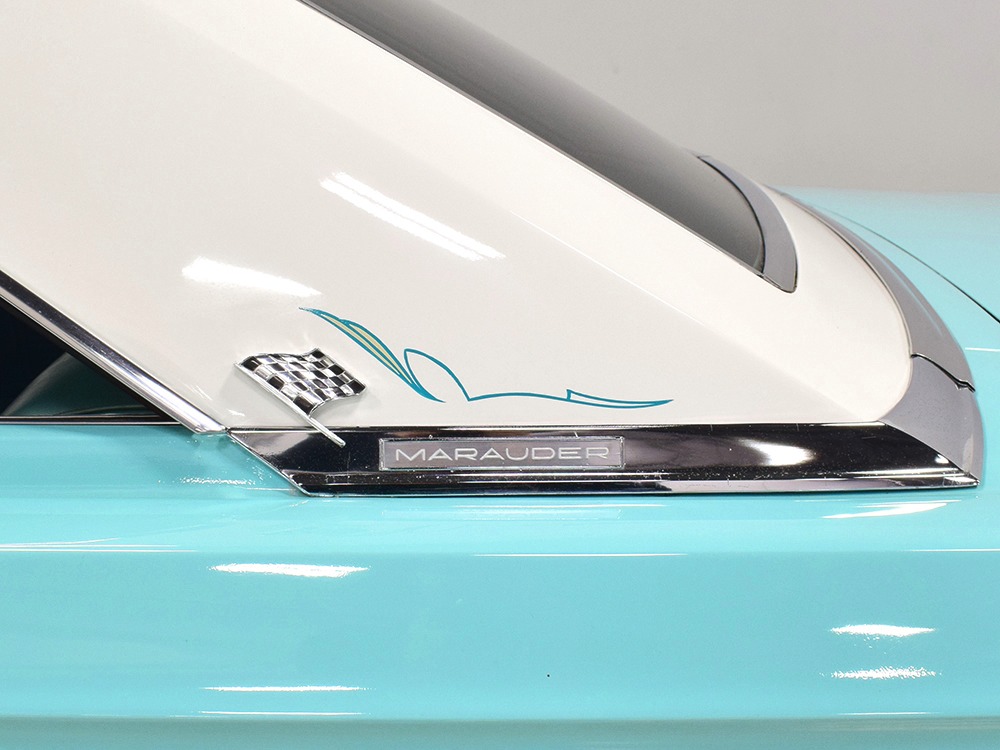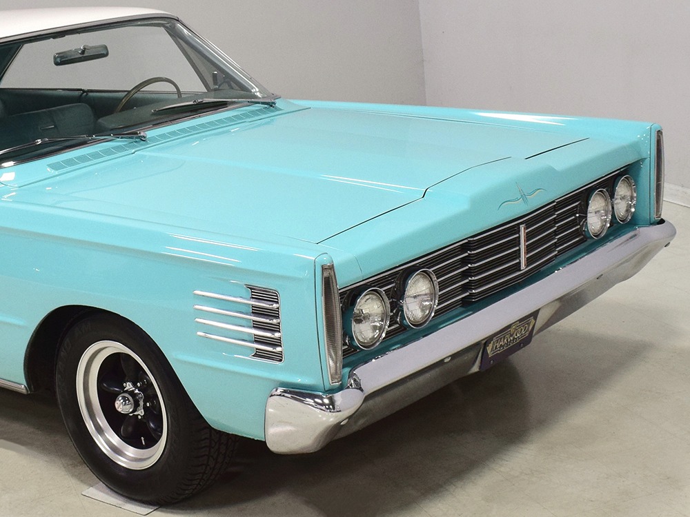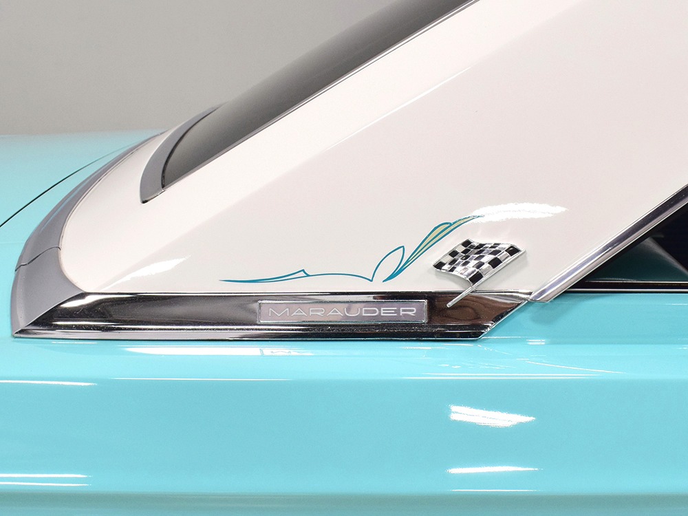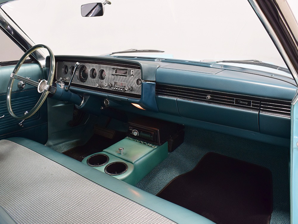 The Marauder was Mercury’s entry into the early muscle car wars, following the formula of putting a big engine in a mid-sized car. Of course, Mercury being Mercury, “mid-sized” is a relative term. Regardless, you get a lot of luxury with your performance as well as a distinctive look. By 1965, the Marauder was part of the Monterey lineup and available only as a 2- or 4-door hardtop. Of course, the one to own is the 2-door hardtop like this 1965 Marauder, whose bright code O Aquamarine paint job can’t be missed and looks awesome on the gothic Monterey sheetmetal. Thanks to a recent repaint, it looks fantastic and they started with a straight, clean car that didn’t need any major surgery to look this good. The doors close with surprising precision and the gaps are quite good, especially for a car in this price class—surely a credit to Mercury’s quality in 1965. A few subtle pinstripe flourishes add a bit of a custom touch and there’s plenty of chrome to remind you that this is an upscale Mercury, not a garden-variety Ford.
