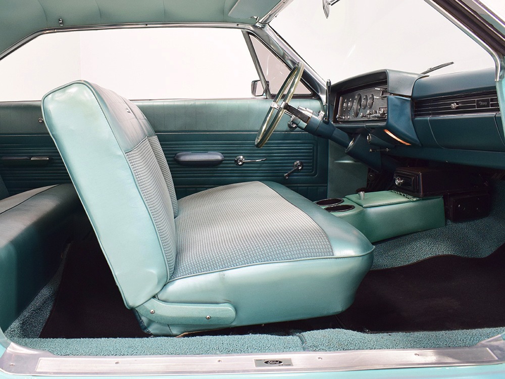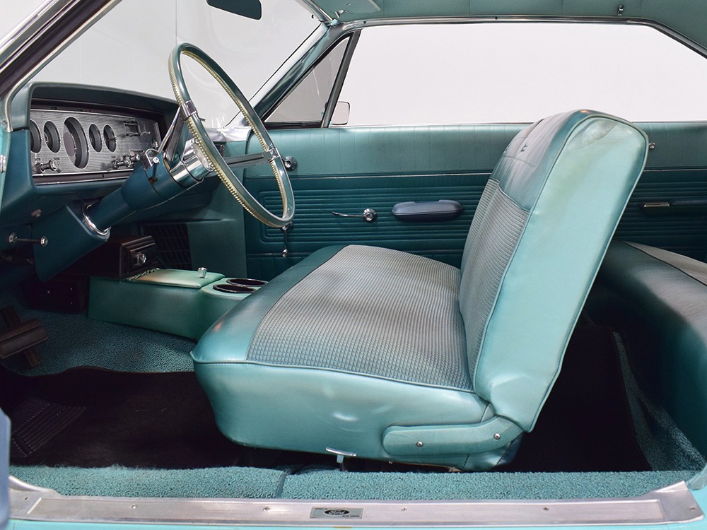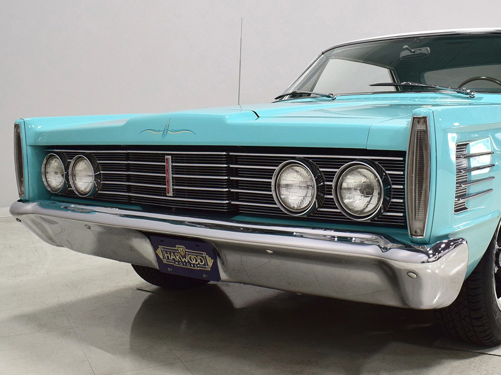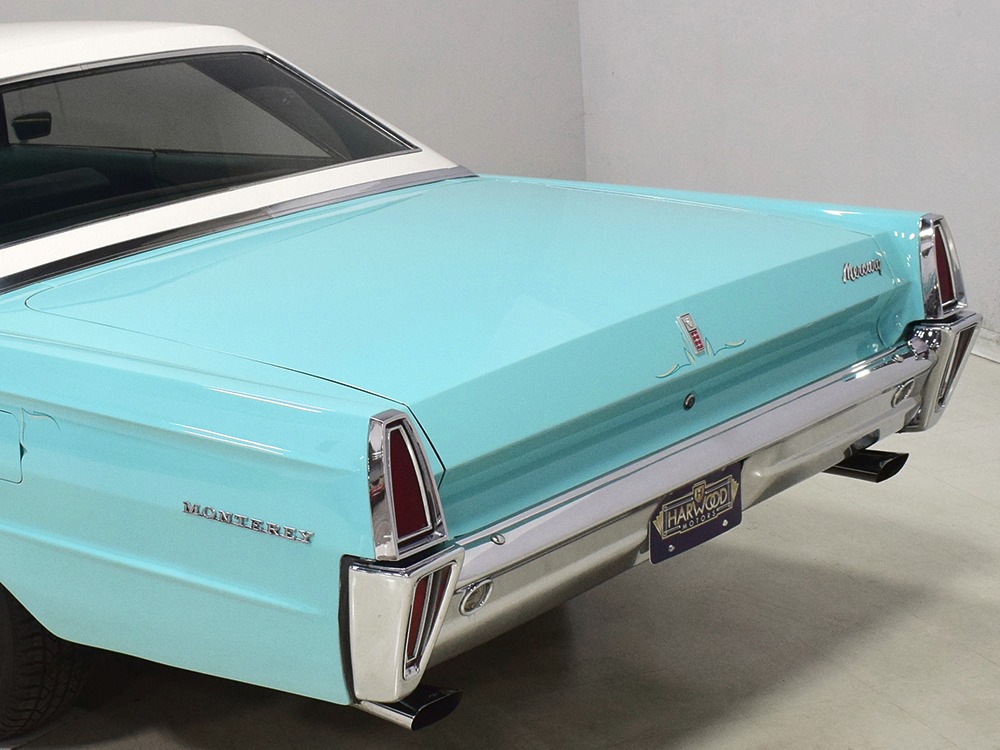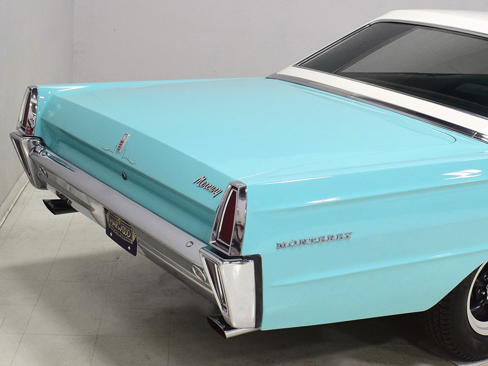 The Marauder was Mercury’s entry into the early muscle car wars, following the formula of putting a big engine in a mid-sized car. Of course, Mercury being Mercury, “mid-sized” is a relative term. Regardless, you get a lot of luxury with your performance as well as a distinctive look. By 1965, the Marauder was part of the Monterey lineup and available only as a 2- or 4-door hardtop. Of course, the one to own is the 2-door hardtop like this 1965 Marauder, whose bright code O Aquamarine paint job can’t be missed and looks awesome on the gothic Monterey sheetmetal. Thanks to a recent repaint, it looks fantastic and they started with a straight, clean car that didn’t need any major surgery to look this good. The doors close with surprising precision and the gaps are quite good, especially for a car in this price class—surely a credit to Mercury’s quality in 1965. A few subtle pinstripe flourishes add a bit of a custom touch and there’s plenty of chrome to remind you that this is an upscale Mercury, not a garden-variety Ford.